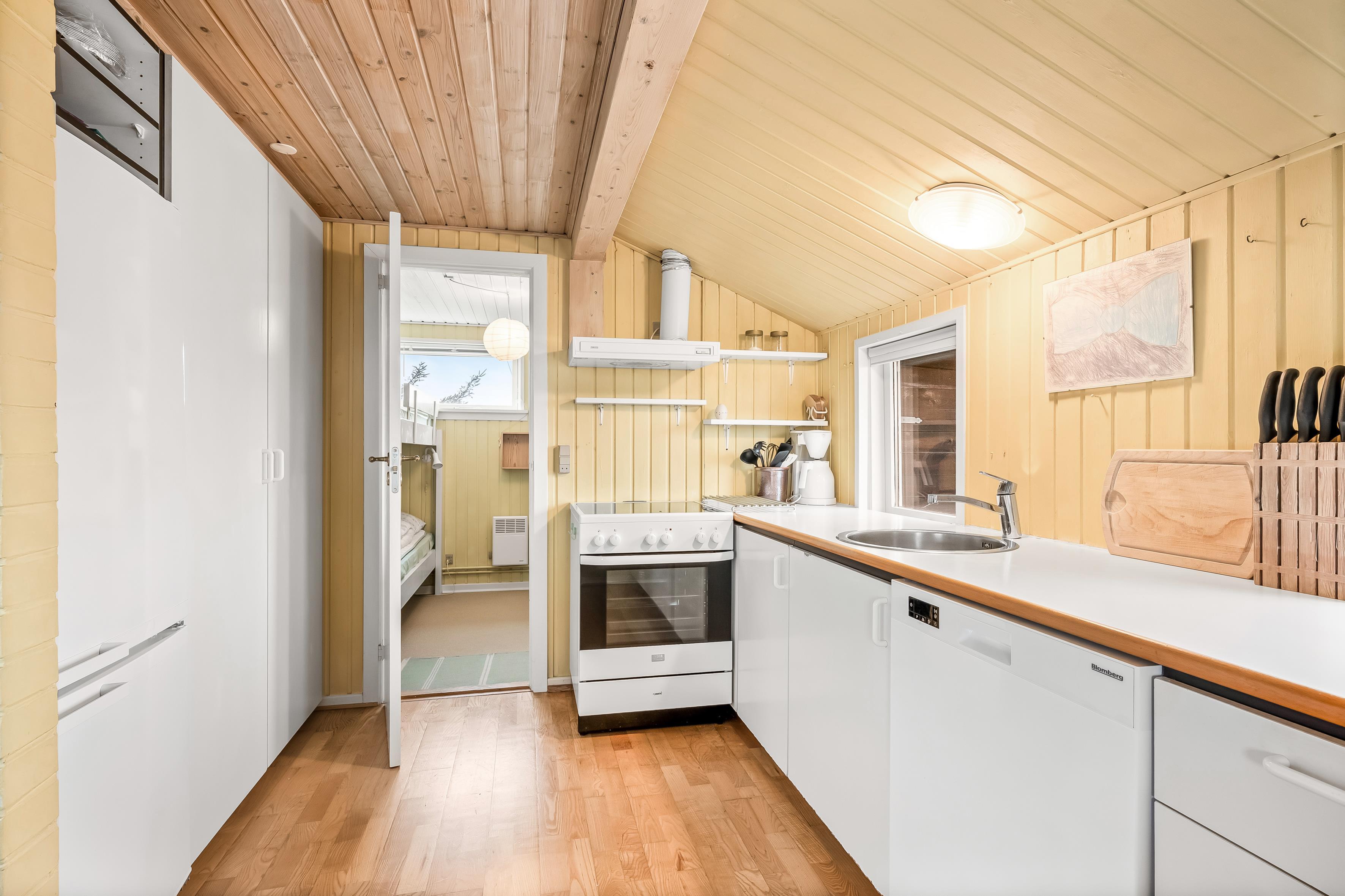 The holiday home is furnished in a classic and charming cottage style, creating a warm and welcoming setting for up to four people. The heart of the house is the open-plan living area, where the living room, dining area and kitchen come together in one inviting space. Here, you can enjoy long holiday days and relaxing evenings by the crackling wood-burning stove. The home has a special atmosphere full of character, inviting peace, comfort and relaxation.