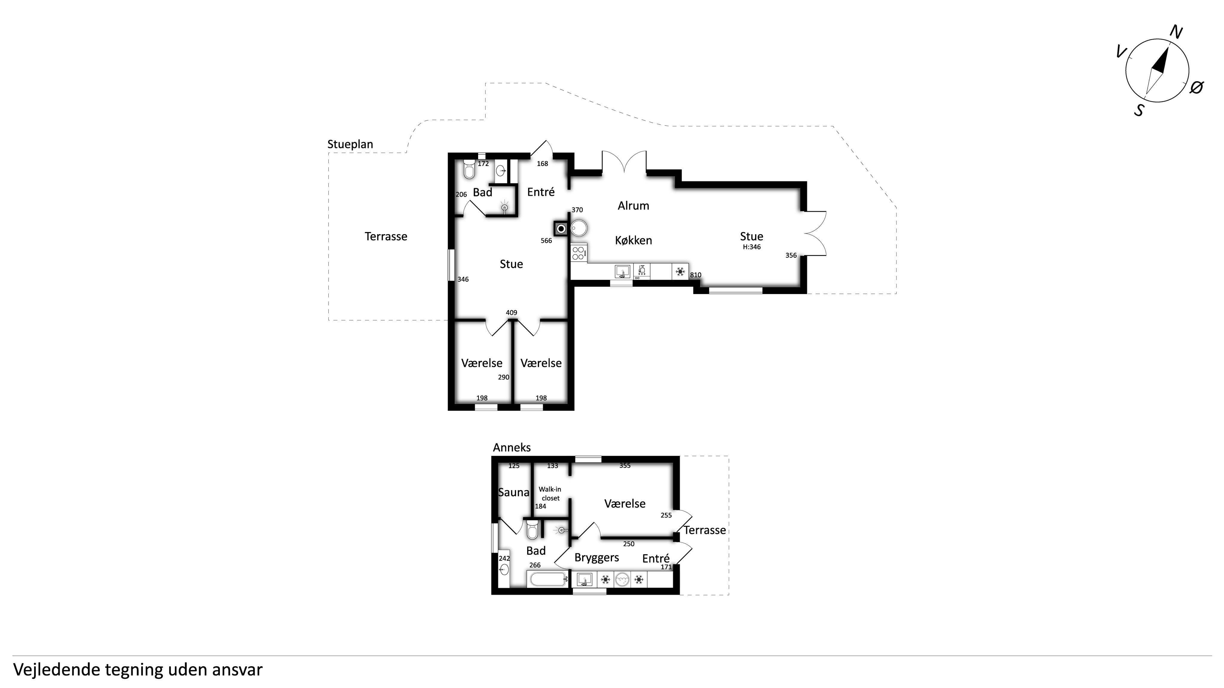 Built with high-quality materials, this house boasts a well-designed layout with high ceilings. It features three bright and spacious bedrooms, all with double beds. The kitchen, dining area, and living room are combined in a large, open-plan space that forms the heart of the home. Here you can enjoy quality time together, while the fireplace, along with the heat pump, provides warmth and coziness on cooler days. A large flat-screen TV and Wi-Fi are also provided. Both bathrooms have underfloor heating and a shower, and the stylish bathroom in the annex is additionally equipped with a sauna and bathtub – perfect for a relaxing spa experience.