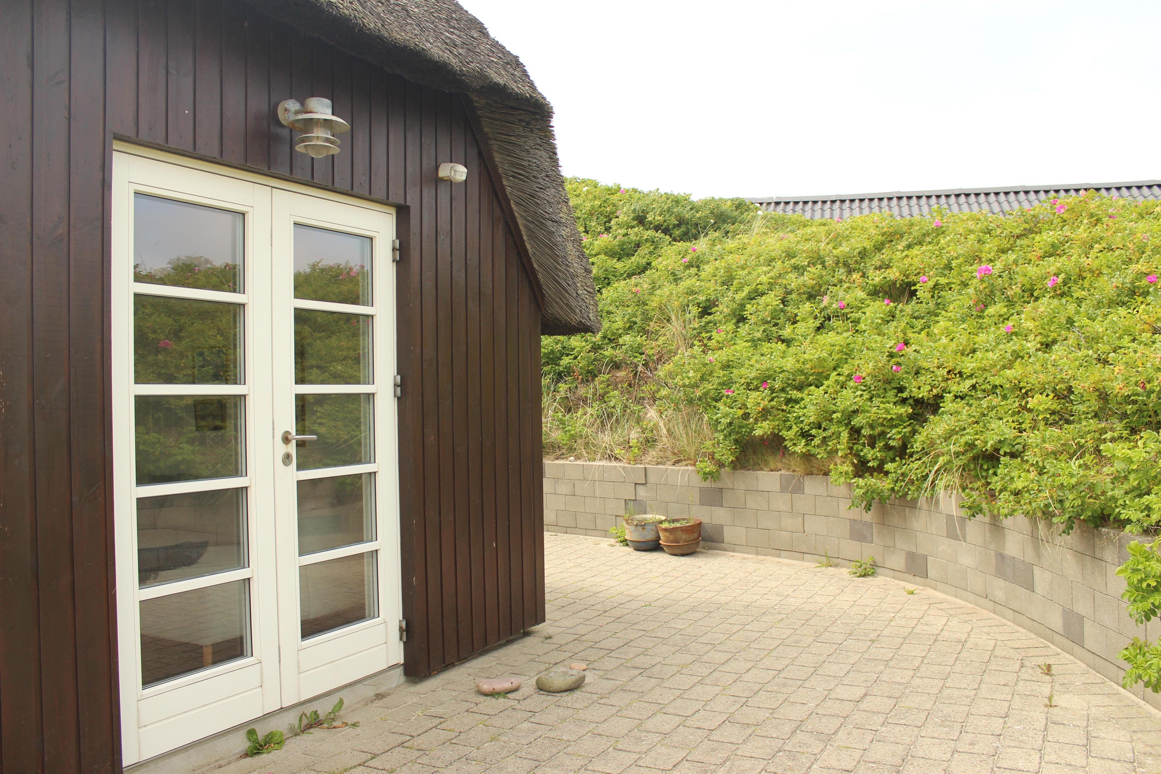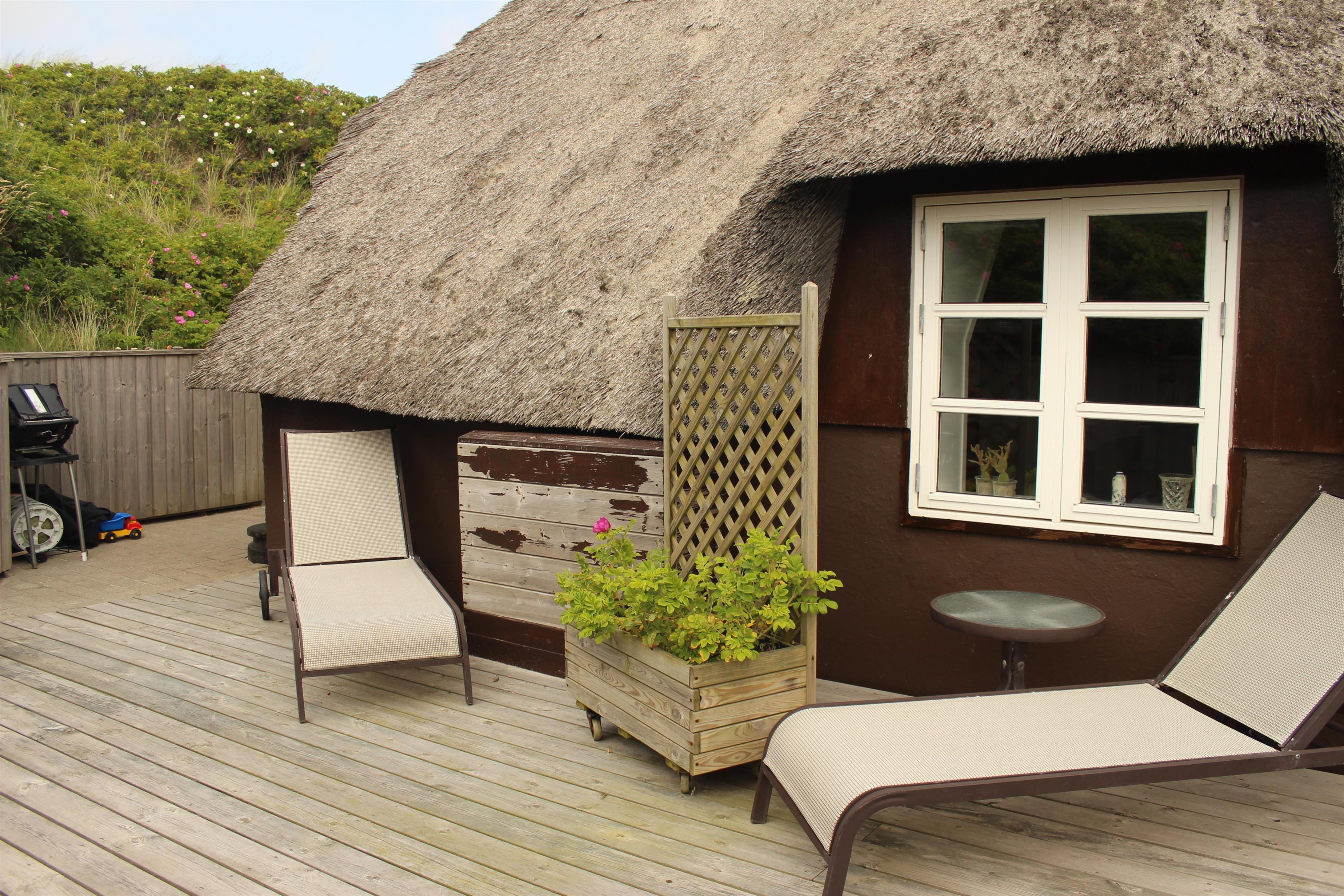 A beautiful terrace surrounds the house on three sides, ensuring you always find a sunny spot or a shady retreat near the North Sea. From a small bench on an adjacent dune, you can watch the sunrise over Ringkøbing Fjord or enjoy the sunset over the North Sea. The dune provides natural wind protection, making it ideal for families with young children who can play safely outdoors.