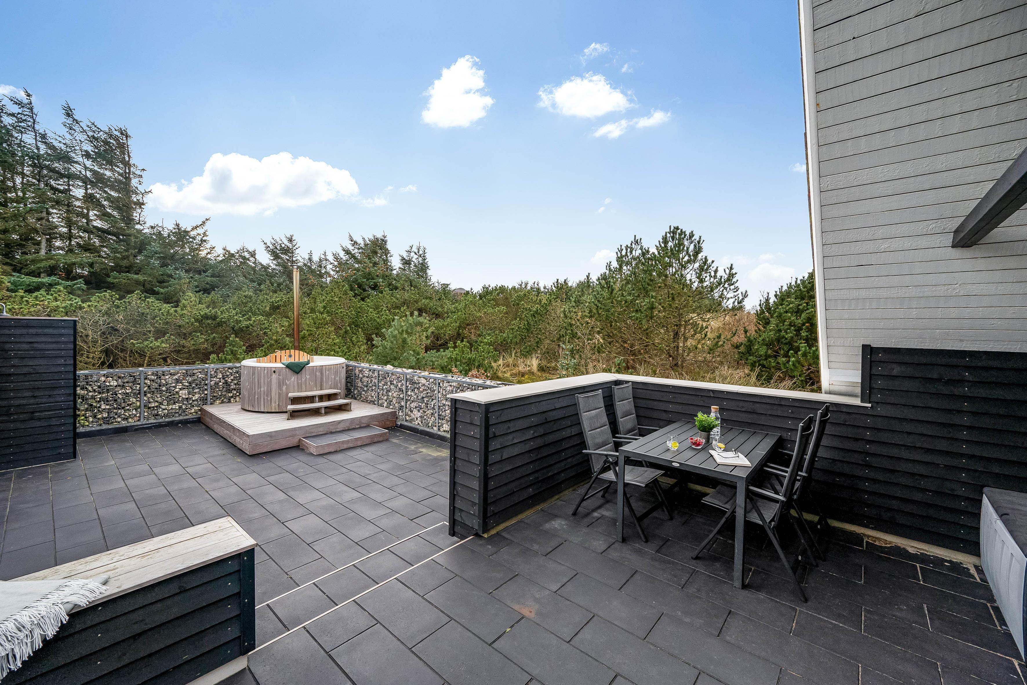 Take a deep breath on the spacious terrace, enjoy the fresh sea air, and listen to the sounds of nature. Create lasting memories with a barbecue and extend those summer evenings under the covered terrace in the inviting, spacious seating area. But that's not all! Take a break from everyday life in our 6-person hot tub, where you can relax under the stars and listen to the sounds of the night. Complete this unique experience with a refreshing outdoor shower before returning to the house and drifting off into a restful sleep.