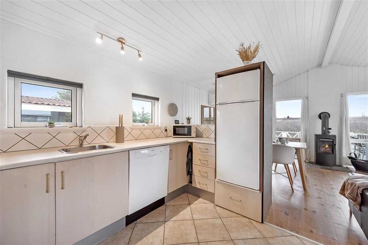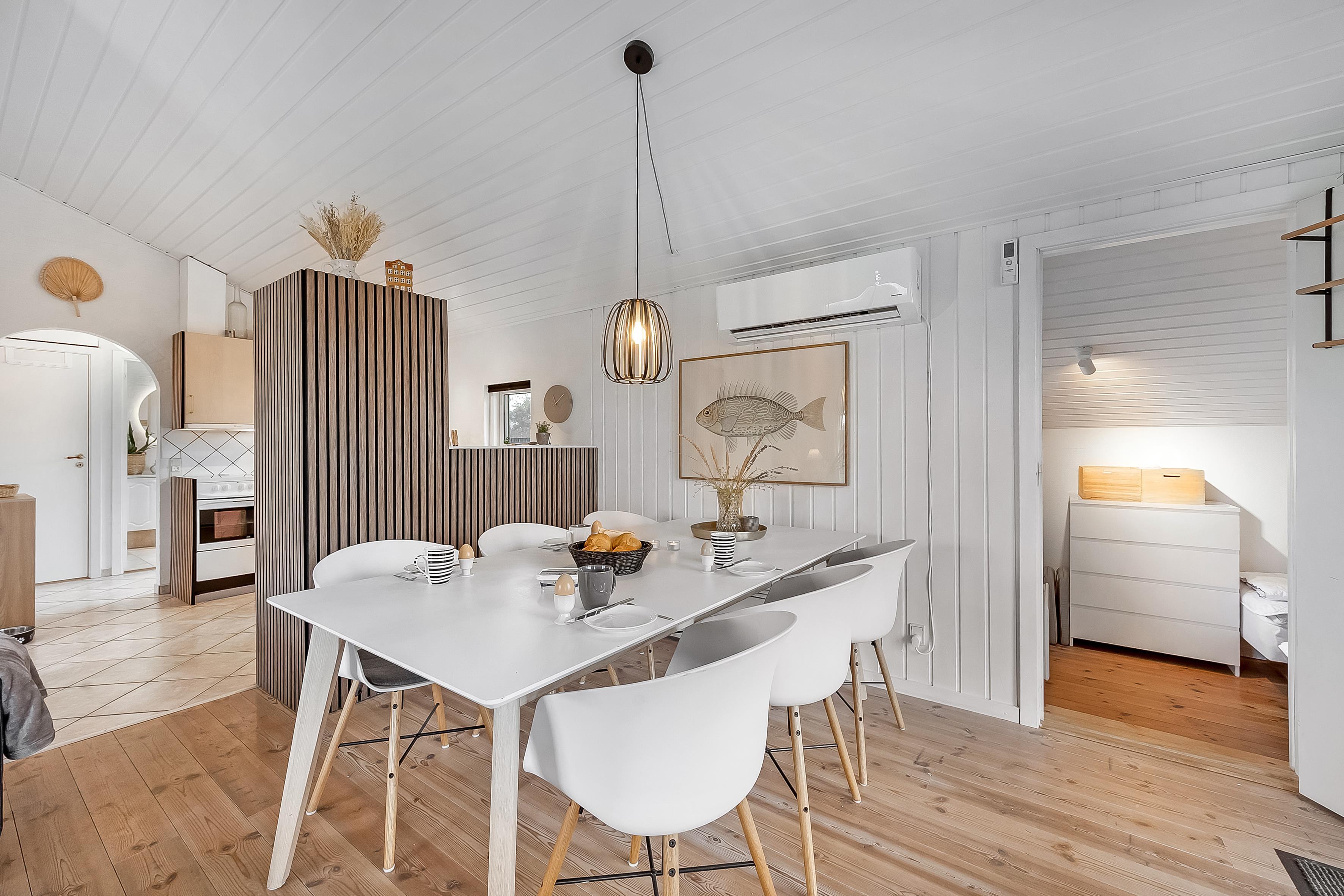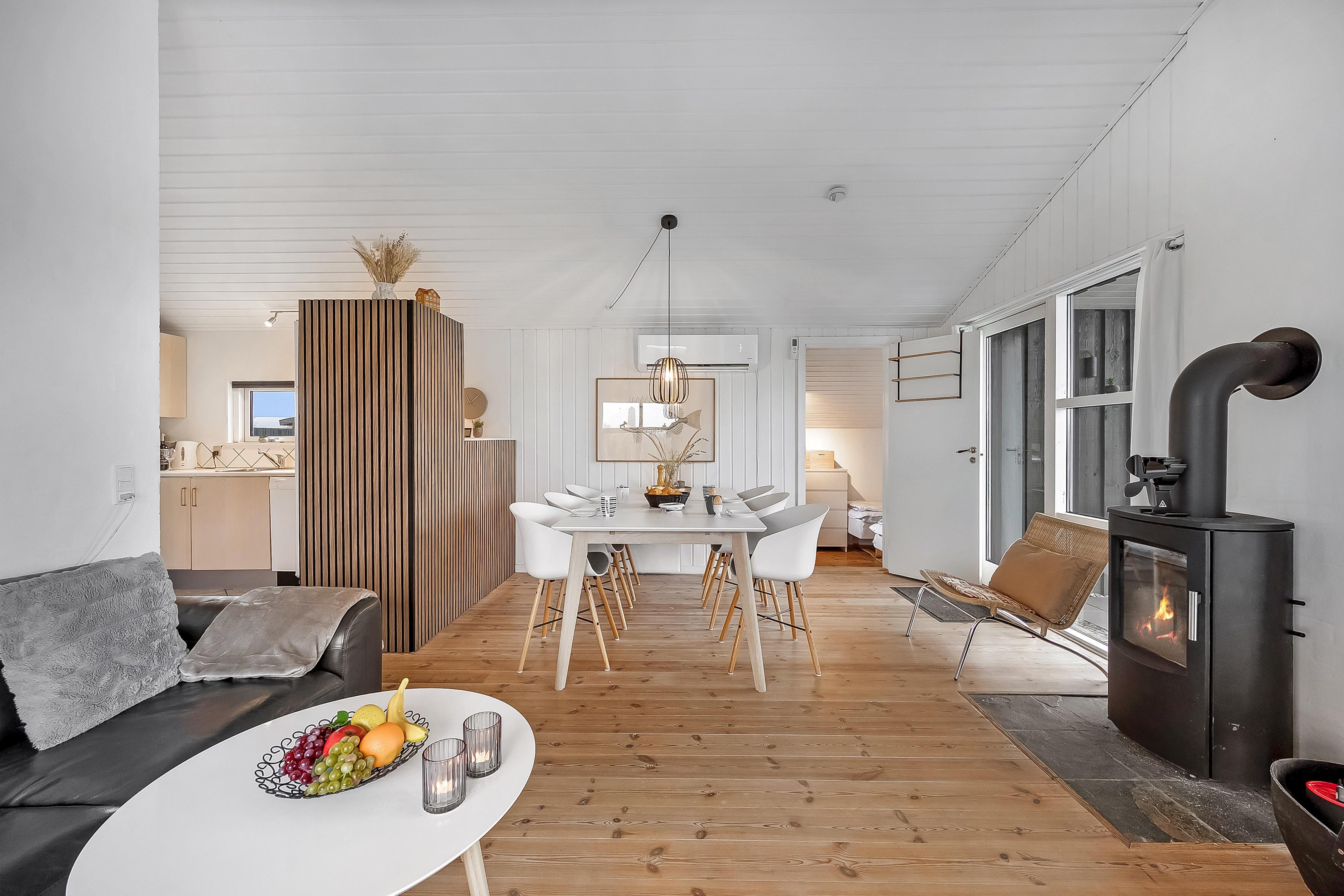 The living room of the house, is the perfect place to relax after a long day, and here you will find a wood-burning stove that creates a cozy atmosphere. There is an energy-saving heat pump, that also can function as air conditioning, for the hot days and a television where you can enjoy both Danish and German TV. The wireless internet makes it easy to stay connected if you need it.