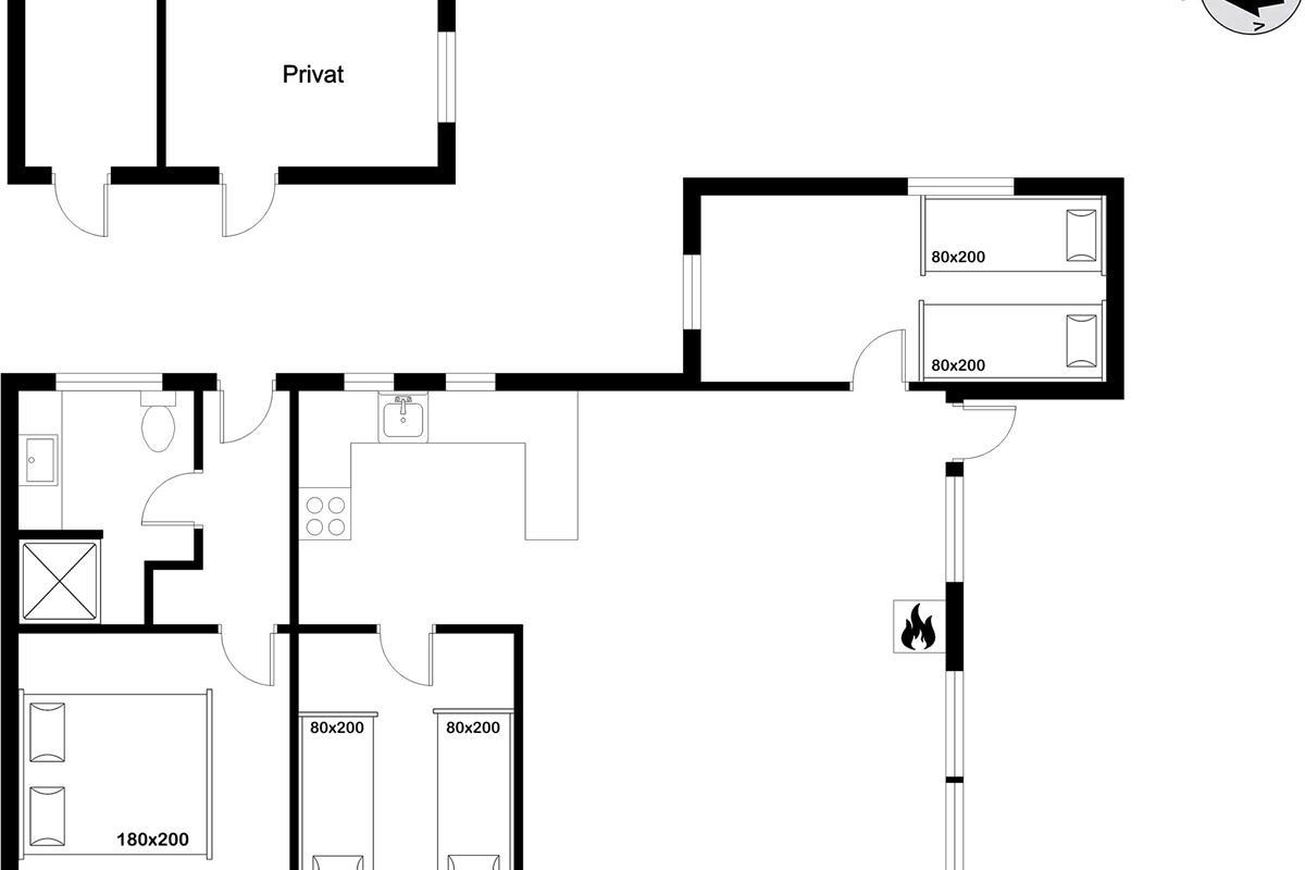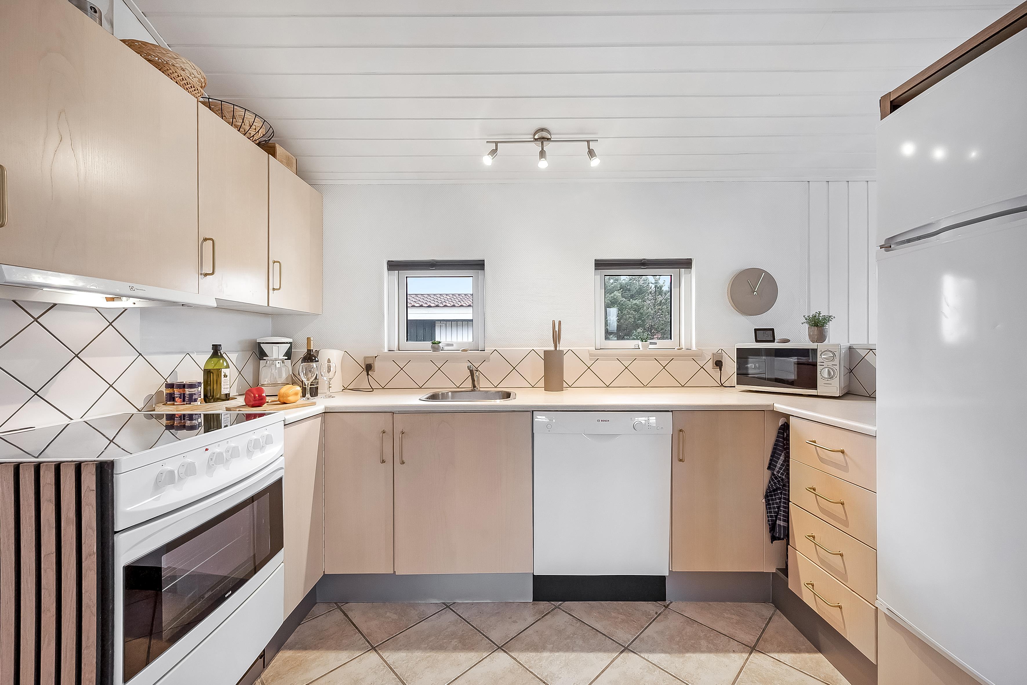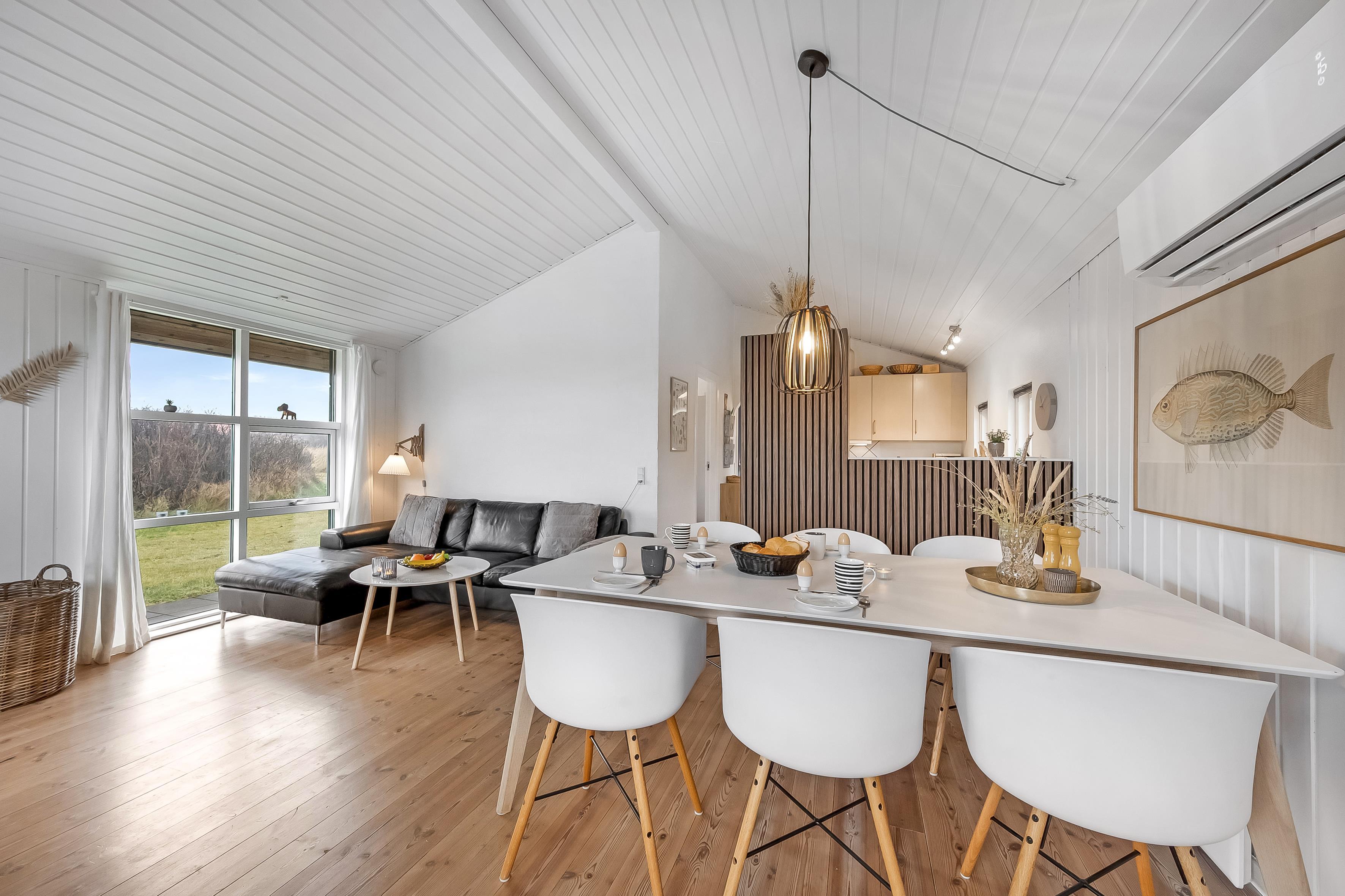 The living room of the house, is the perfect place to relax after a long day, and here you will find a wood-burning stove that creates a cozy atmosphere. There is an energy-saving heat pump, that also can function as air conditioning, for the hot days and a television where you can enjoy both Danish and German TV. The wireless internet makes it easy to stay connected if you need it.