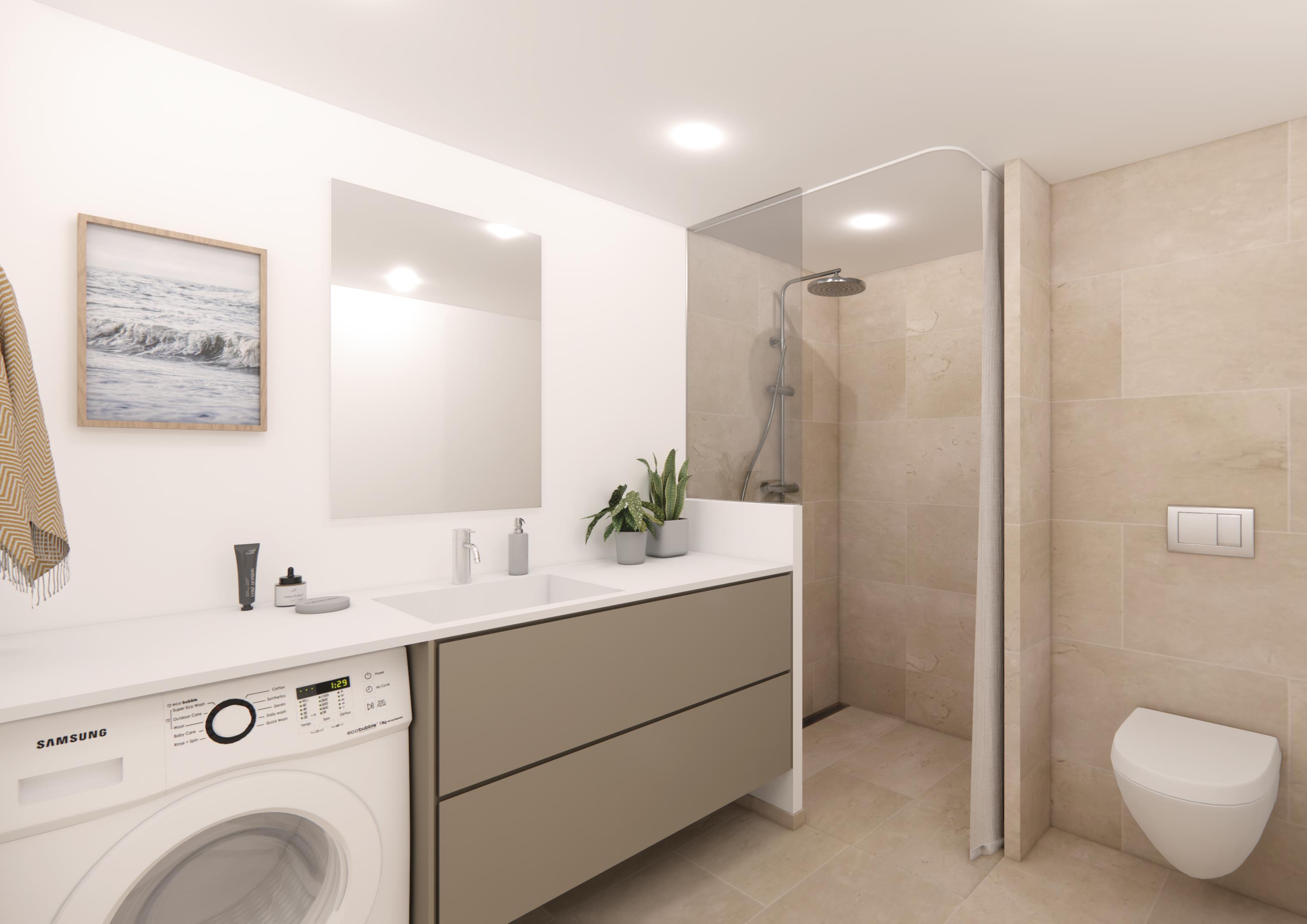 The kitchen is fully equipped with modern appliances, including oven, ceramic hob, refrigerator, freezer with 70 liter capacity, dishwasher and coffee machine, so you have everything you need to prepare your favorite dishes. There is also a washing machine and dryer available, making it easy to keep your clothes fresh during your stay.