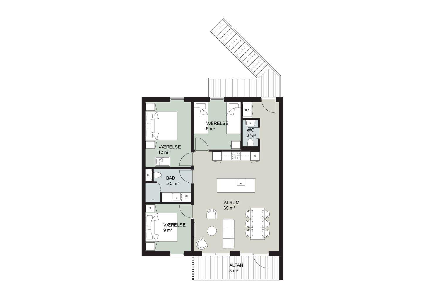 Inside you will find three cozy bedrooms. The first and second bedrooms are equipped with double beds, while the third bedroom has two single beds, allowing for flexible sleeping arrangements for both couples and individuals. The house is also equipped with wireless internet and television (with both Danish and German TV as well as Chromecast), so you can watch your favorite programs and stay up to date.
