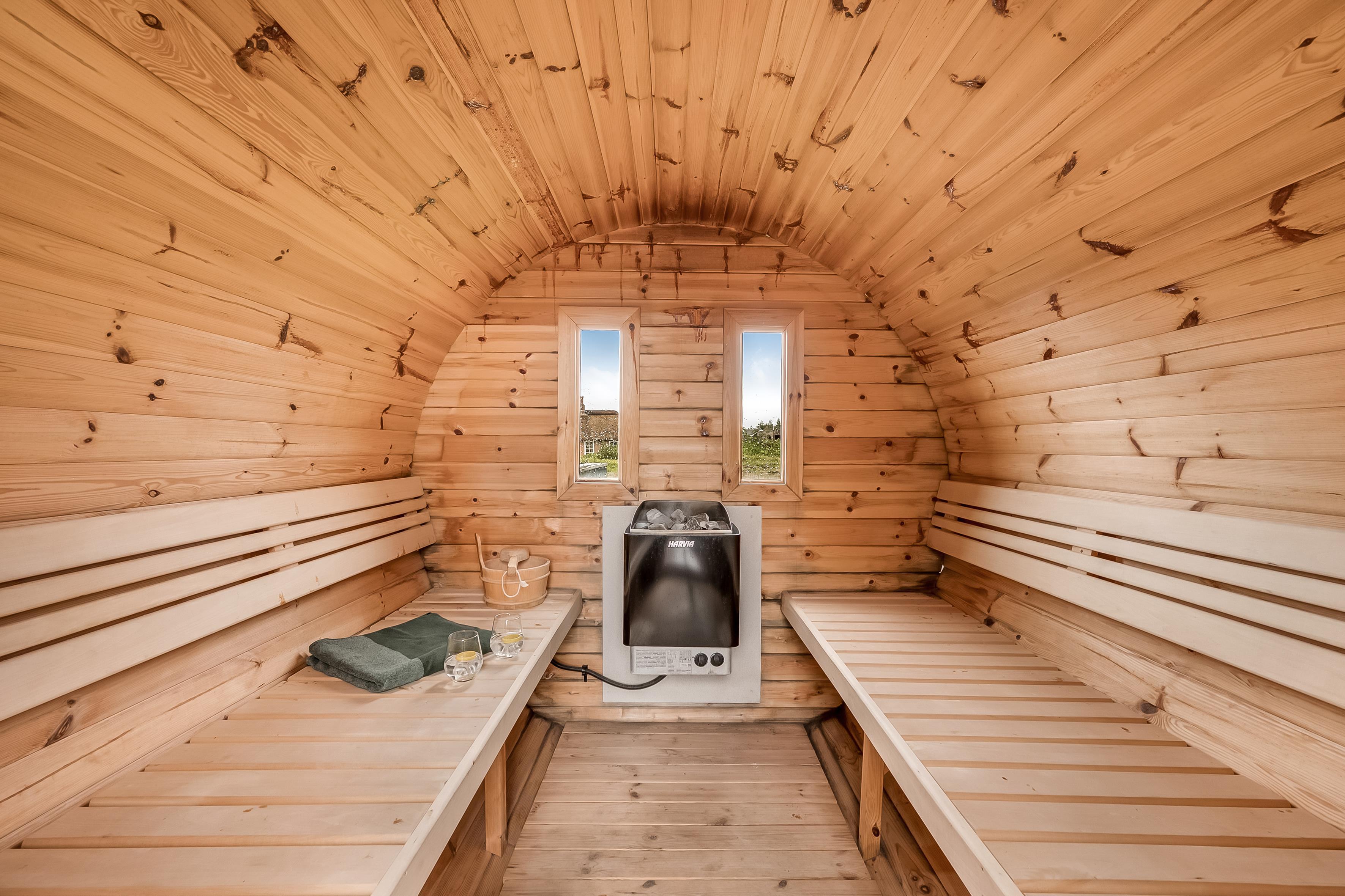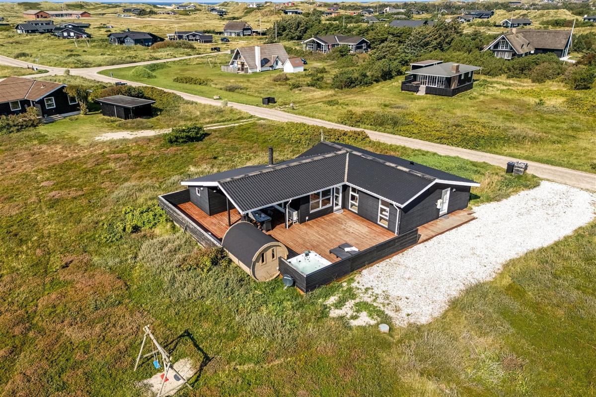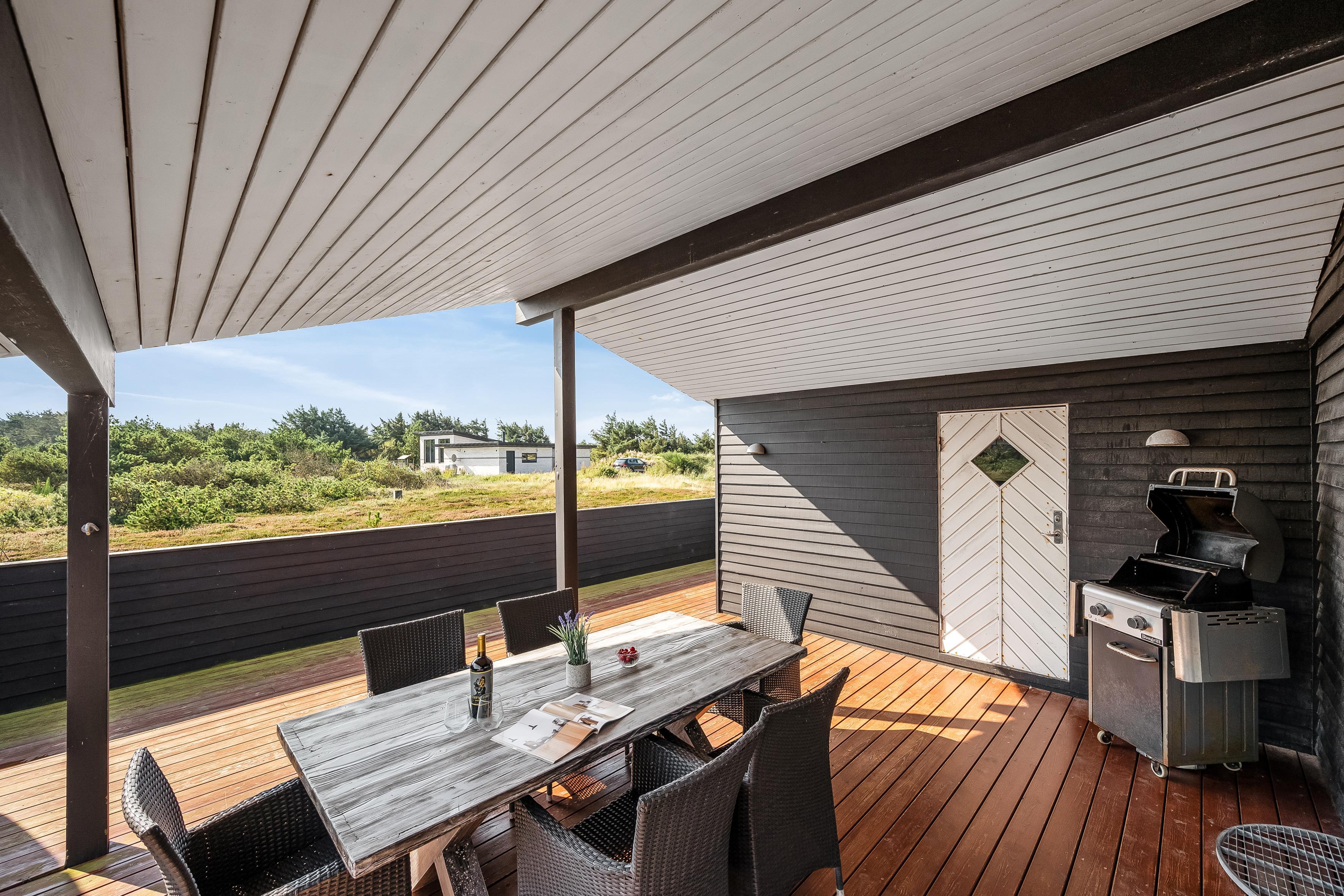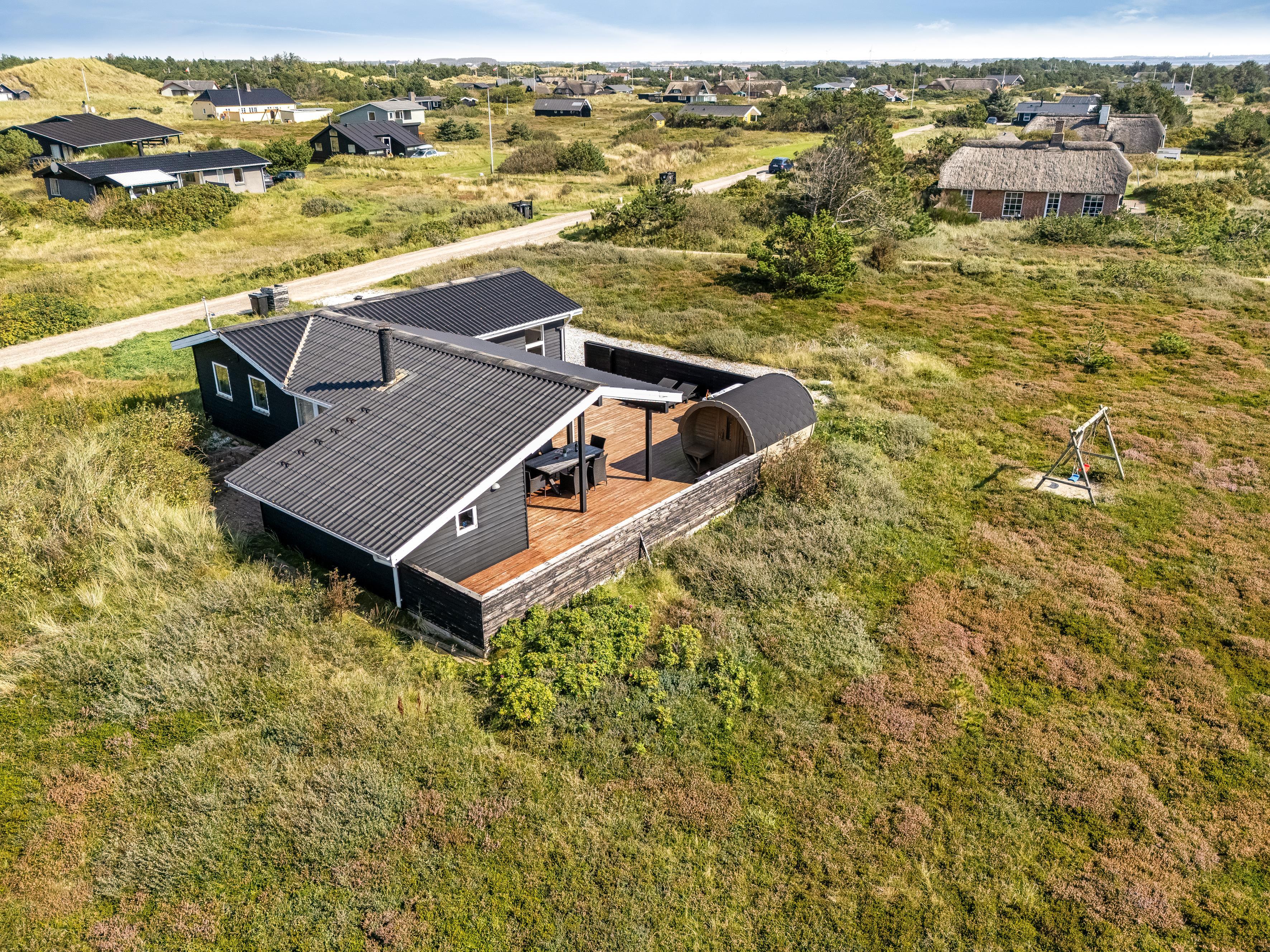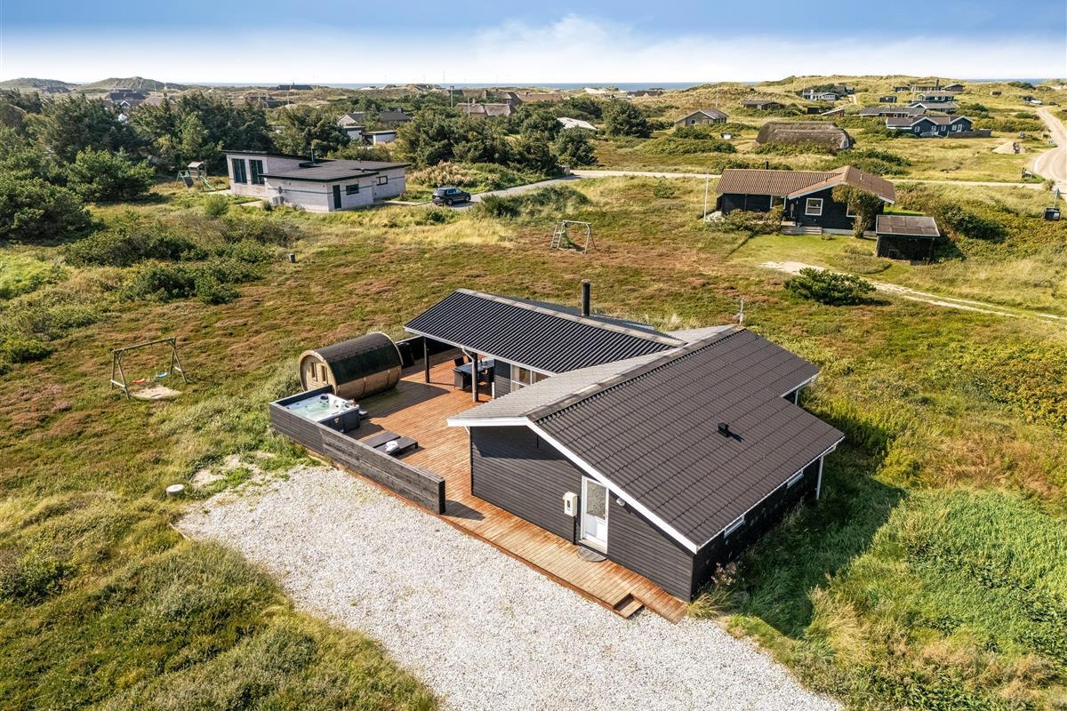 The holiday home has a spacious, enclosed wooden terrace, where you can enjoy the fresh sea air. The terrace includes an outdoor sauna, ideal for unwinding after a day at the beach, and a 6-person outdoor spa, where you can enjoy the bubbles under the open sky. Part of the terrace is covered, so you can sit outside regardless of the weather.