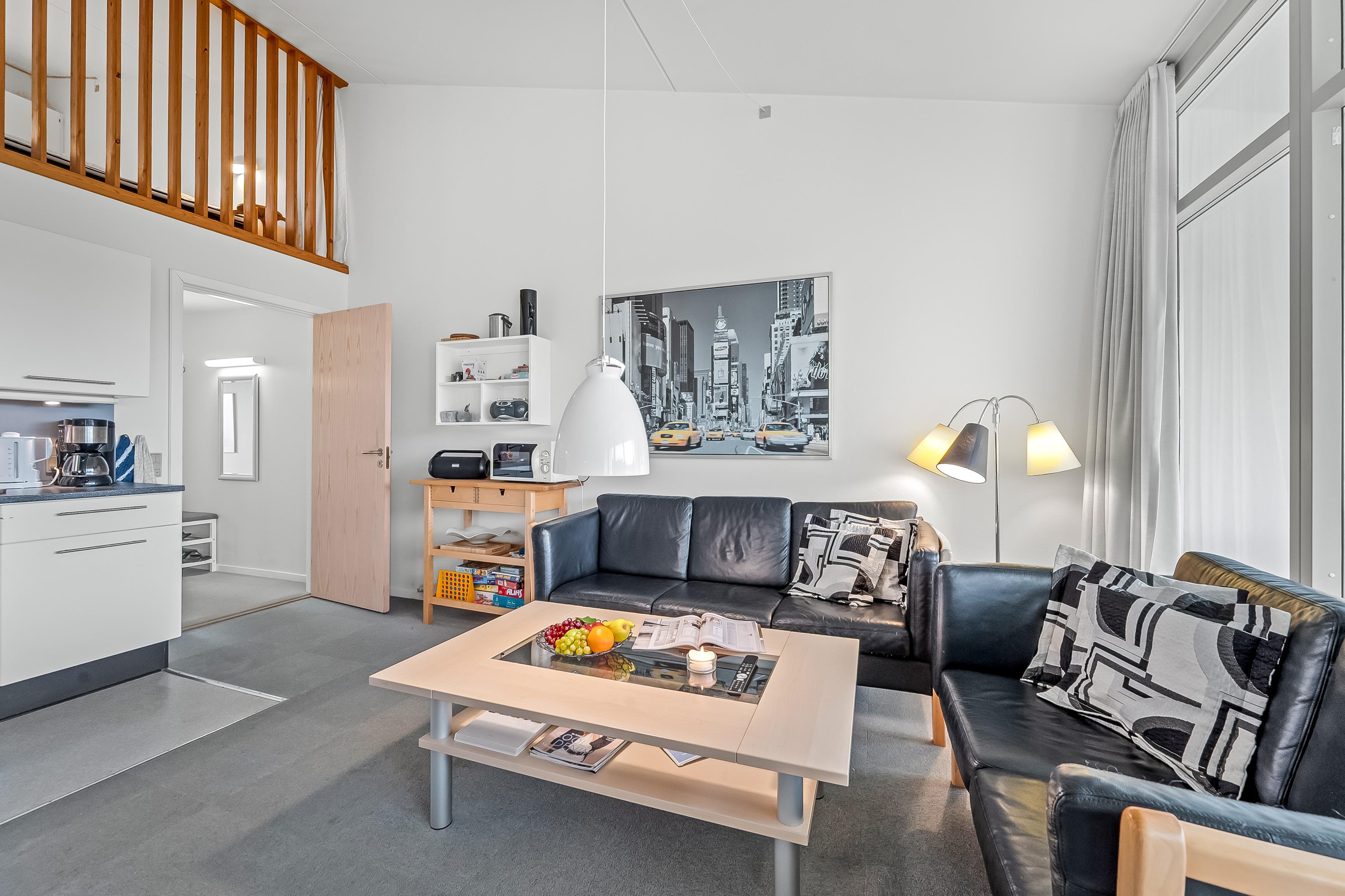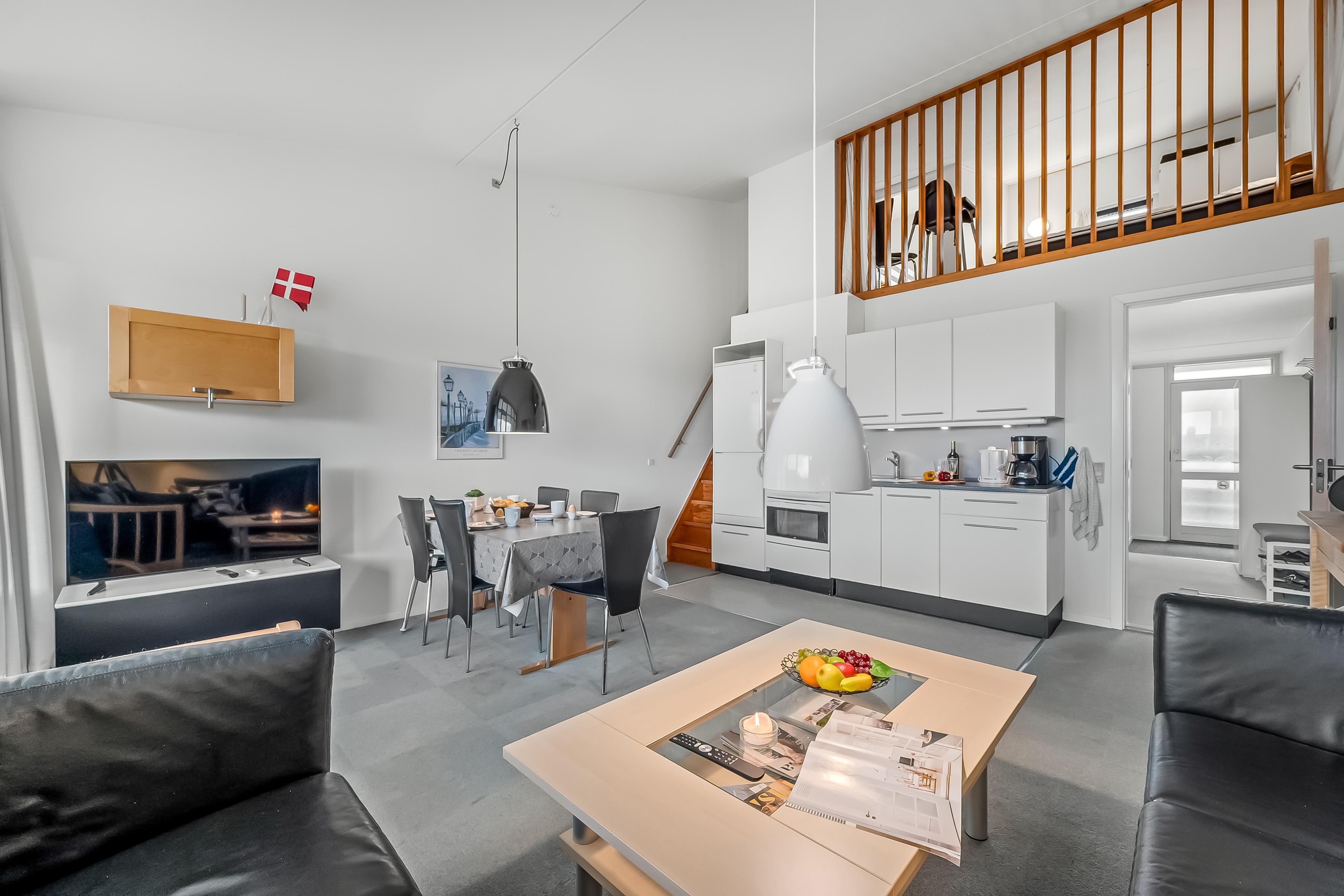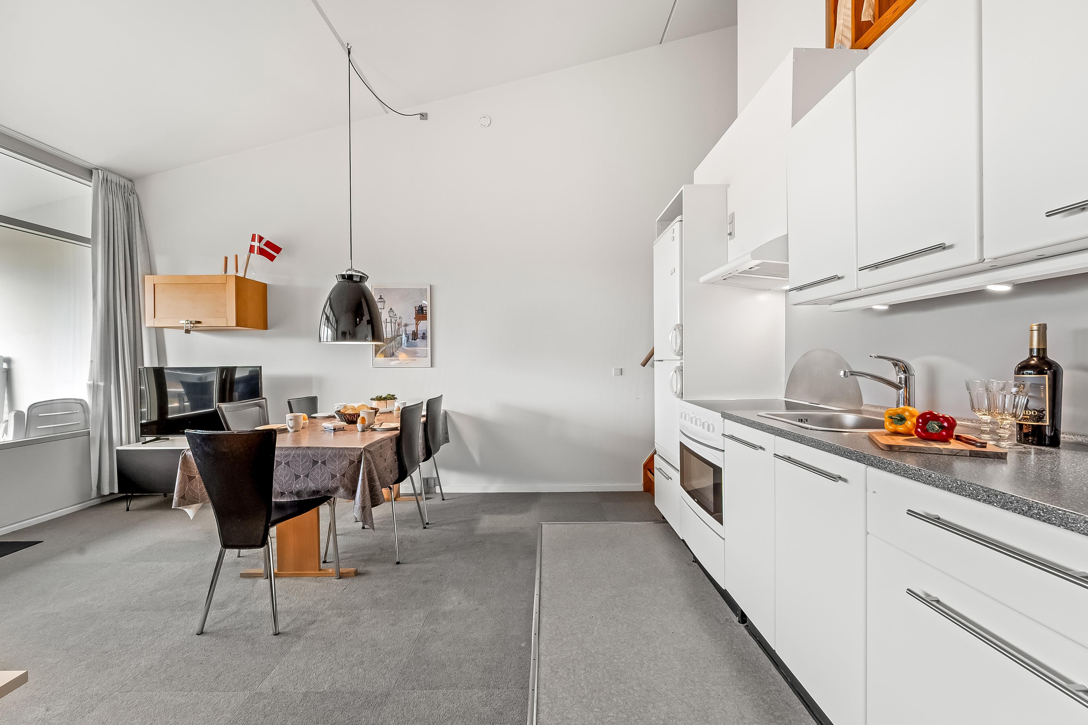 The kitchen is well equipped with modern appliances, including a microwave oven, oven, ceramic hob, fridge and a freezer with a capacity of 75 liters. This makes it easy to prepare delicious meals that you can enjoy together in the dining room or on the balcony. There is also a television available, where you can watch both Danish and German TV, so You can keep up to date with news or enjoy your favorite programmes.
