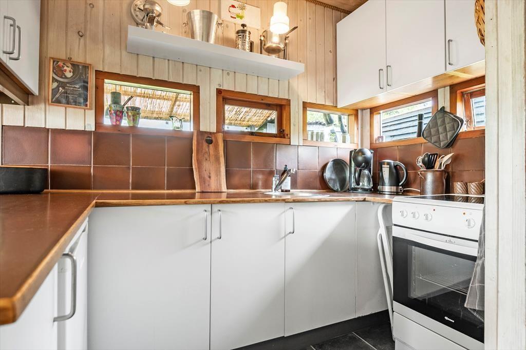 Das Ferienhaus liegt auf einem schönen Naturgrundstück, wo Sie das Leben im Freien in vollen Zügen genießen können. Beginnen Sie den Tag mit einer Tasse Kaffee auf der Terrasse, oder lassen Sie die Kinder auf der Rasenfläche spielen, während Sie die ruhigen Geräusche der Natur genießen. Ein kurzer Spaziergang führt Sie zu einem kinderfreundlichen Strand, ideal zum Schwimmen, Sonnenbaden oder für einen gemütlichen Spaziergang entlang der Küste.