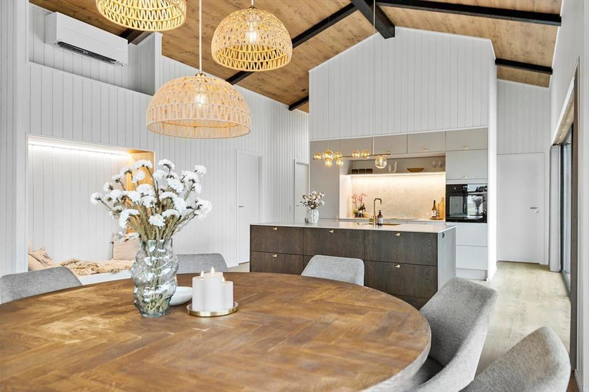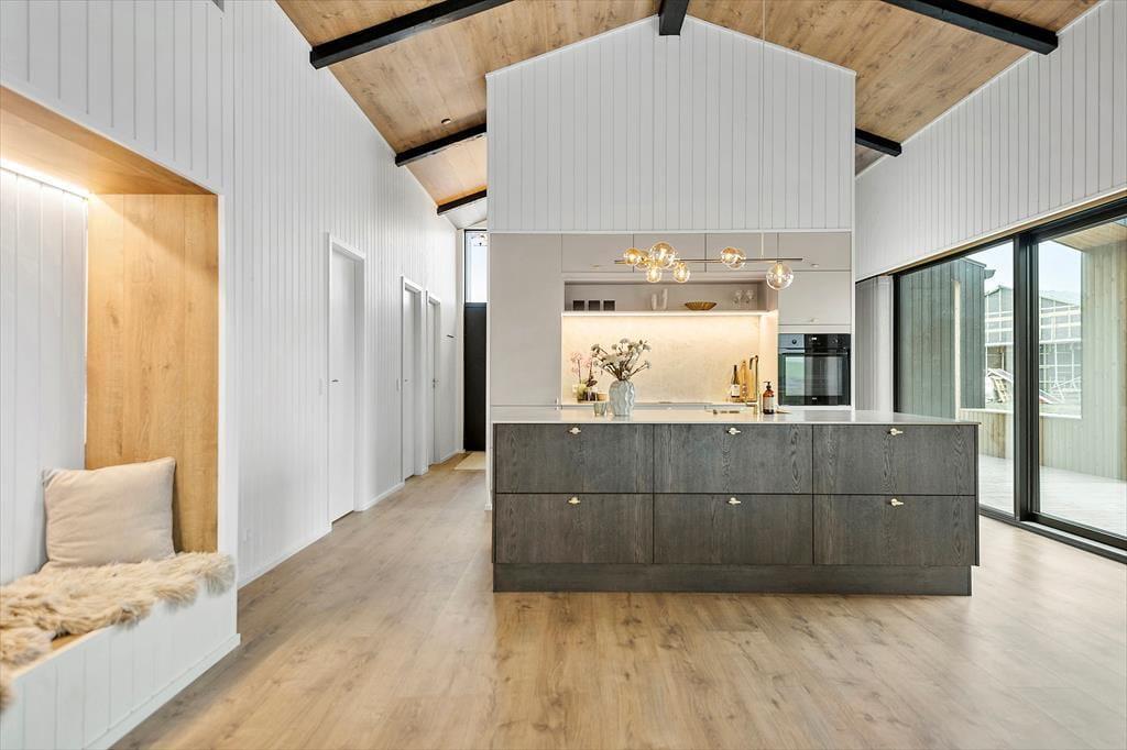 De keuken is open en ruim, zodat iedereen mee kan doen — of het nu koken is, de tafel dekken of ontspannen op de bank. En wanneer de dag ten einde loopt, kun je wegzakken in de zithoek met een film terwijl het licht langzaam buiten verdwijnt.