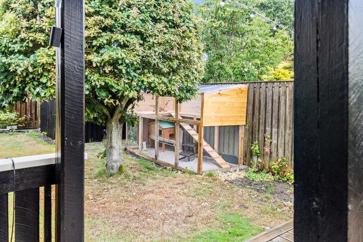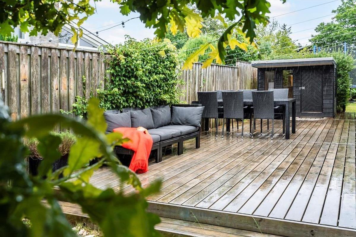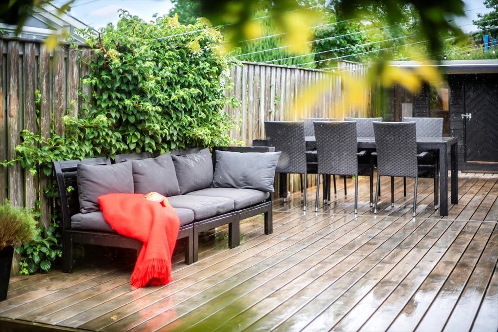 Das Haus hat eine schöne Holzterrasse, auf der Sie es sich gemütlich machen oder einfach nur entspannen können. Hier können Sie auch sitzen und auf die Kinder aufpassen, die im Garten spielen oder auf dem Trampolin springen. Bei schlechtem Wetter gibt es eine überdachte Terrasse, auf der Sie Ihr Abendessen im Freien genießen können. Das große Grundstück ist ideal für Spiele im Freien und geselliges Beisammensein. Sowohl die offene als auch die überdachte Terrasse sind zum Garten hin ausgerichtet, so dass Sie fast das ganze Jahr über den Anblick von Gras und Blumen genießen können.