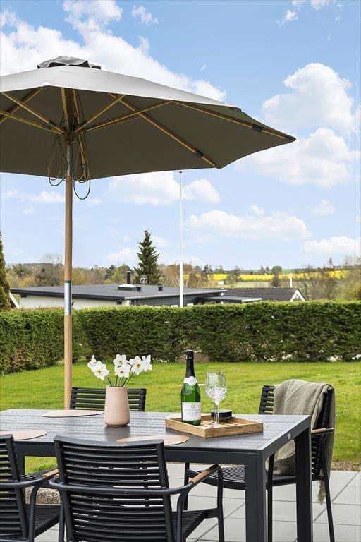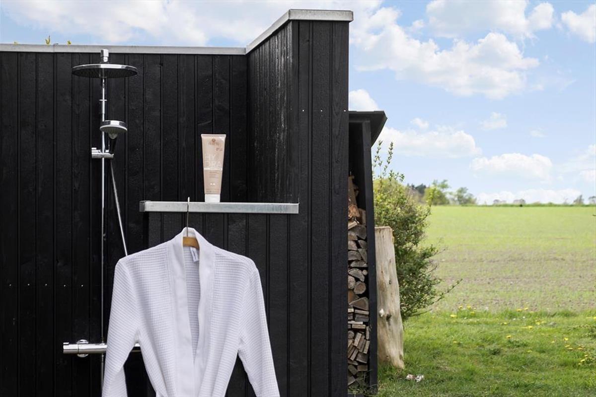 Sie wohnen auf einem großen Grundstück in Saksild. Nah an allem! Unter freiem Himmel bieten sich Ihnen vielfältige Aufenthaltsmöglichkeiten. Der Garten animiert mit seiner Grasfläche zum Spielen und Umhertollen. Die Jüngsten erfreuen sich an einer Sandkiste und einer Schaukel. An das Haus schließen mehrere gute Terrassen, die teils offen und teils überdacht sind. Diverse gute Gartenmöbel, Liegestühle und ein Holzkohlegrill stehen zu Ihrer Verfügung. 320 Meter trennen das Urlaubsdomizil vom besten Badestrand Ostjütlands. Nach einem langen Tag am Strand ist es herrlich, sich unter der Außendusche den Sand und das Salz des Meeres von der Haut zu spülen.