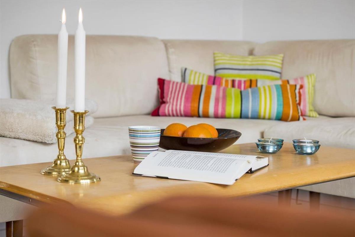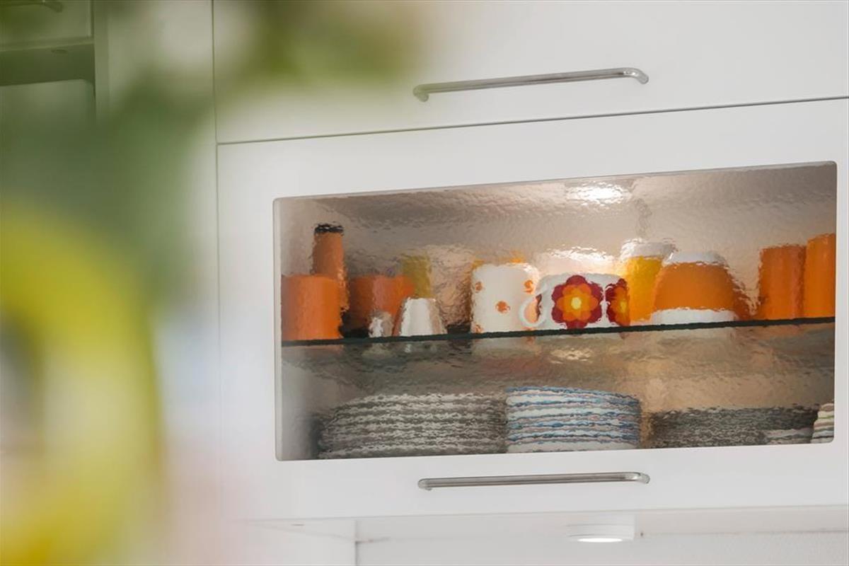 Innen wirst du von einer warmen und einladenden Atmosphäre begrüßt, in der die Farbe Orange den Ton angibt – ein wiederkehrendes Element, das den fröhlichen und sonnigen Ausdruck des Hauses unterstreicht. Das helle Interieur kombiniert modernes Design mit einem verspielten Retro-Touch und schafft so einen einzigartigen Charme. Es gibt Platz für Entspannung und Geselligkeit – ob du dich in ein gutes Buch vertiefen oder Gespräche in guter Gesellschaft genießen möchtest.