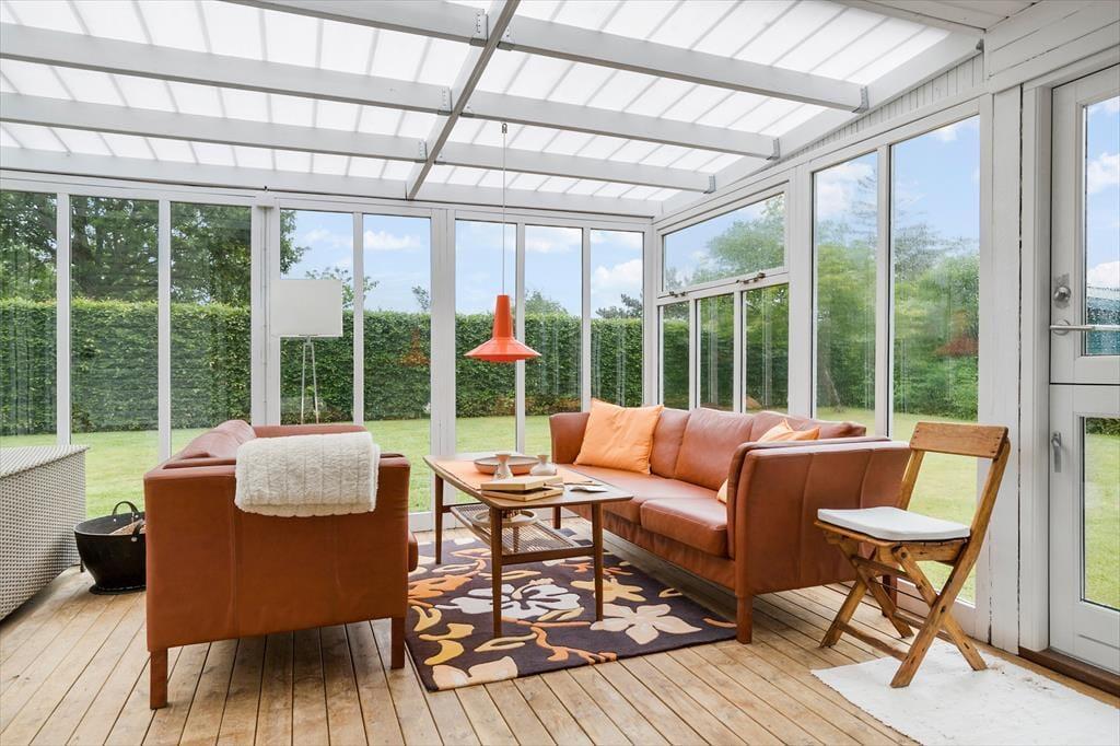 Der integrierte Wintergarten bringt den Garten direkt ins Wohnzimmer und ermöglicht es dir, das Licht und die Umgebung auch an regnerischen Tagen zu genießen. Zünde den Holzofen an und lass die flackernden Flammen Wärme und Atmosphäre bis weit in den Abend verbreiten.