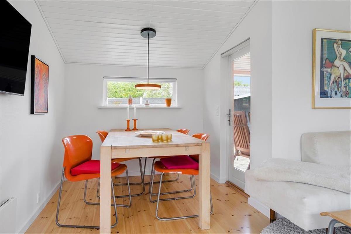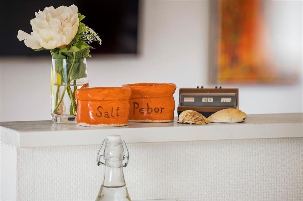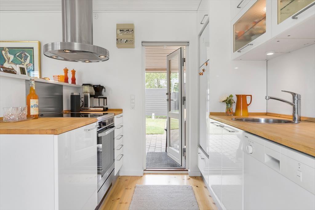 Die gut ausgestattete Küche hat direkten Zugang zu einer überdachten Terrasse, die sich perfekt für den Morgenkaffee eignet. Wir empfehlen einen Ausflug nach Saksild für frisches Morgenbrot – entweder von Bagergården, der das klassische Handwerk beherrscht, oder von der Mikro-Bäckerei Groft, bei der Sauerteig im Mittelpunkt steht.