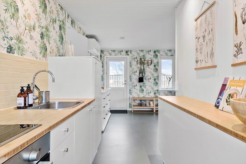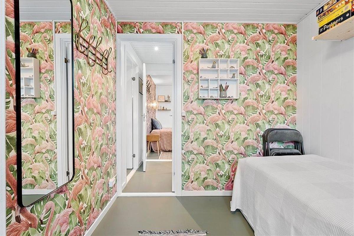 Das Ferienhaus bietet vier Schlafplätze, verteilt auf zwei charmante Schlafzimmer, die beide mit stilvollen Farben und wunderschönen Tapeten dekoriert sind. Hier schlafen Sie in bequemen Betten und tanken neue Energie für den nächsten Urlaubstag. Die letzte Schlafmöglichkeit befindet sich im Wohnbereich, wo ein elegantes und gemütliches Schlafsofa für eine angenehme Nachtruhe sorgt.