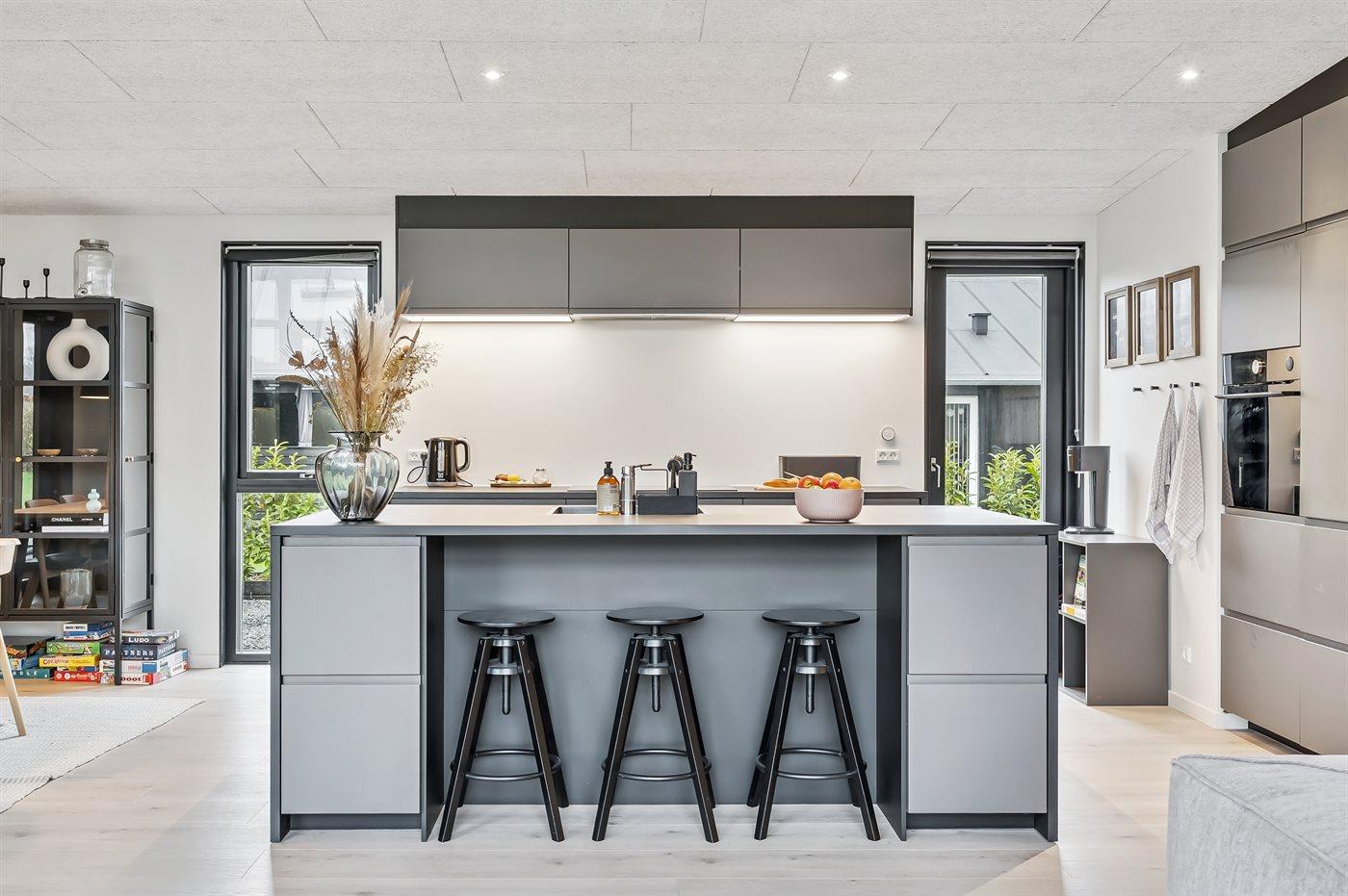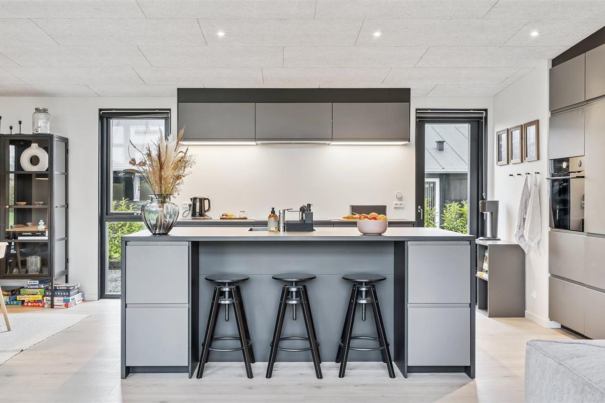 De keuken is uitgerust met koelkast Er is 4 inductiekookplaten, heteluchtoven, magnetron en vaatwasser.