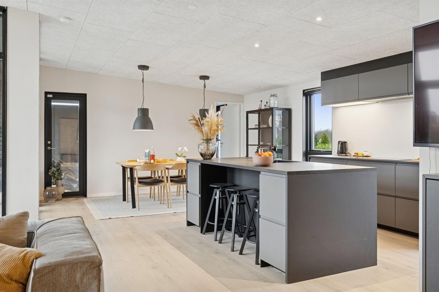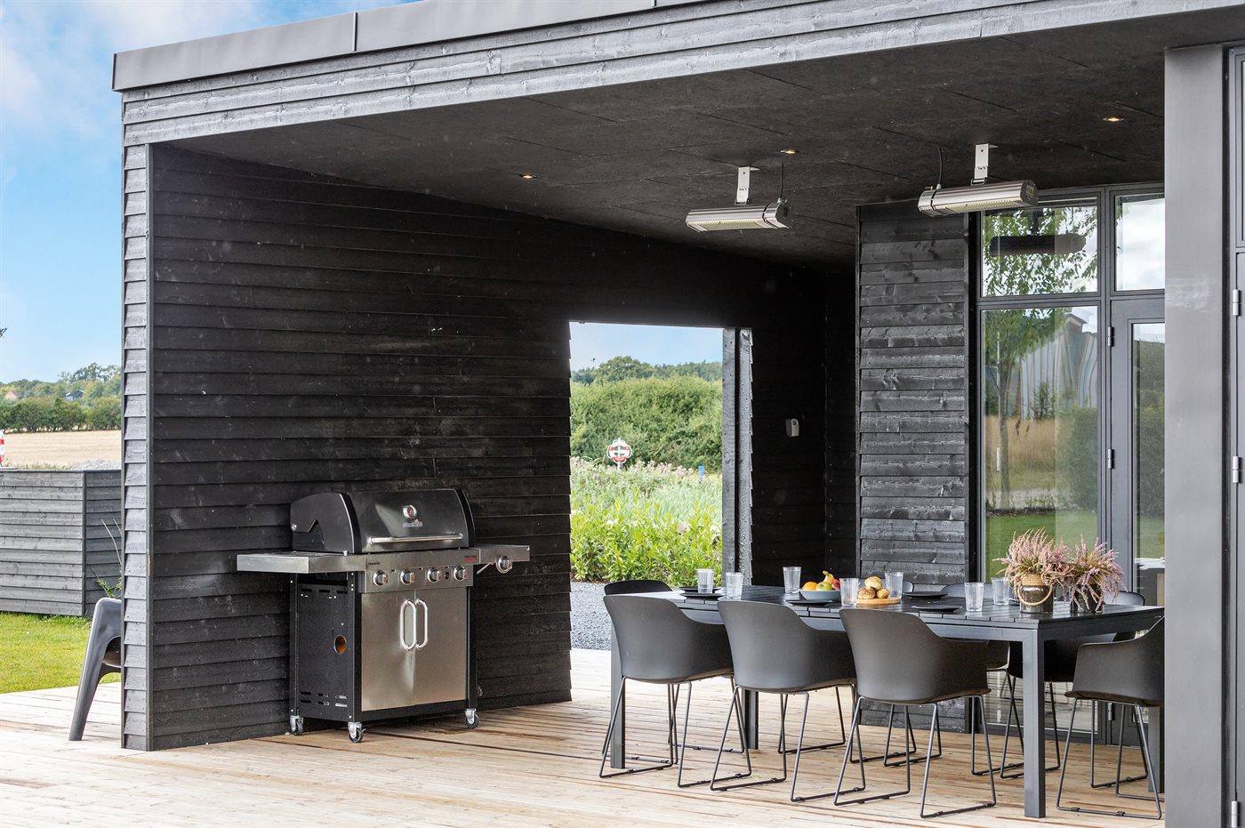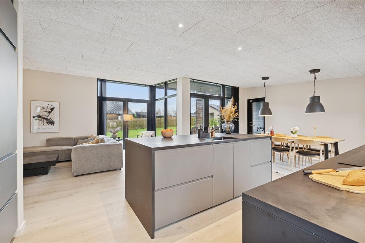 Ruim en modern vakantiehuis in Saksild Strand met tuin, overdekt terras en bubbelbad, vlakbij zee.