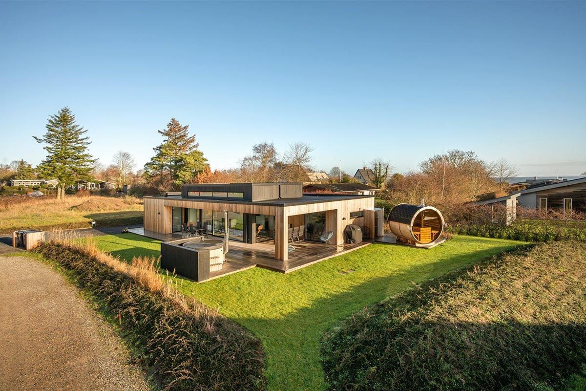 Modern en luxe vakantiehuis nabij Saksild Strand met sauna, bubbelbaden en ruime tuin.