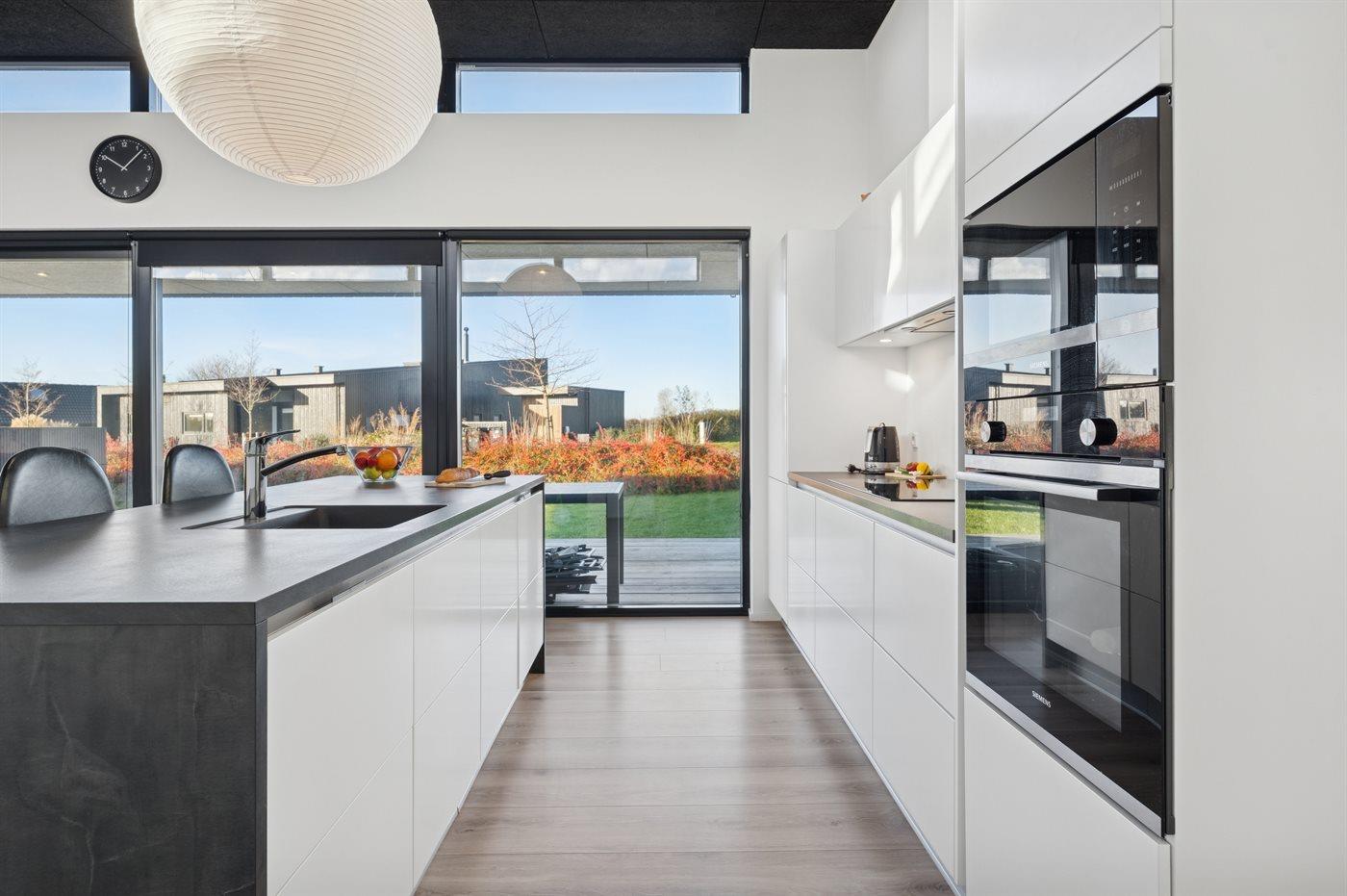 De keuken is uitgerust met koelkast Er is 4 inductiekookplaten, heteluchtoven, magnetron en vaatwasser.