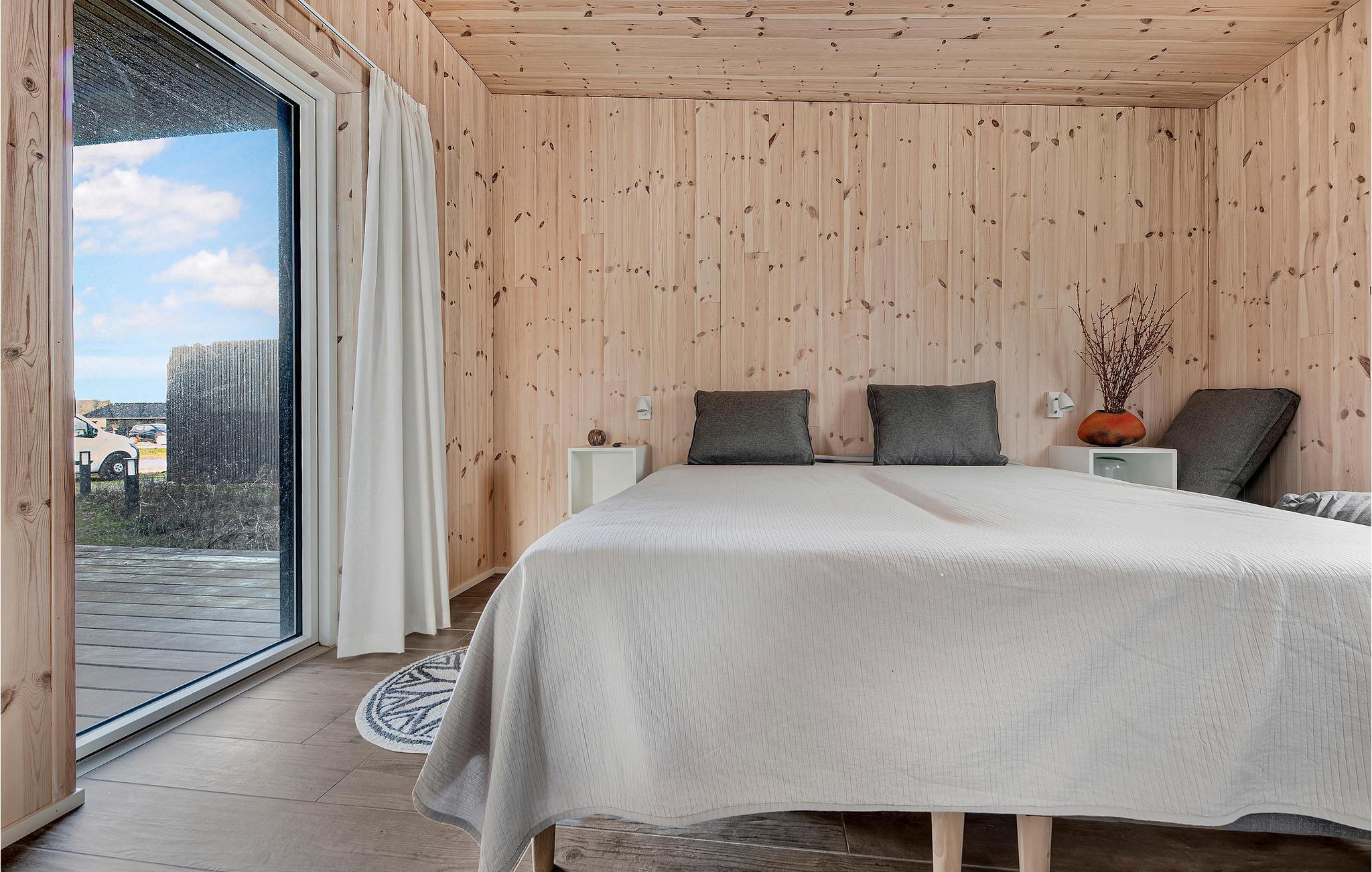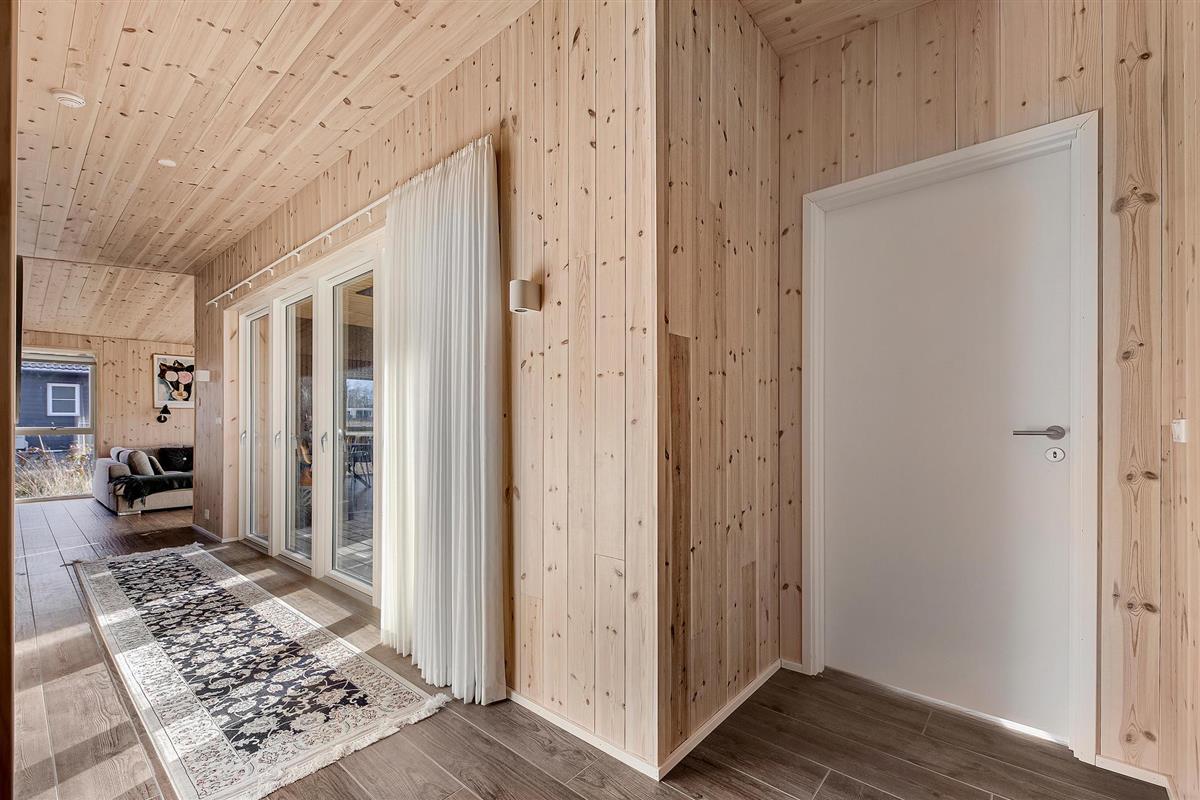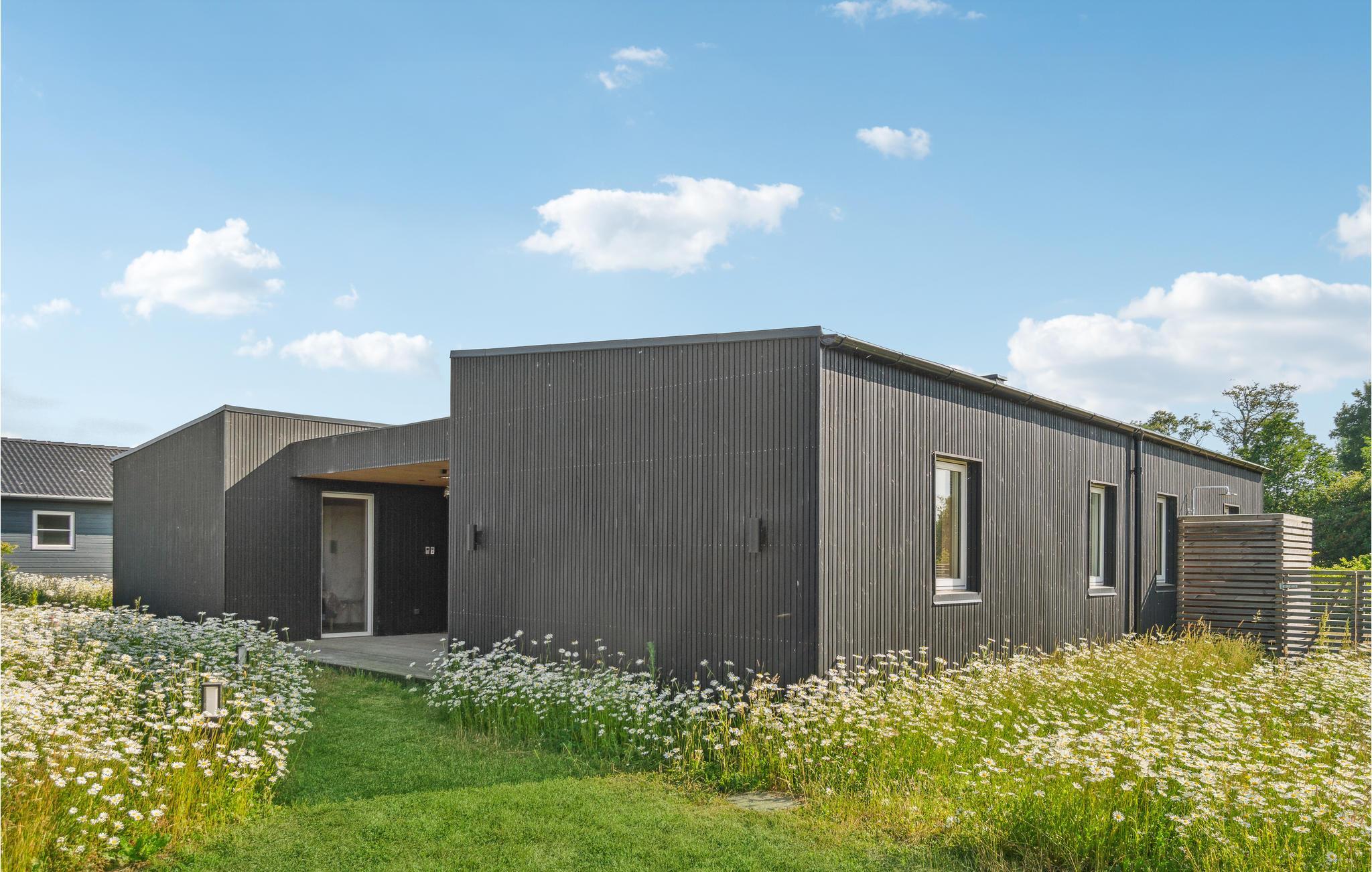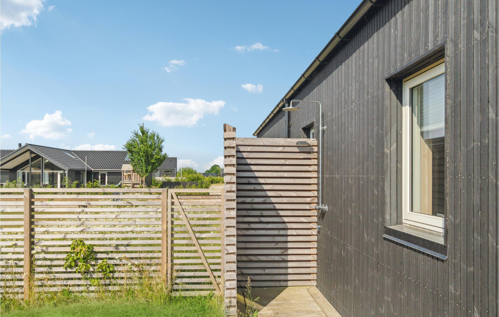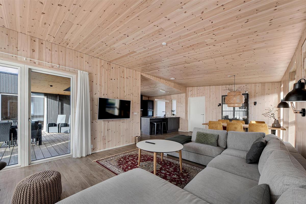 Modern houten vakantiehuis nabij het strand van Saksild, met ruim terras en luxe voorzieningen voor een ontspannen gezinsvakantie.
