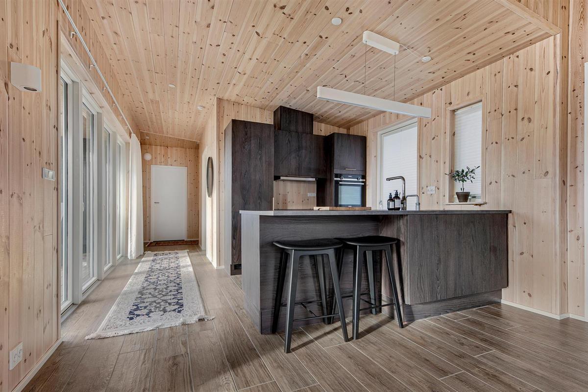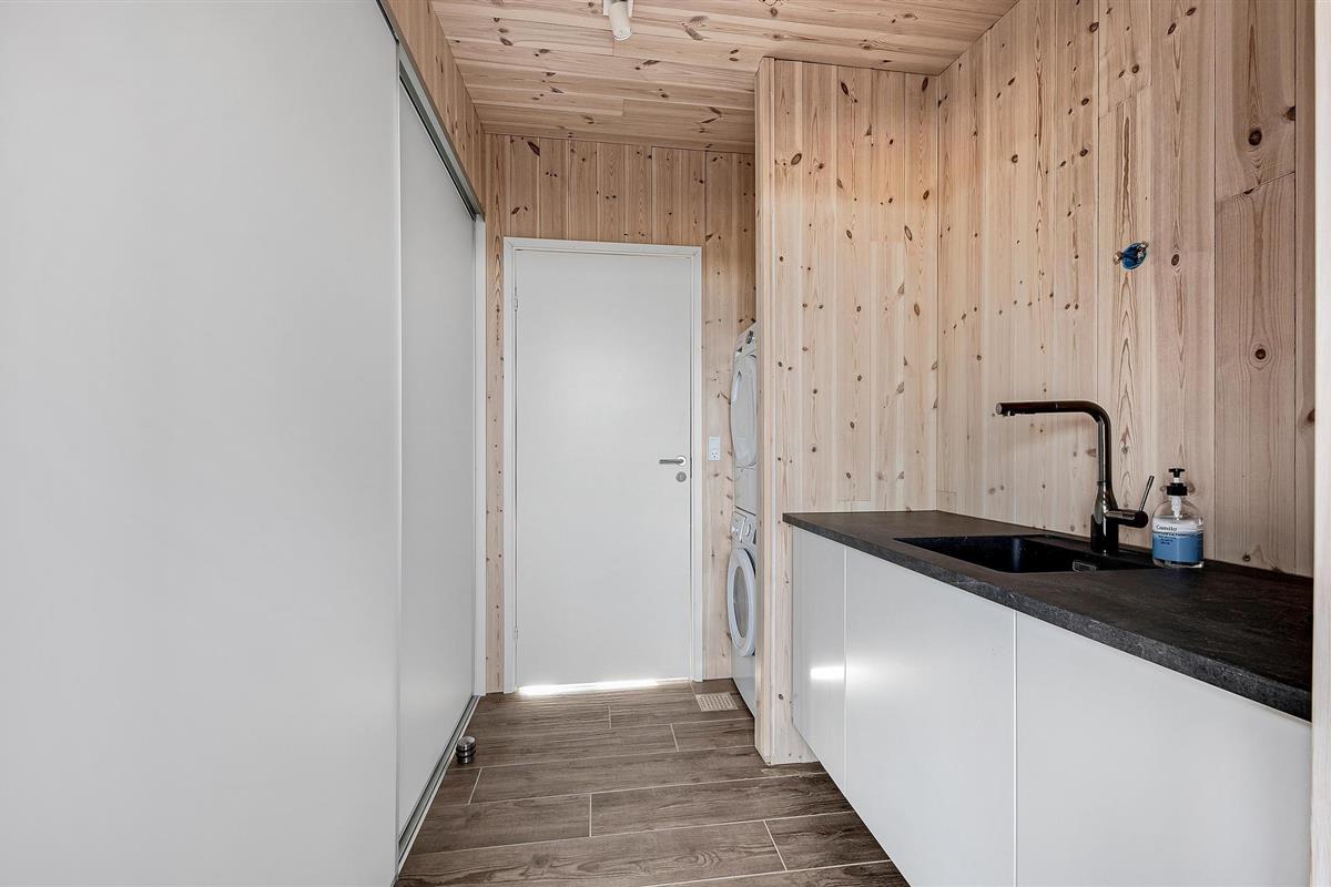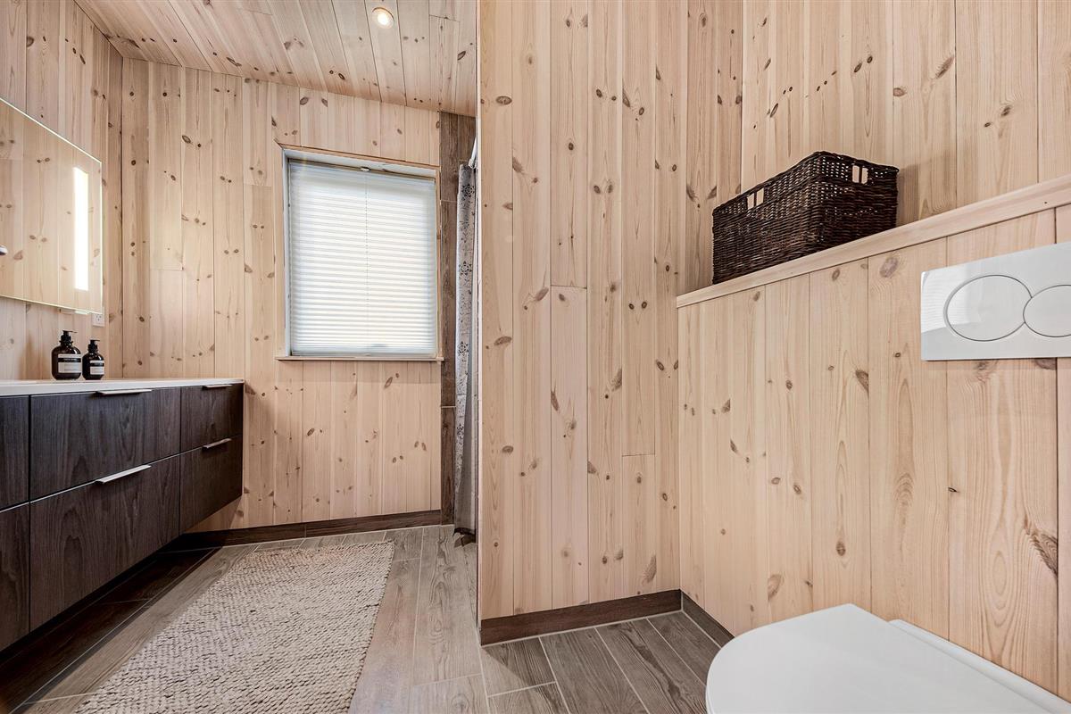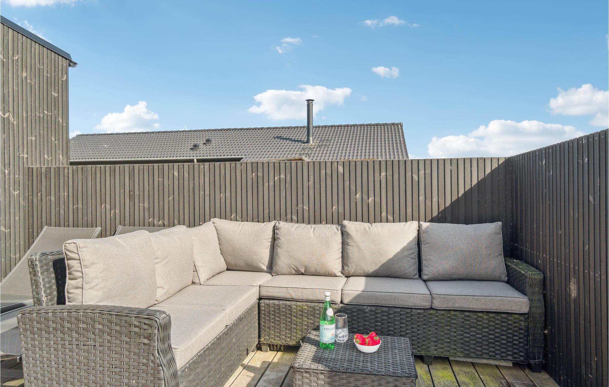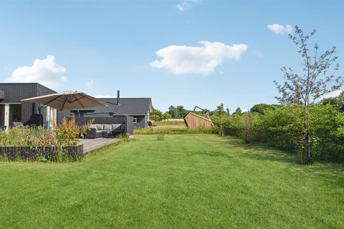 Modern houten vakantiehuis nabij het strand van Saksild, met ruim terras en luxe voorzieningen voor een ontspannen gezinsvakantie.