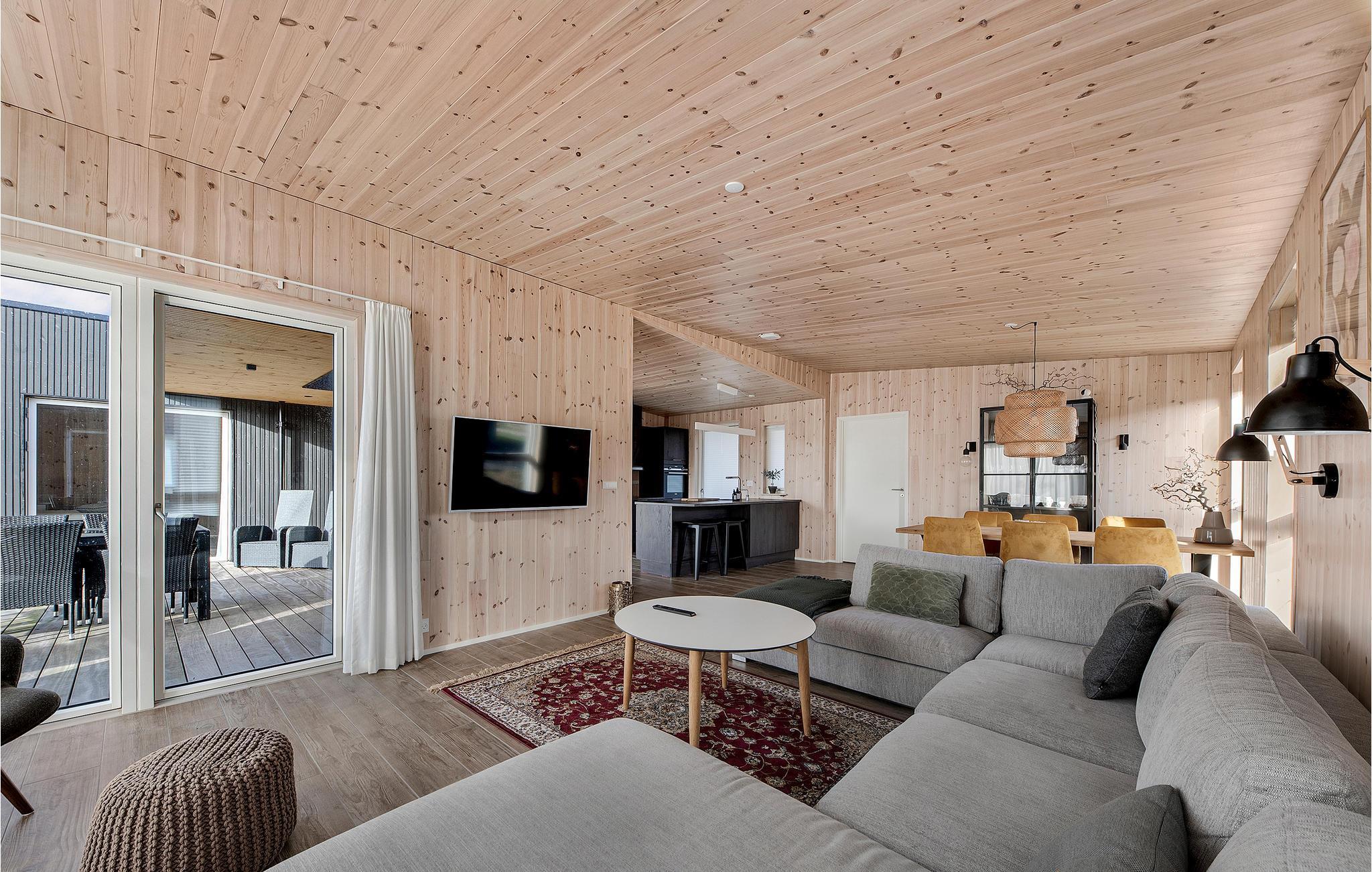 Breng een comfortabele vakantie door met uw gezin in dit prachtige vakantiehuis, dat met zijn houten lambrisering een warme en gezellige sfeer creëert. Geniet van uw tijd in de lichte woonkamer, die uw natuurlijke familie ontmoetingsplaats zal worden. Hier kunt u samen ontspannen op de bank, uw favoriete film kijken, samen koken of bordspellen spelen. Bij warme temperaturen kunt u gebruik maken van het grote zonneterras en loungen op het hoogwaardige tuinmeubilair, de paarden zien grazen in de naburige paddock of een heerlijke BBQ bereiden en er samen van genieten in de open lucht.