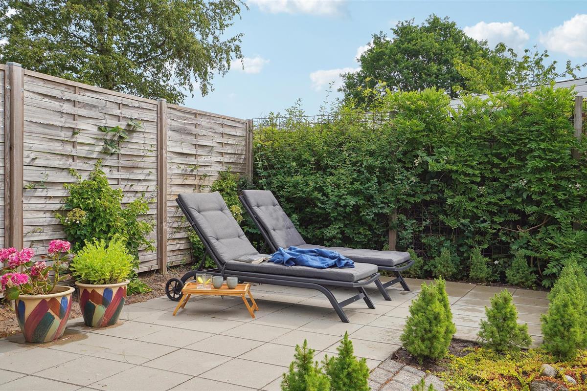 De tuin heeft ook veel te bieden, verschillende terrassen nodigen je uit om te baden in de zon, een boek te lezen of 's avonds samen te komen rond de vuurschaal.