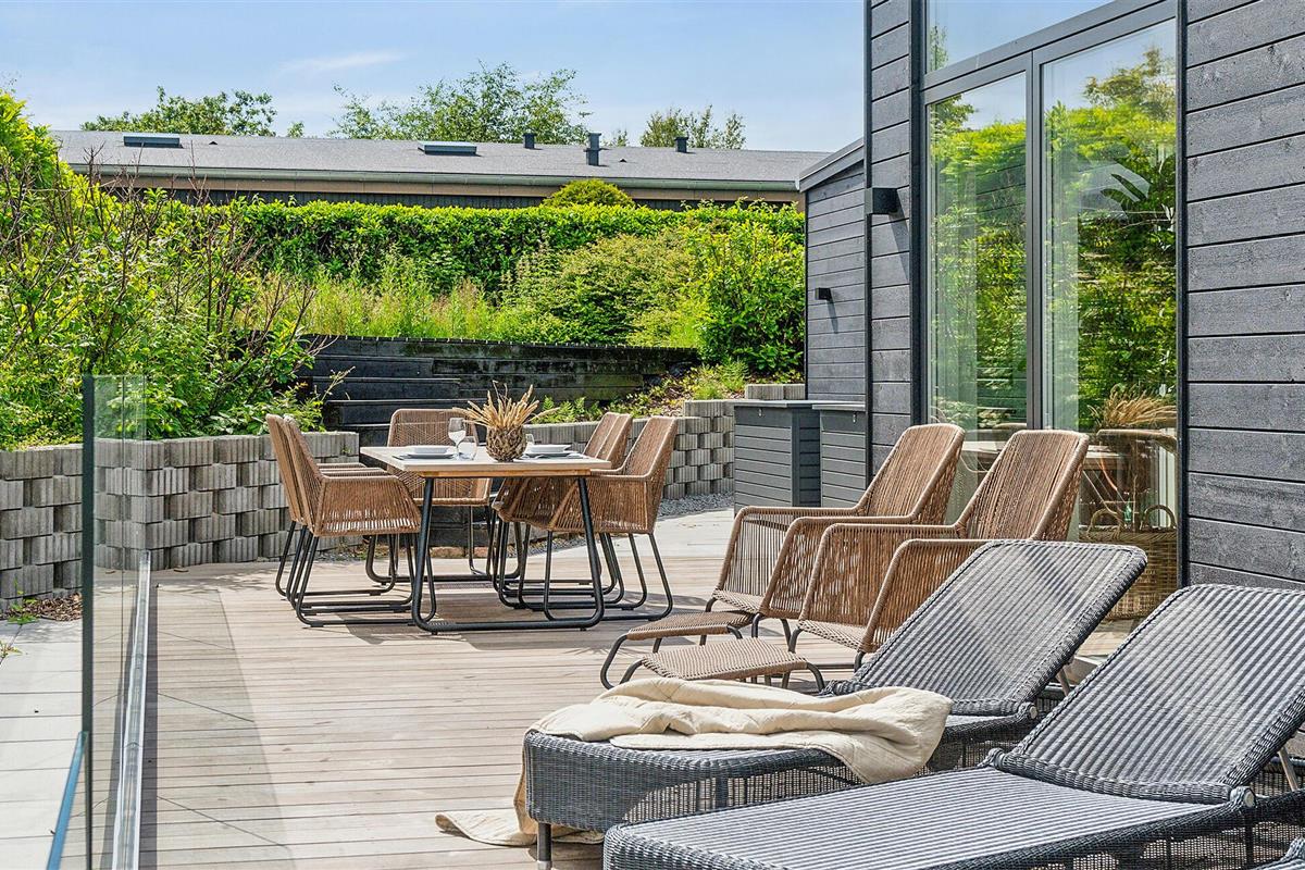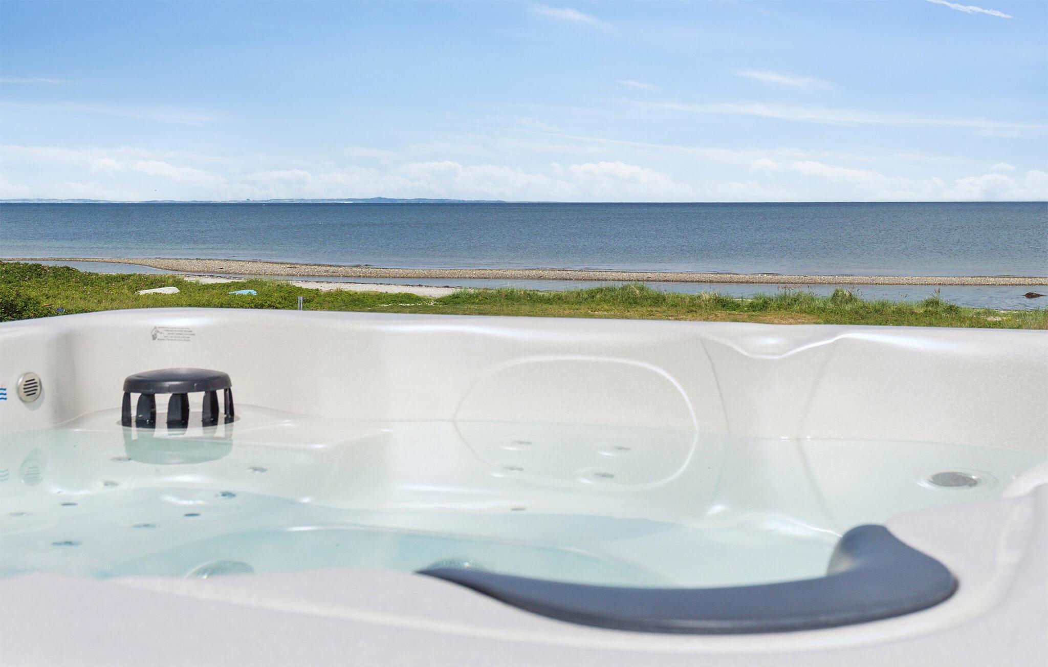 Modern vakantiehuis met whirlpool aan Saksild Strand, prachtig uitzicht en luxe voorzieningen.