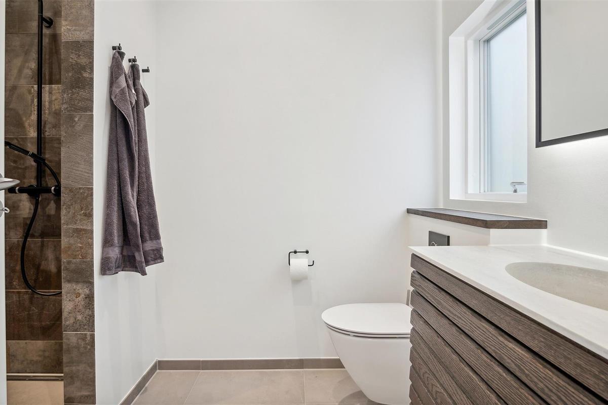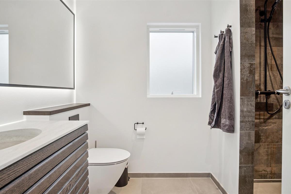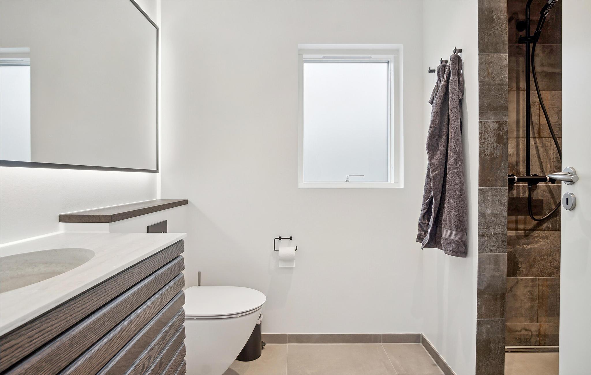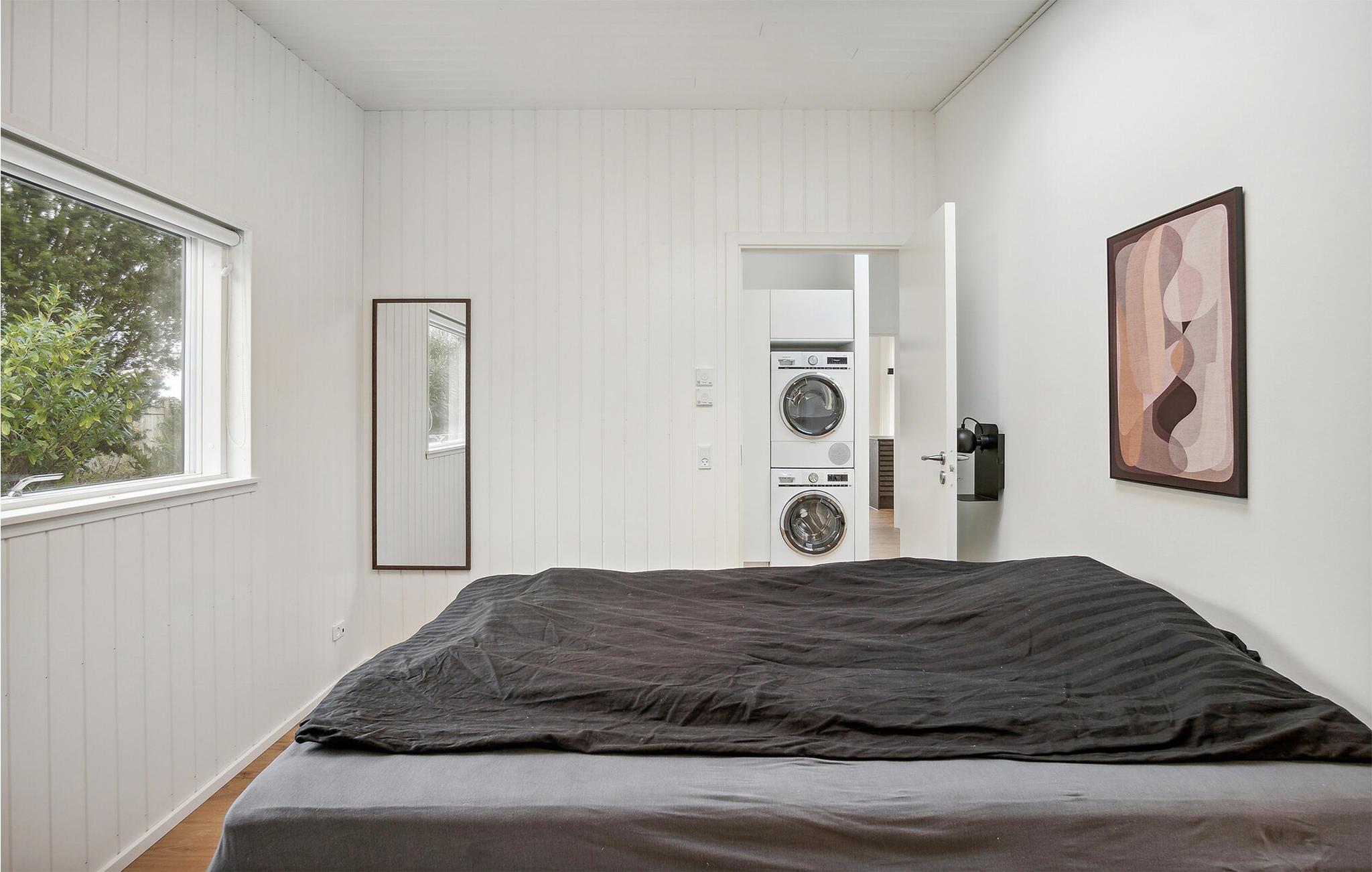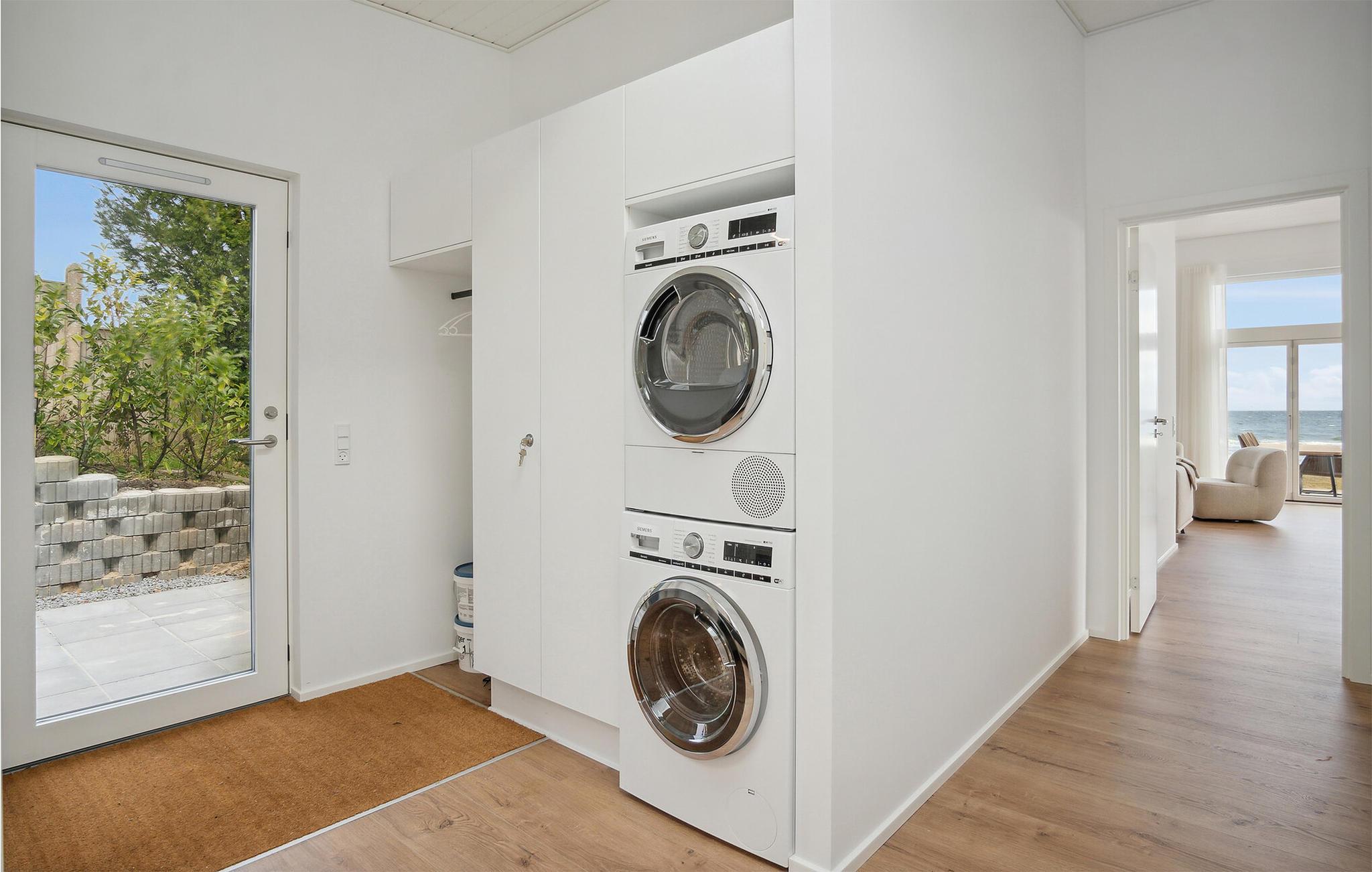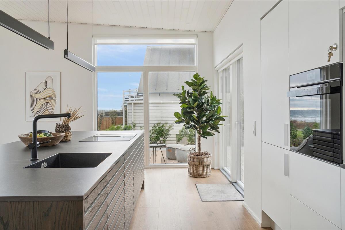 Stap het mooie huis binnen en geniet van het uitzicht op het water vanuit de grote woonkamer door de vele ramen van vloer tot plafond. Het huis zal je verrukken met zijn comfort, grote lichtinval en hoogwaardige inrichting. Waarom organiseer je geen kookwedstrijd in de grote keuken met kookeiland en dineer je aan de eettafel met uitzicht op het water? Je kunt ook een film kijken of naar de golven van de zee kijken vanaf de bank.