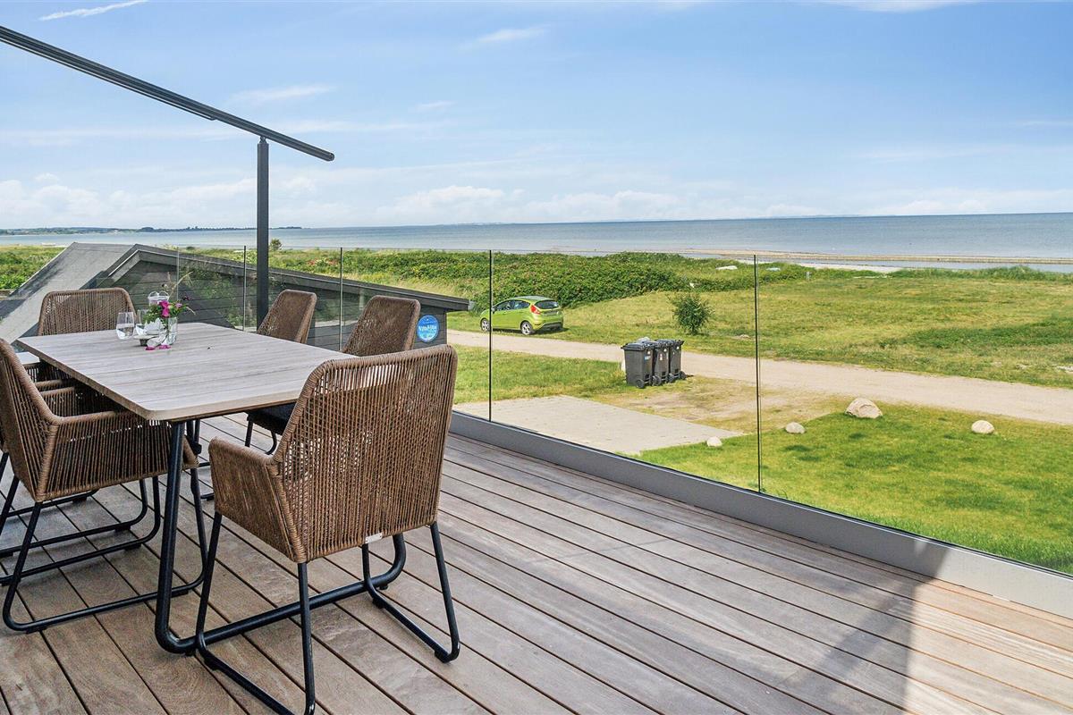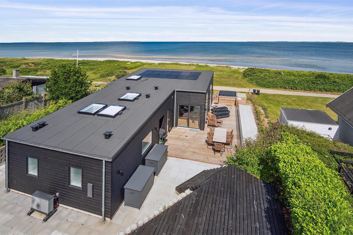 Dit moderne vakantiehuis met whirlpool ligt op een fantastische locatie aan het strand van Saksild.
