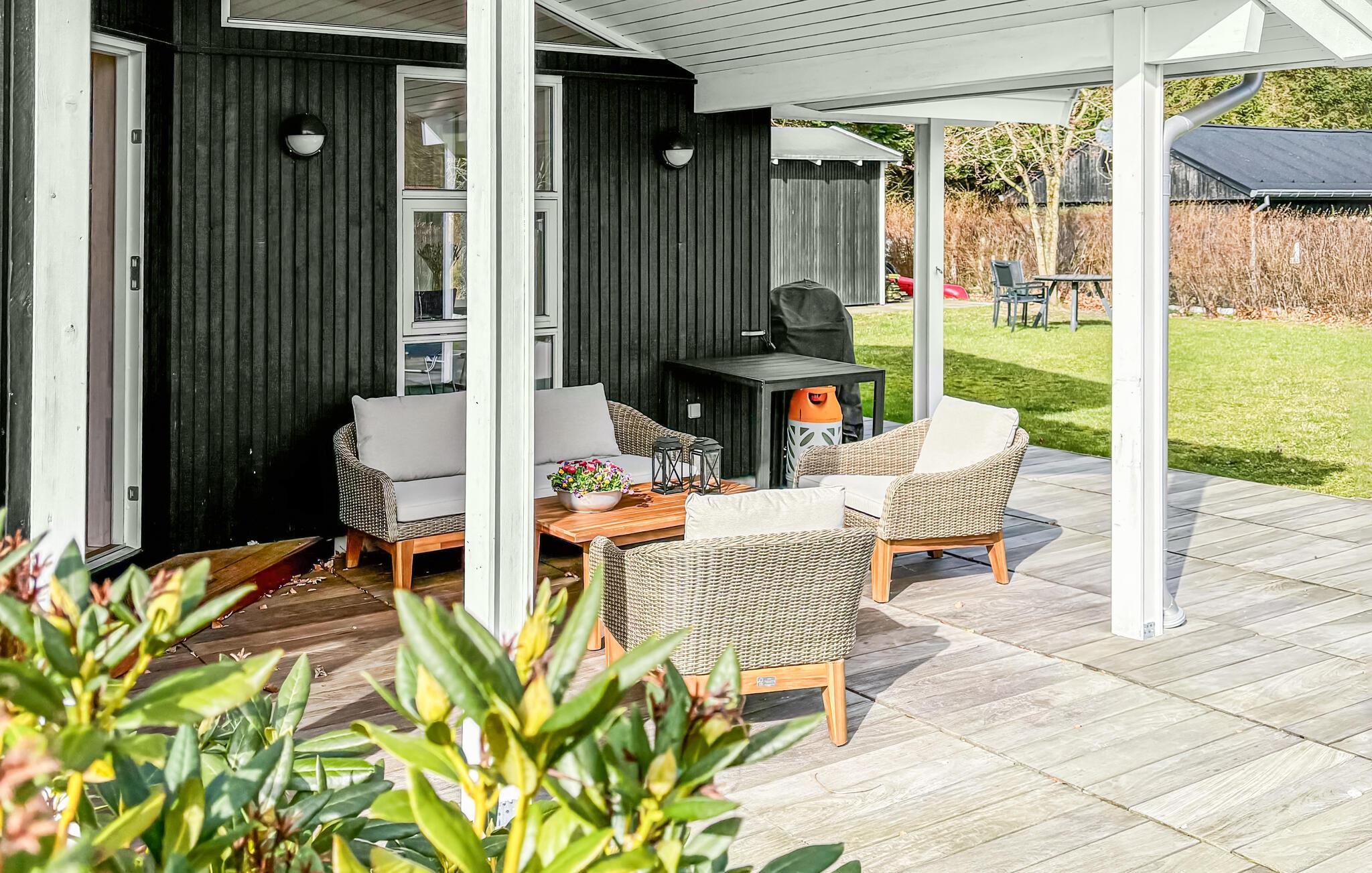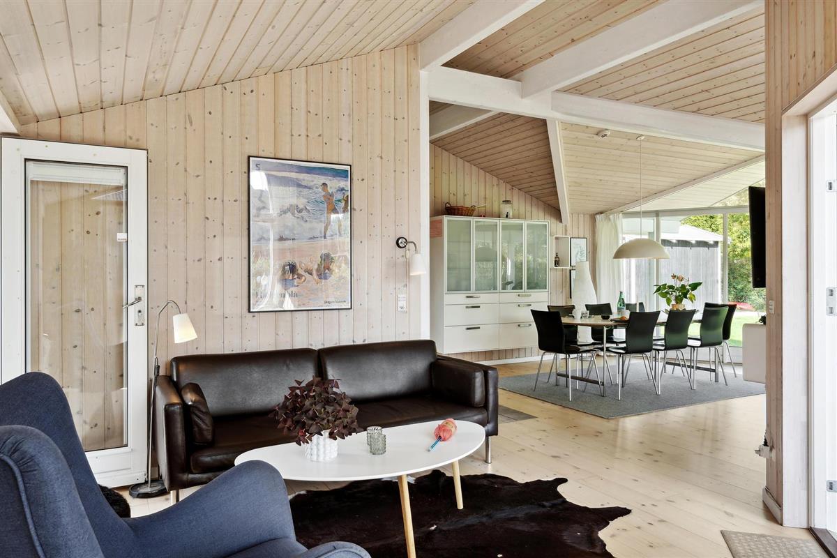 Pure ontspanning wacht op je in dit lichte en vriendelijke vakantiehuis in Saksild Strand.
