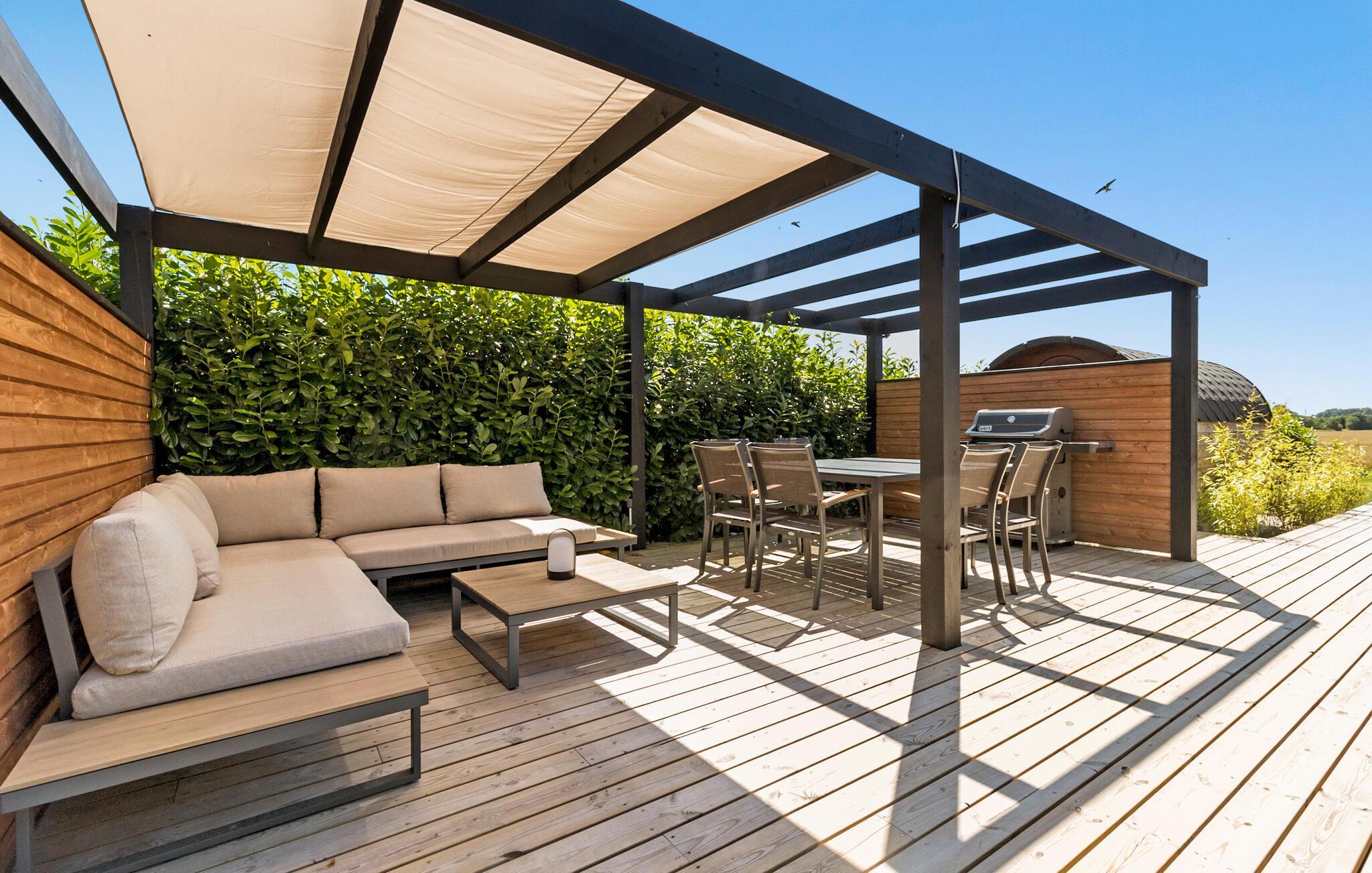 In de zomermaanden nodigen de verschillende terrassen, overdekt of in de open lucht, je uit om te ontspannen of gezellig samen te zijn met een barbecue. Na een saunagang kun je afkoelen onder de buitendouche en genieten van het uitzicht op de velden en weilanden.