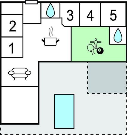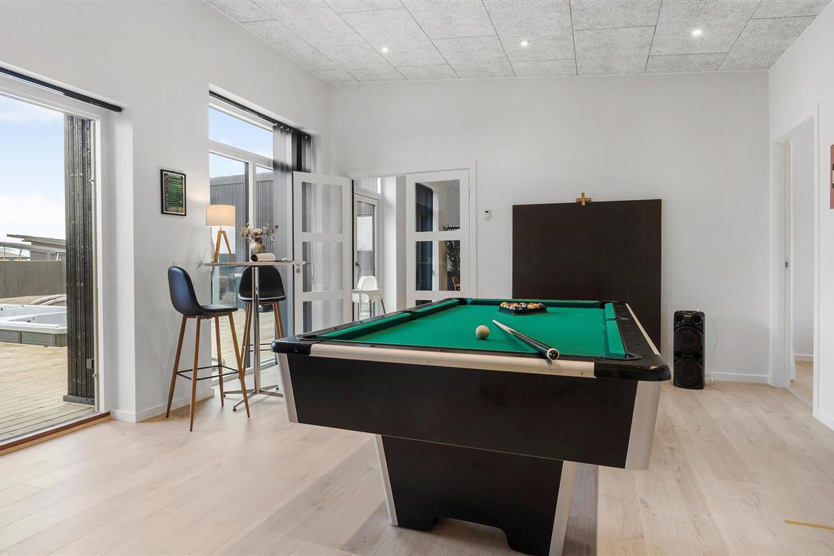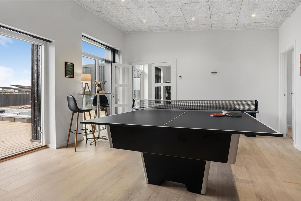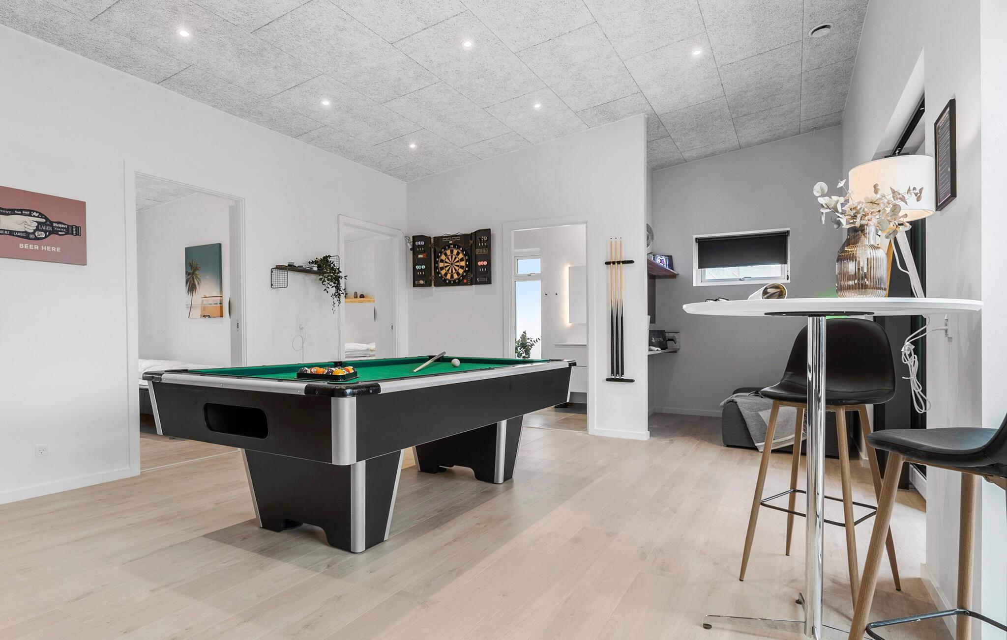 Dit exclusieve en energievriendelijke vakantiehuis biedt je alles wat je nodig hebt voor een ontspannen vakantie. De lichte kamers en hoogwaardige inrichting creëren een uitnodigende sfeer. Een grote eetkeuken en talrijke slaapkamers bieden ruimte voor familie en vrienden. De activiteitenruimte met tafeltennis, biljart en videogames zorgt voor vermaak, terwijl het ruime terras met overdekt gedeelte uitnodigt om te blijven hangen.