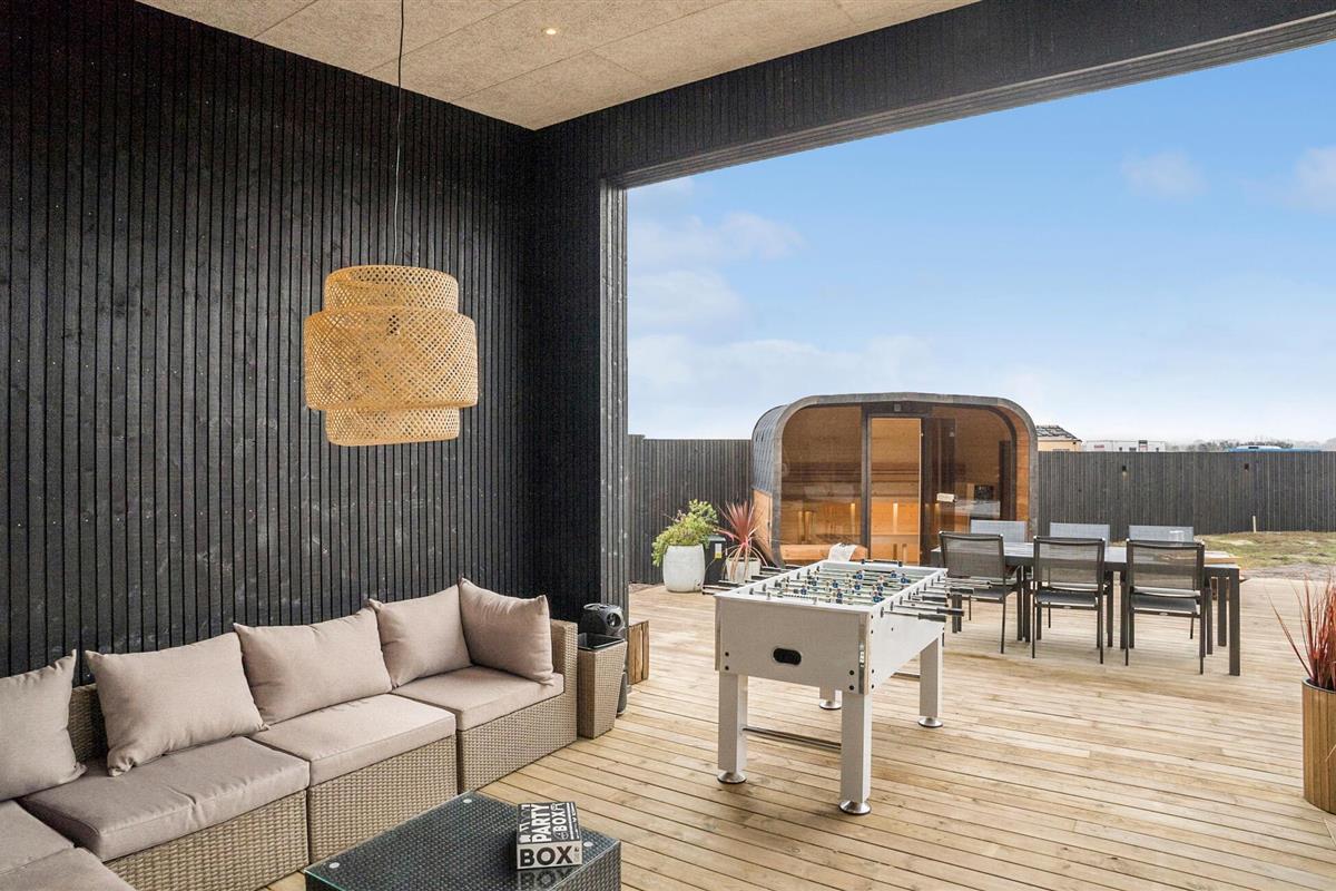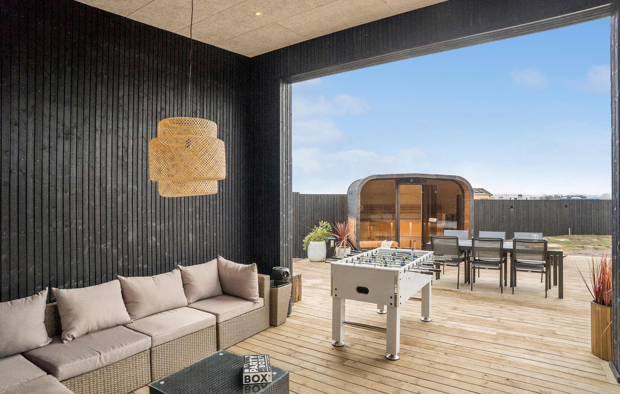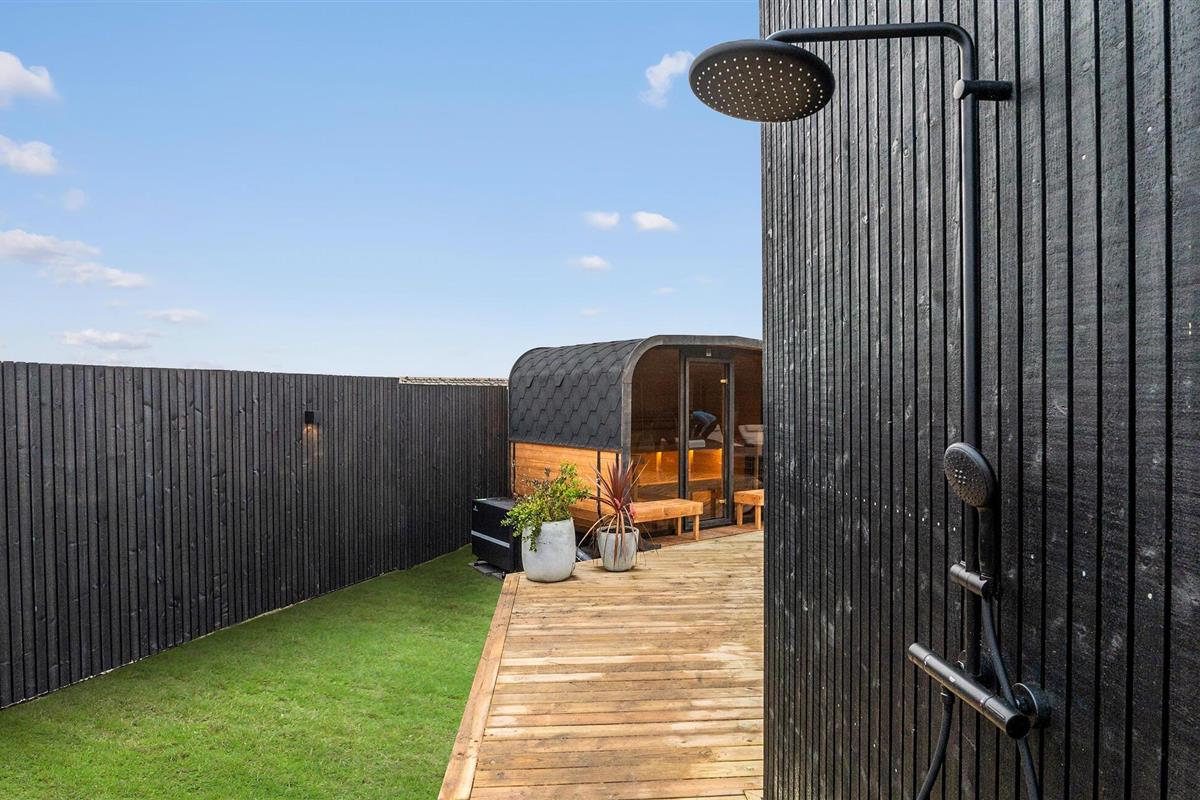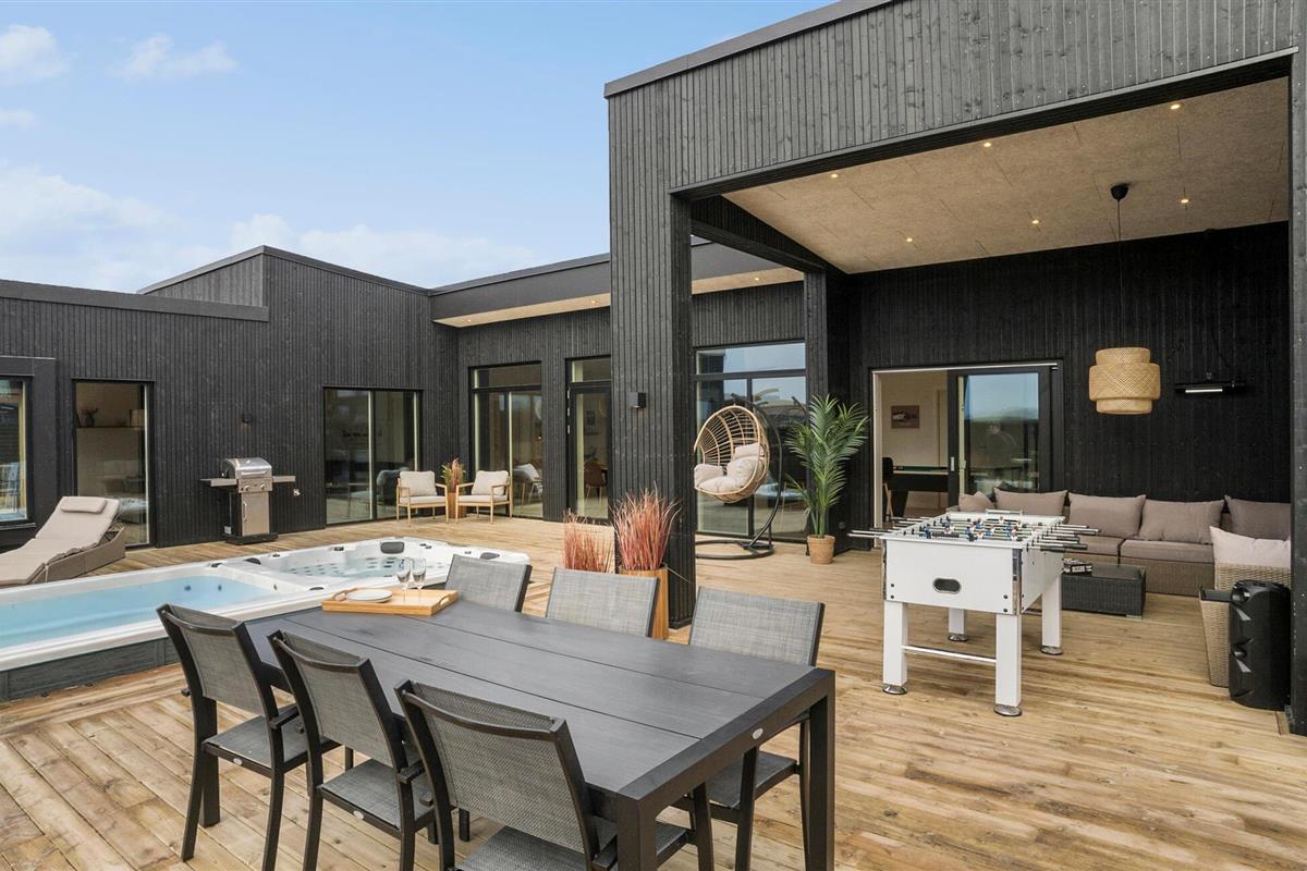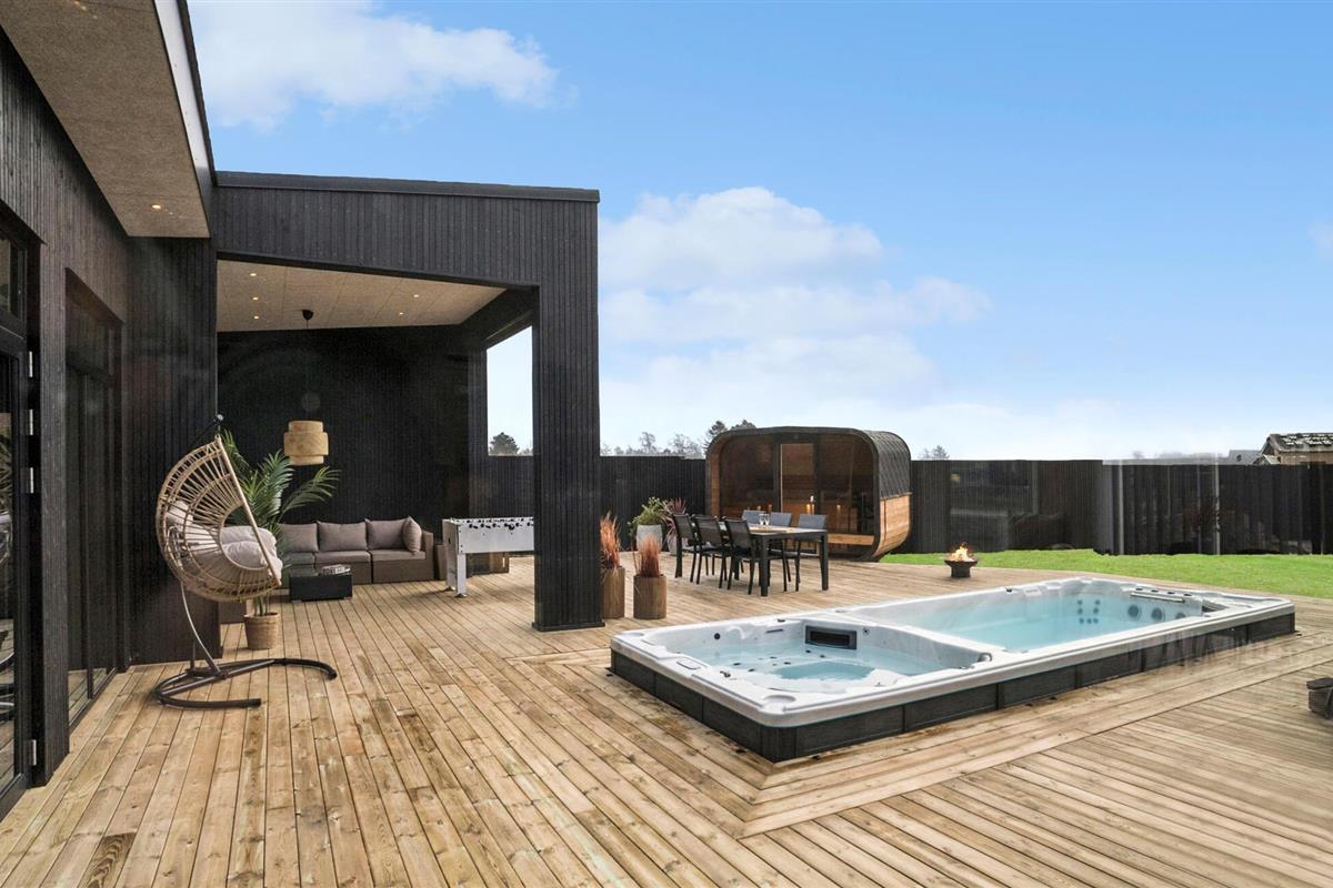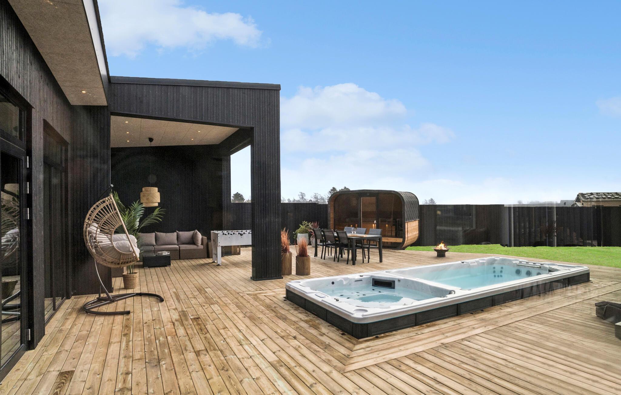 Modern vakantiehuis bij Saksild Strand met zwembad, whirlpool en buitensauna voor ultieme ontspanning.