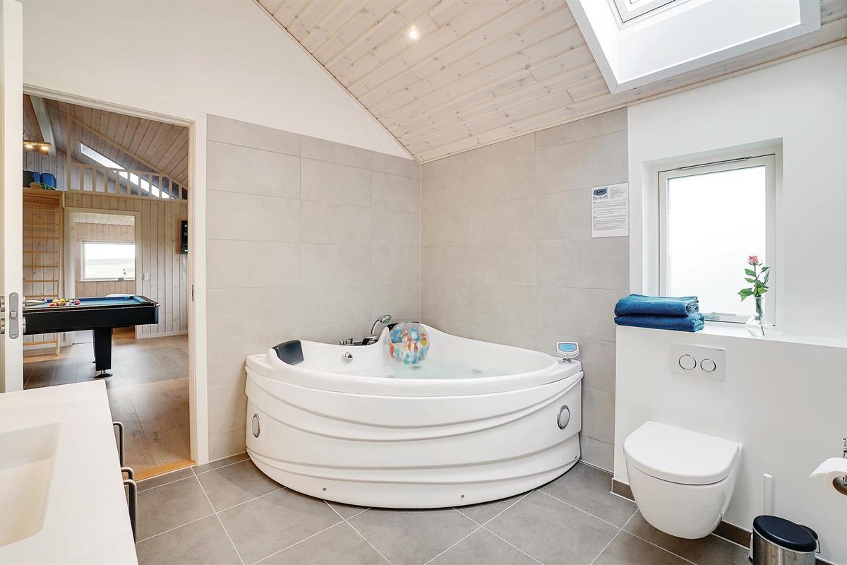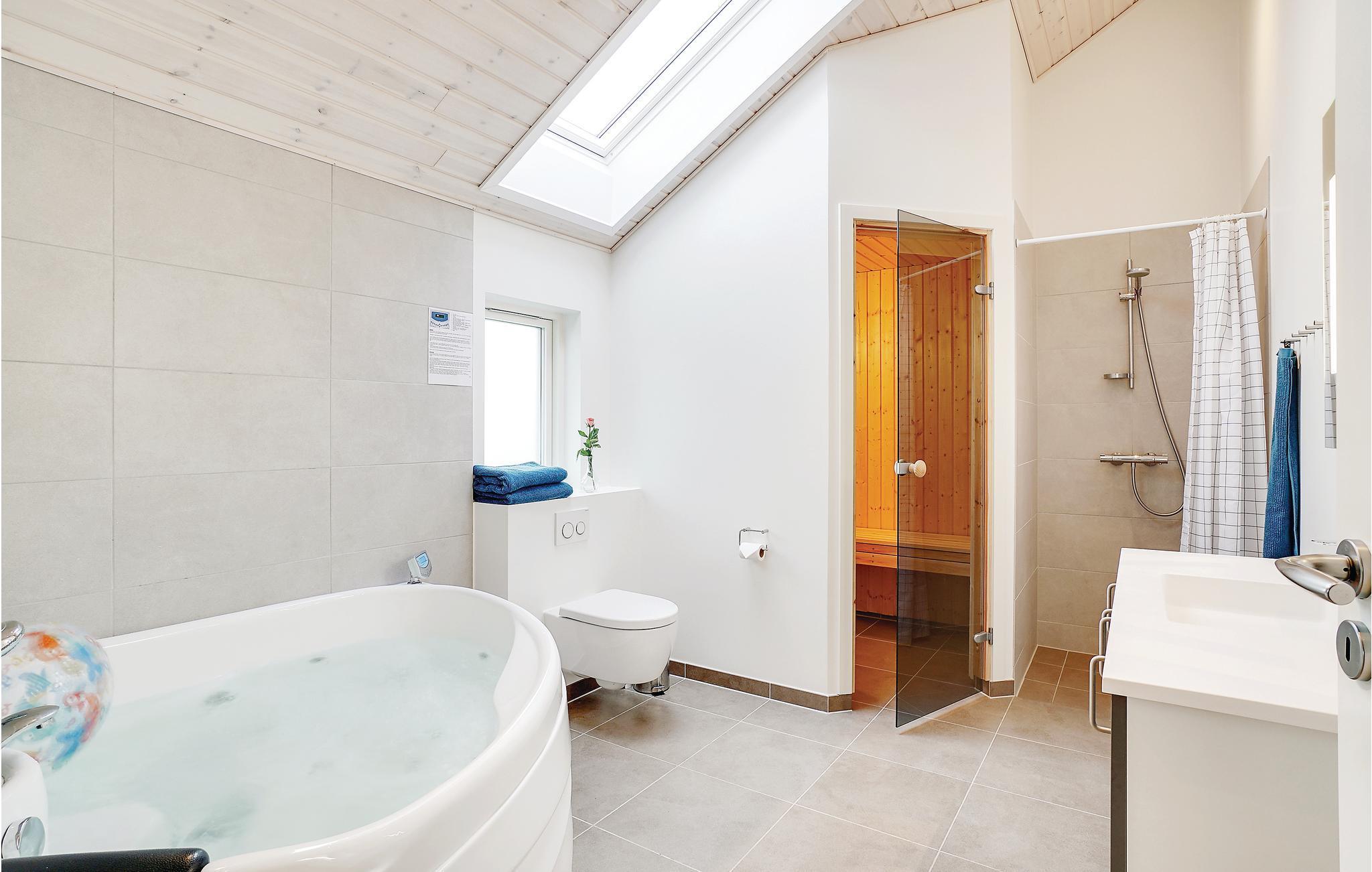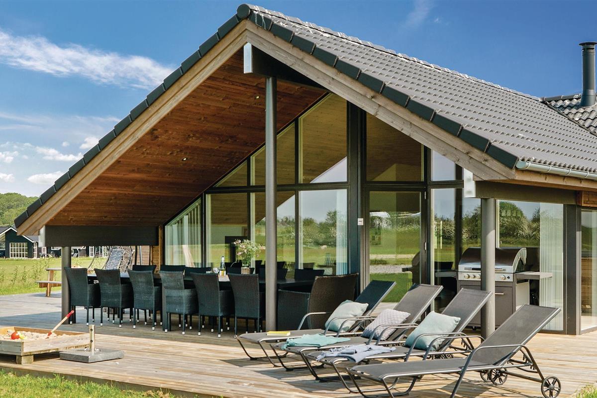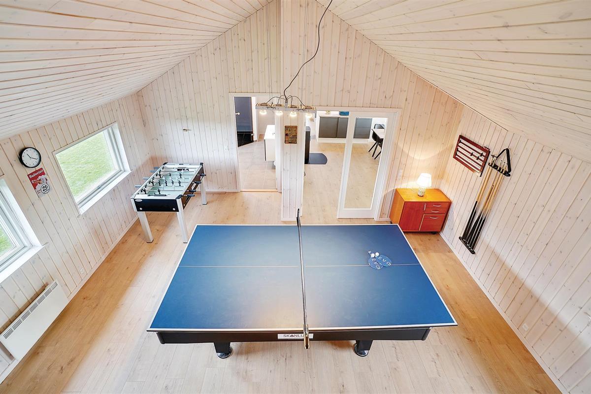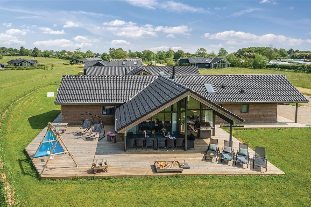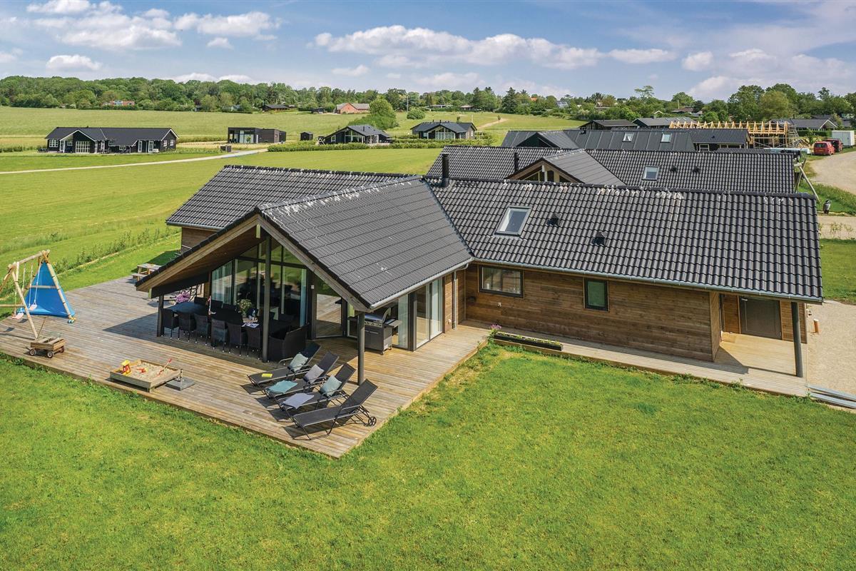 Ruim vakantiehuis nabij Saksild Strand met activiteitenruimte, sauna en bubbelbad, ideaal voor twee gezinnen.