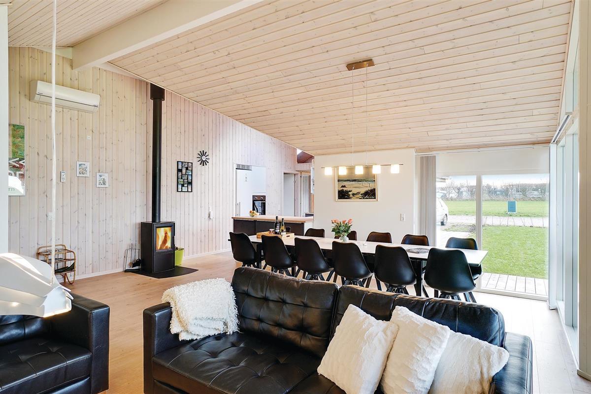 Dicht bij een van de beste badstranden van Oost-Jutland bent u hier op vakantie. Het grote vakantiehuis heeft genoeg ruimte voor twee gezinnen, dus ideaal als u graag met vrienden op vakantie gaat. Er is een grote activiteitenruimte, een grote woonkamer open naar de keuken en er zijn ook vier slaapkamers. Er zijn ook twee matrassen om op te slapen op de slaapzolder. In de zomer kunt u boodschappen doen op de camping naast het vakantiehuis. Hier bent u omringd door natuur die het ontdekken waard is, maak uitstapjes per fiets of te voet. Odder ligt op 15 minuten rijden, waar u boodschappen kunt doen. Aarhus ligt op een uur rijden, daar vindt u werkelijk alles wat uw hartje begeert aan consumptiegoederen en cultuur. Givskud Zoo en Legoland liggen op een uur rijden.