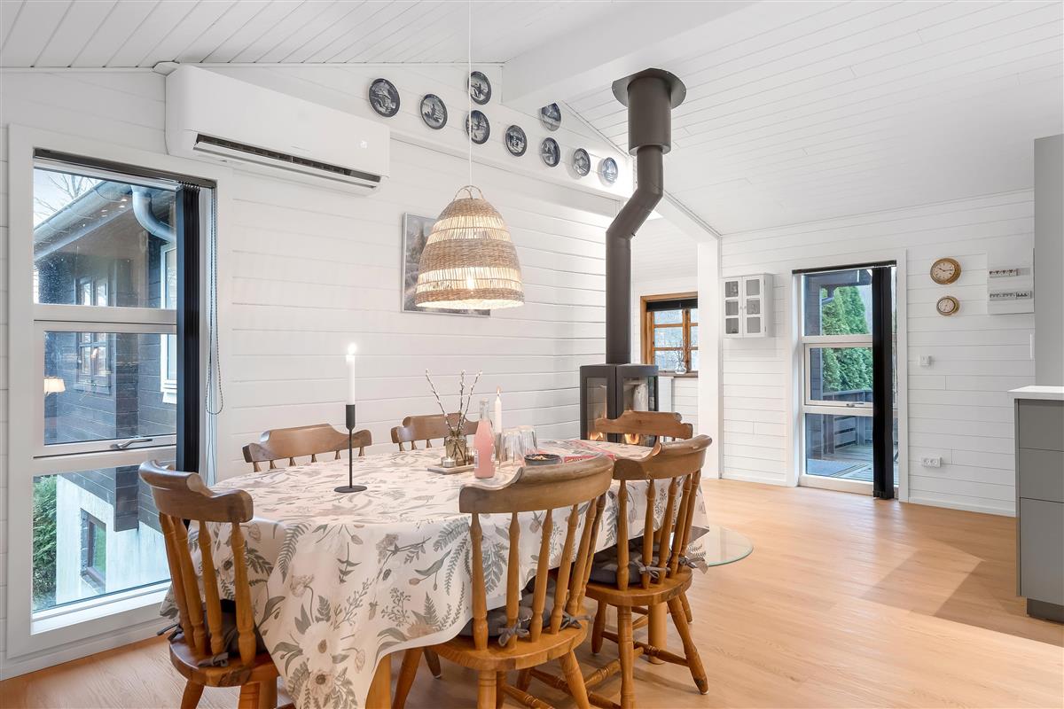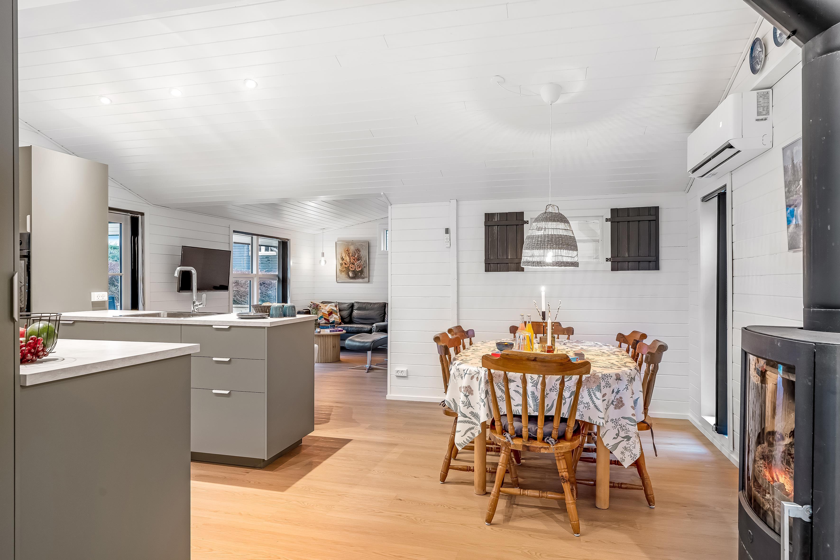 The house has a well-equipped area of 92 square meters and is ideal for up to 6 people. It is perfect for families or groups who want to spend time together. The bright and airy living room is equipped with a wood-burning stove, which creates a cozy atmosphere on cool evenings. For extra comfort, an energy-saving heat pump has been installed, which can also function as air conditioning, so you can adjust the temperature to your needs around the clock.