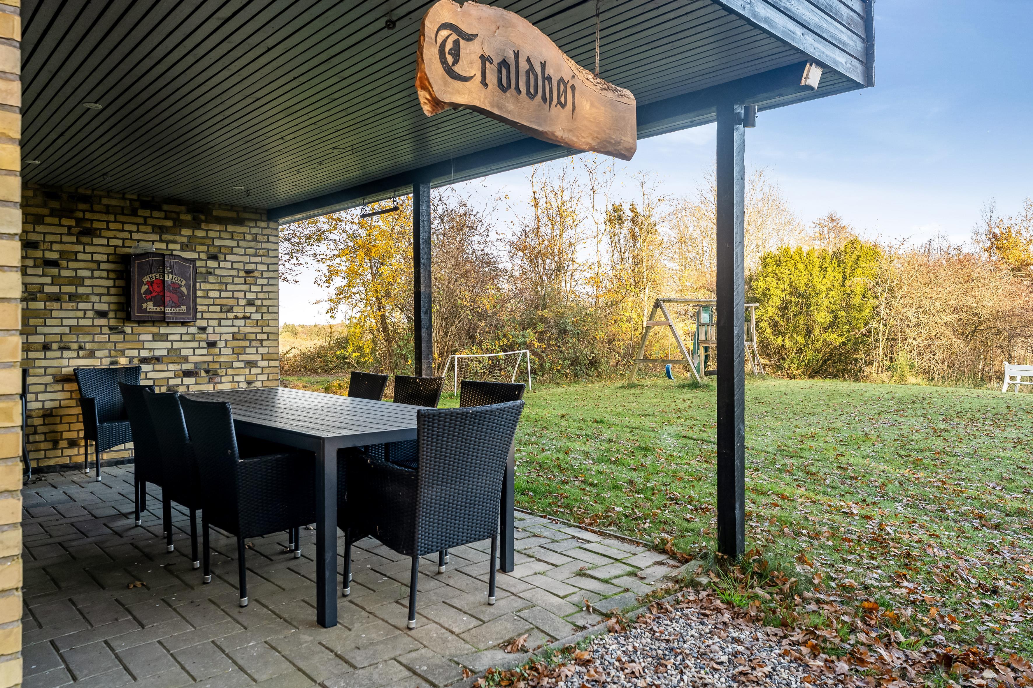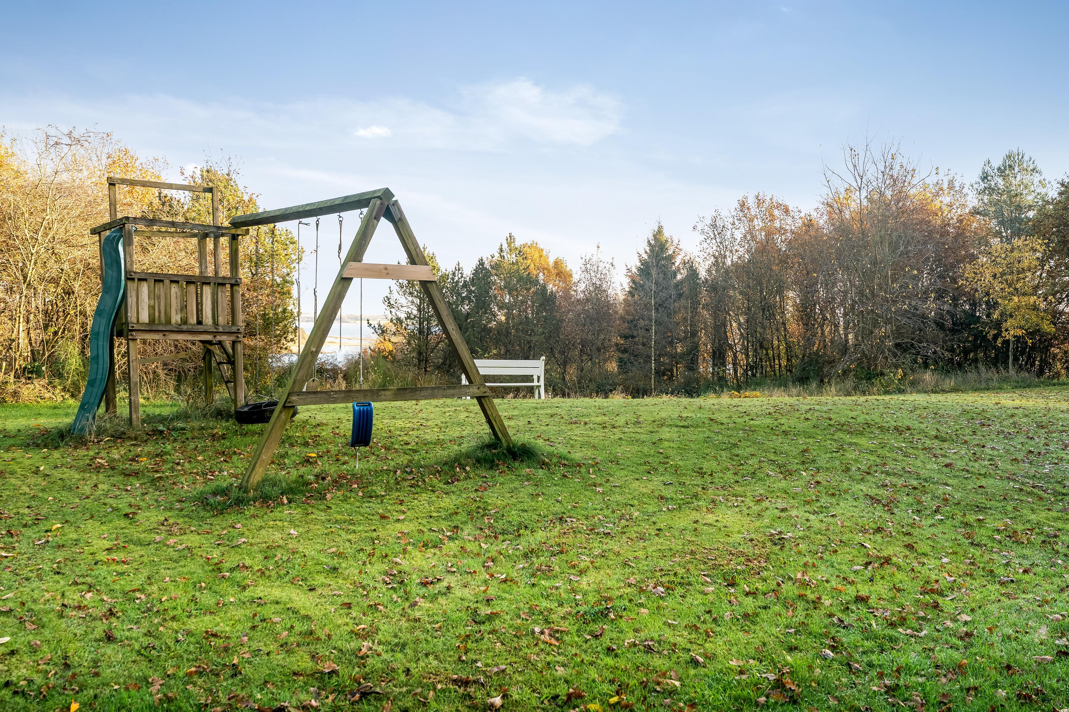 The outdoor area is nothing short of impressive. The covered terrace is perfect for enjoying your morning coffee or a barbecue evening with the family. There is also an open terrace where you can relax in the sun and enjoy the view of the fjord. For those who love to be active outdoors, there are swings for the children and a bonfire area where you can gather for evening stories.