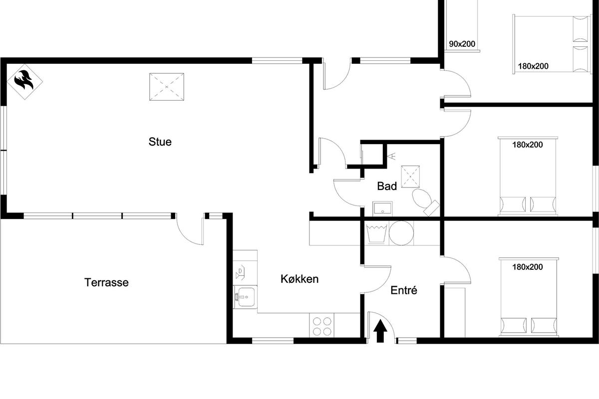 When you enter the house, you will immediately feel at home. The open living room has a wood-burning stove, which creates a warm and cozy atmosphere on cooler evenings. Here you can relax with a good program on the flat-screen TV, which has both Danish and German TV, as well as Chromecast for streaming your favorite movies. Wireless internet is also available, so you can stay connected if you wish.