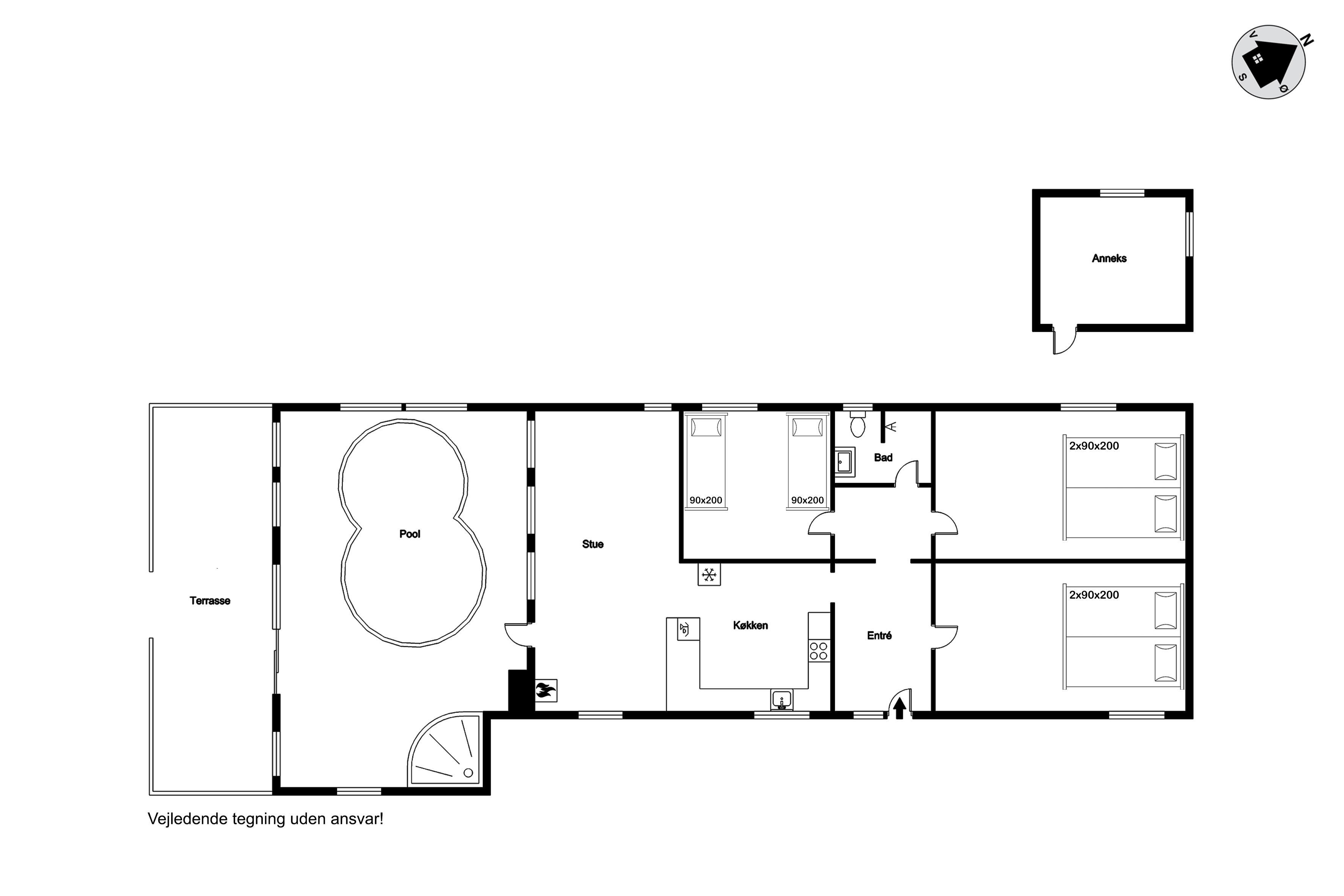 Lovely pool house at Følvigvej 35 in Vile, with space for up to 8 people, is the perfect setting for an unforgettable holiday with family or friends. The house, built in 1969, underwent an extensive renovation in 2023, making it a modern and comfortable oasis. Situated on a large natural plot of 1282 square meters, this holiday home offers both privacy and space for play and relaxation.