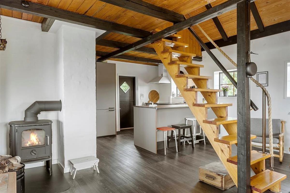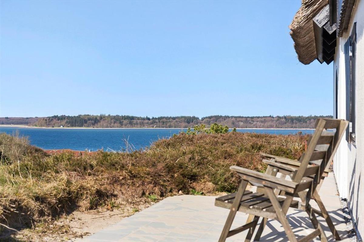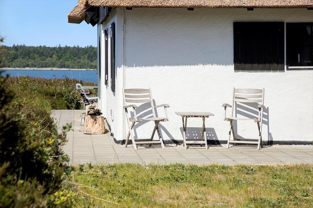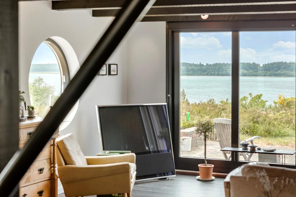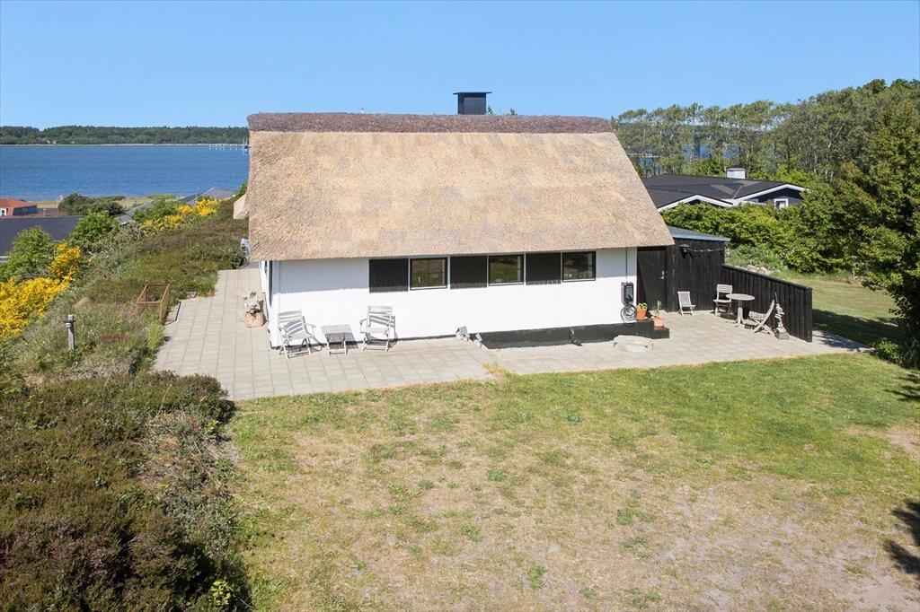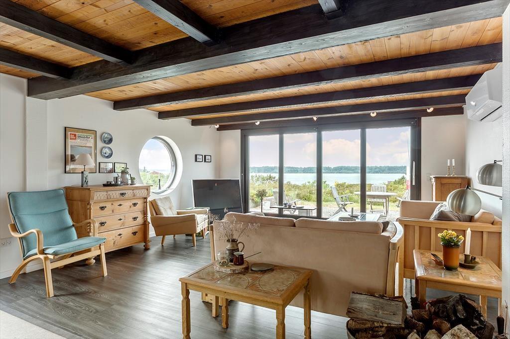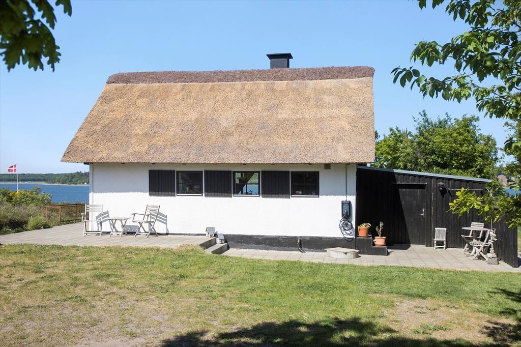 Das Das Haus-Innere dieses 90 m² großen Ferienhauses verwöhnt mit einer schönen Wohnatmosphäre. Das Reetdachobjekt aus dem Jahr 1960 wurde in 2019 schön instand gesetzt und präsentiert sich in heutigen Tagen mit einer ausgewogenen Balance aus bezaubernden Retro-Details und modernem Design. Die Landschaft ringsum hat sich im Laufe der Jahre weit weniger verändert - glücklicherweise, denn Ihre gemütlichen Stunden vor dem Kaminofen werden durch den Blick auf das blaue Wasser des Sunds und die üppige Küstenlandschaft wunderschön untermalt. Im Wohnraum genießen Sie den Ausblick durch eine große, gen Westen ausgerichtete Fensterpartie. Selbst einer der drei Schlafräume im Obergeschoss bieten Ihnen beim Aufwachen am Morgen einen herrlichen Ausblick. Das Badezimmer mit Dusche und Fußbodenheizung ist im Erdgeschoss platziert. Dies gilt selbstverständlich auch für die Küche, die offen mit dem Wohnraum verbunden ist.