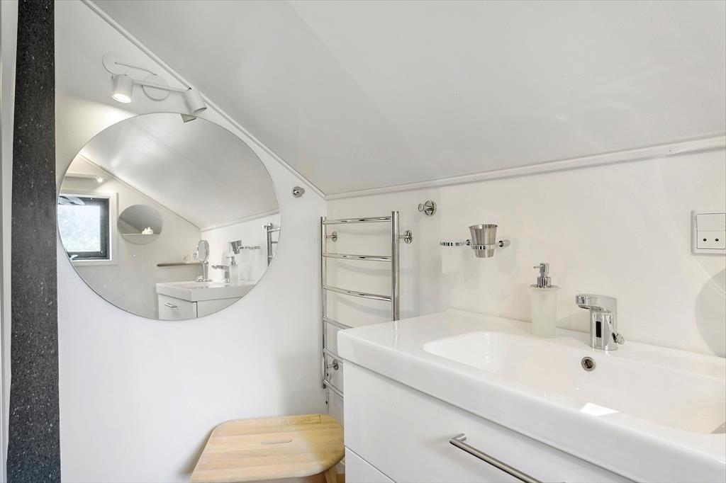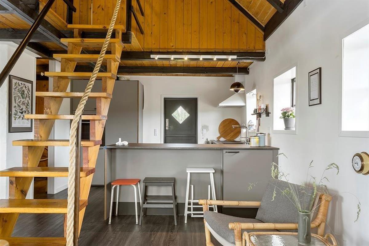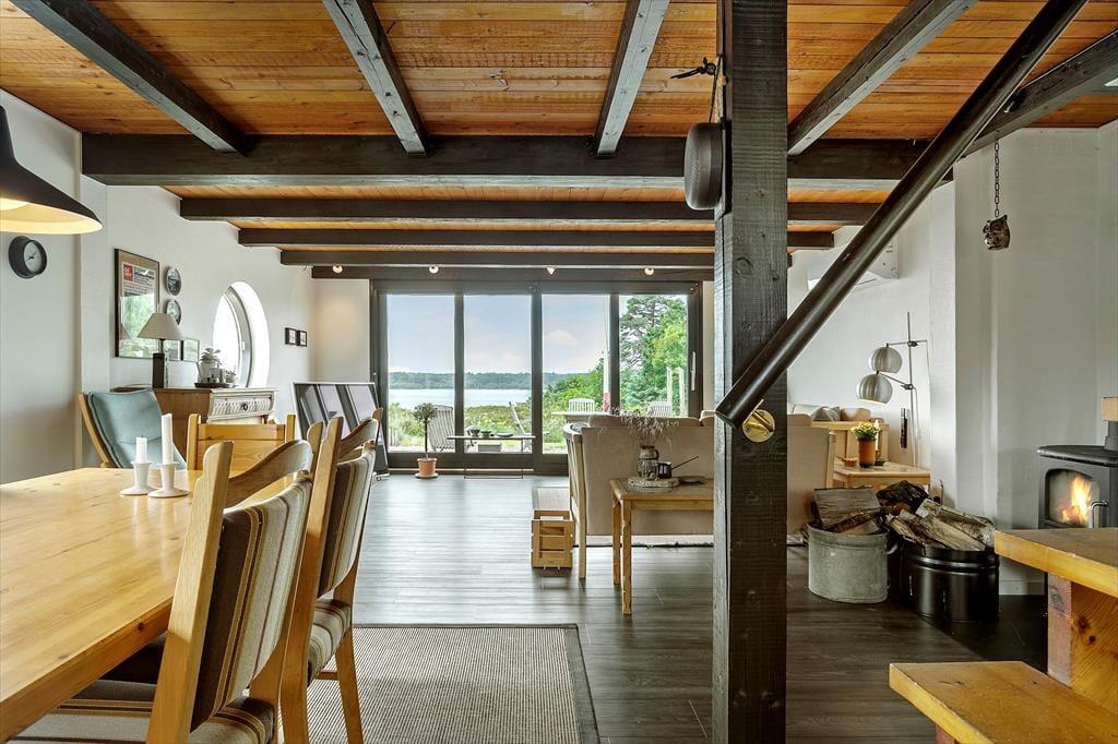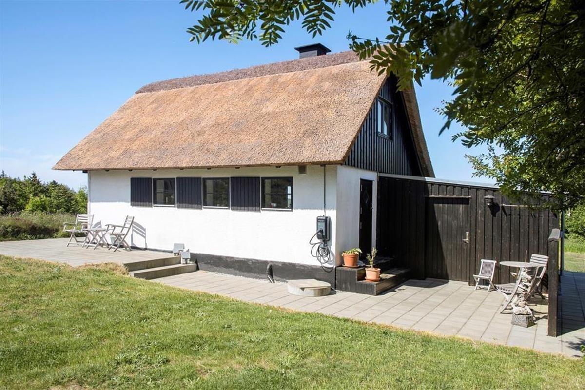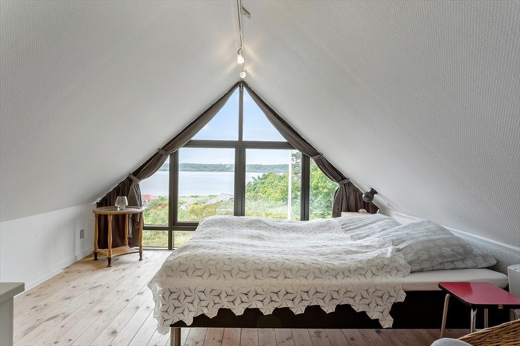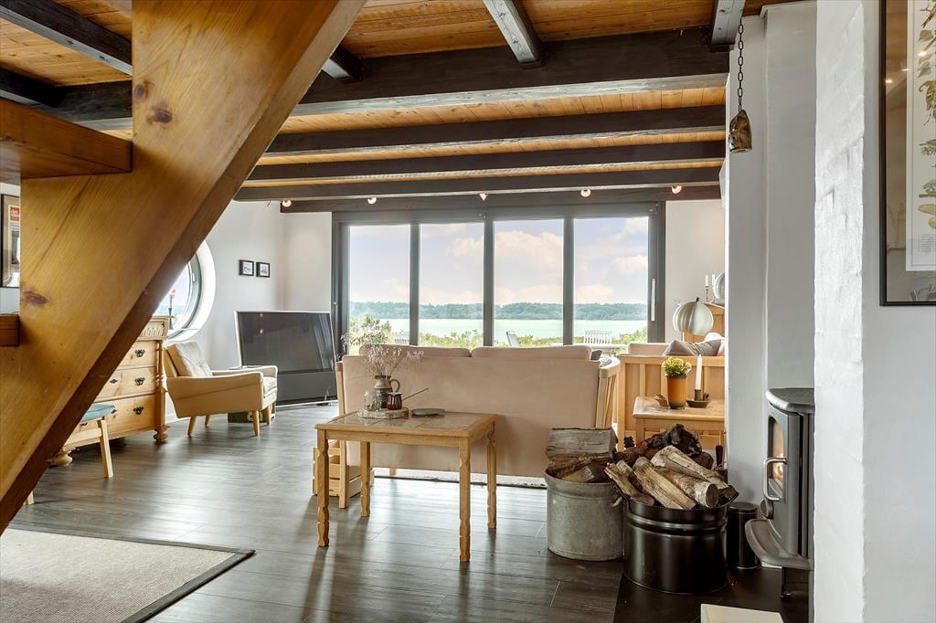 Das Das Haus-Innere dieses 90 m² großen Ferienhauses verwöhnt mit einer schönen Wohnatmosphäre. Das Reetdachobjekt aus dem Jahr 1960 wurde in 2019 schön instand gesetzt und präsentiert sich in heutigen Tagen mit einer ausgewogenen Balance aus bezaubernden Retro-Details und modernem Design. Die Landschaft ringsum hat sich im Laufe der Jahre weit weniger verändert - glücklicherweise, denn Ihre gemütlichen Stunden vor dem Kaminofen werden durch den Blick auf das blaue Wasser des Sunds und die üppige Küstenlandschaft wunderschön untermalt. Im Wohnraum genießen Sie den Ausblick durch eine große, gen Westen ausgerichtete Fensterpartie. Selbst einer der drei Schlafräume im Obergeschoss bieten Ihnen beim Aufwachen am Morgen einen herrlichen Ausblick. Das Badezimmer mit Dusche und Fußbodenheizung ist im Erdgeschoss platziert. Dies gilt selbstverständlich auch für die Küche, die offen mit dem Wohnraum verbunden ist.