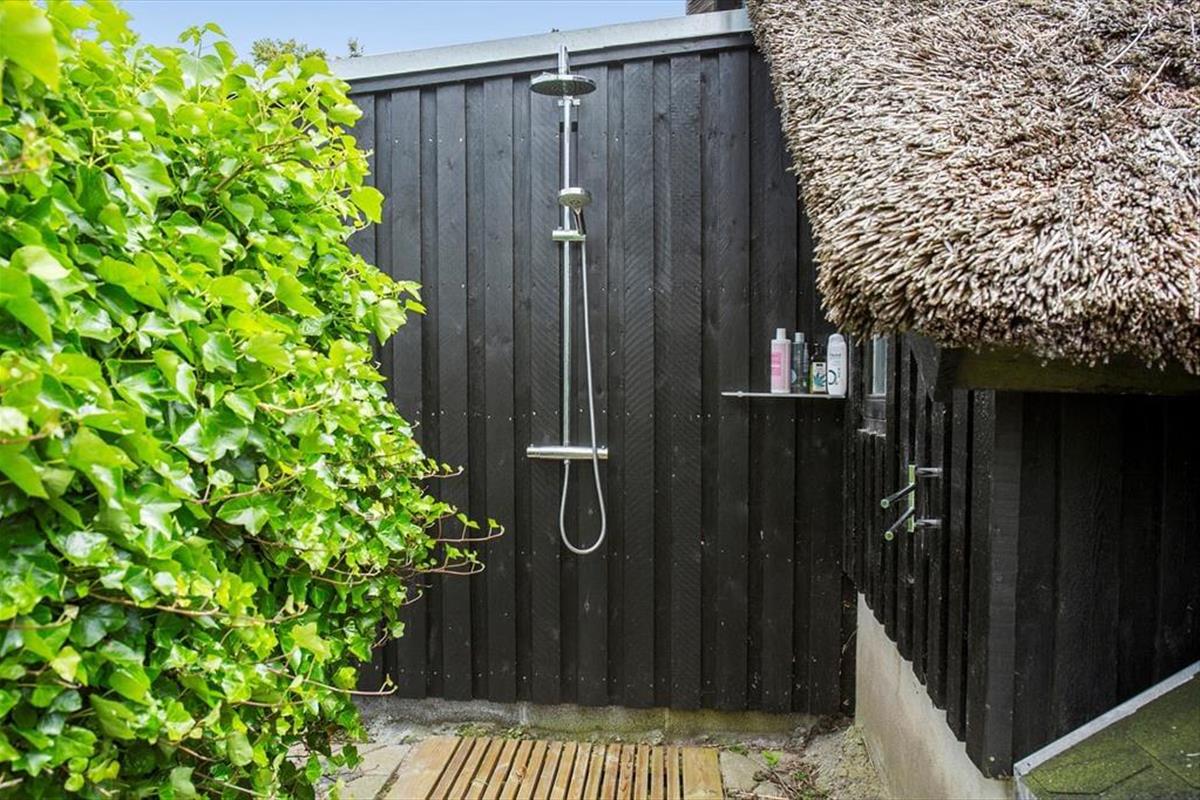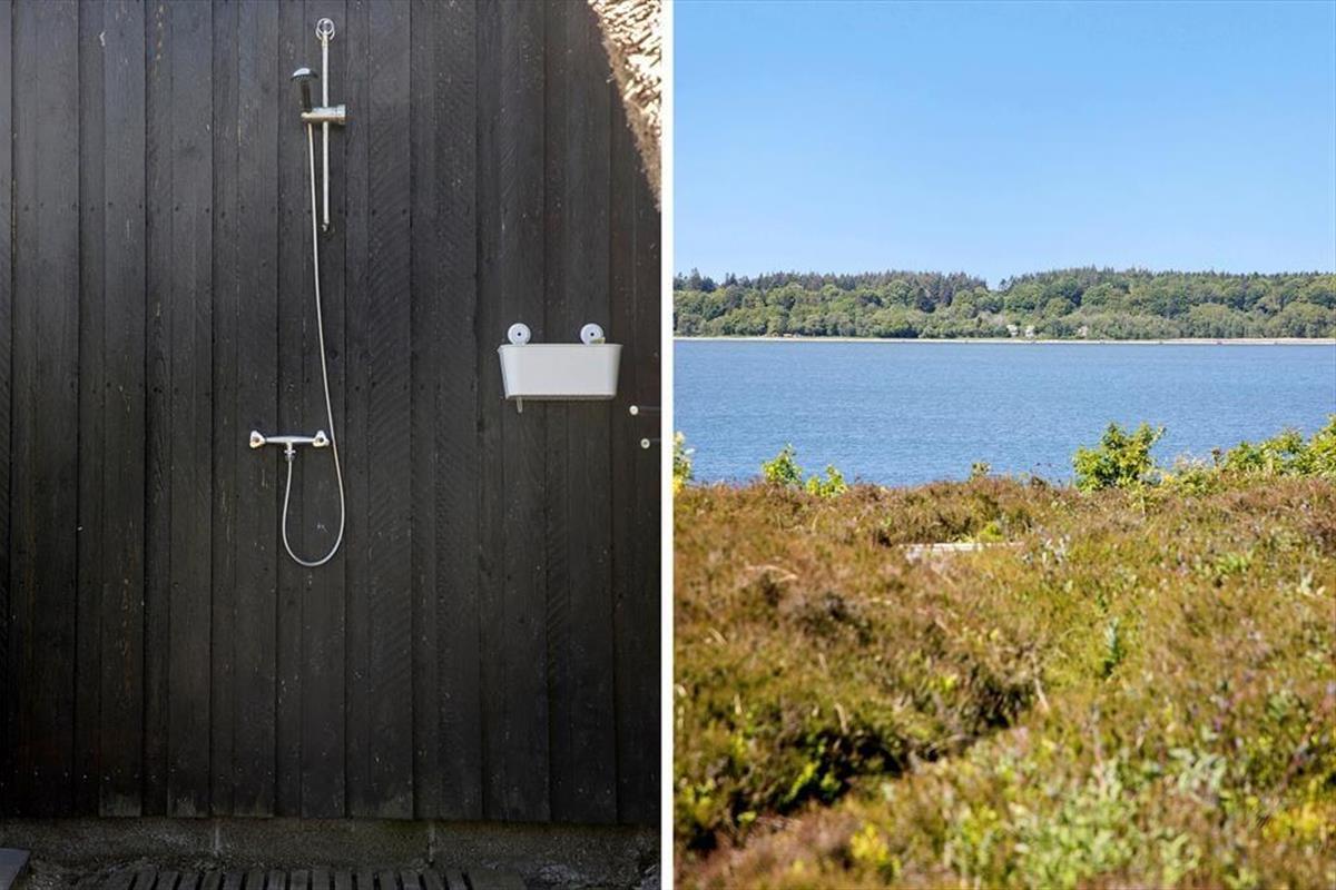 Das 1.820 m² große Naturgrundstück befindet sich hoch oben auf einem Hügel inmitten der Fjordlandschaft. Aus diesem Grund ist auch die Aussicht so einmalig schön. Die Natur ringsum genießen Sie unter anderem auf der nach Westen ausgerichteten Terrasse, die direkt vor dem Wohnzimmer liegt. Ein Pfad führt Sie zu einer Aussichtsbank. An der Südseite des Hauses befindet sich eine weitere Terrasse und in einer Ecke des Grundstück sorgt eine Außendusche mit warmem Wasser für ein Duscherlebnis unter freiem Himmel - perfekt für die Dusche am Morgen oder nach einem langen Tag am Strand.
