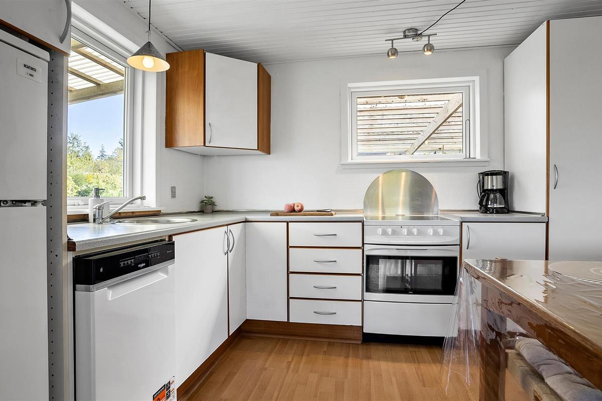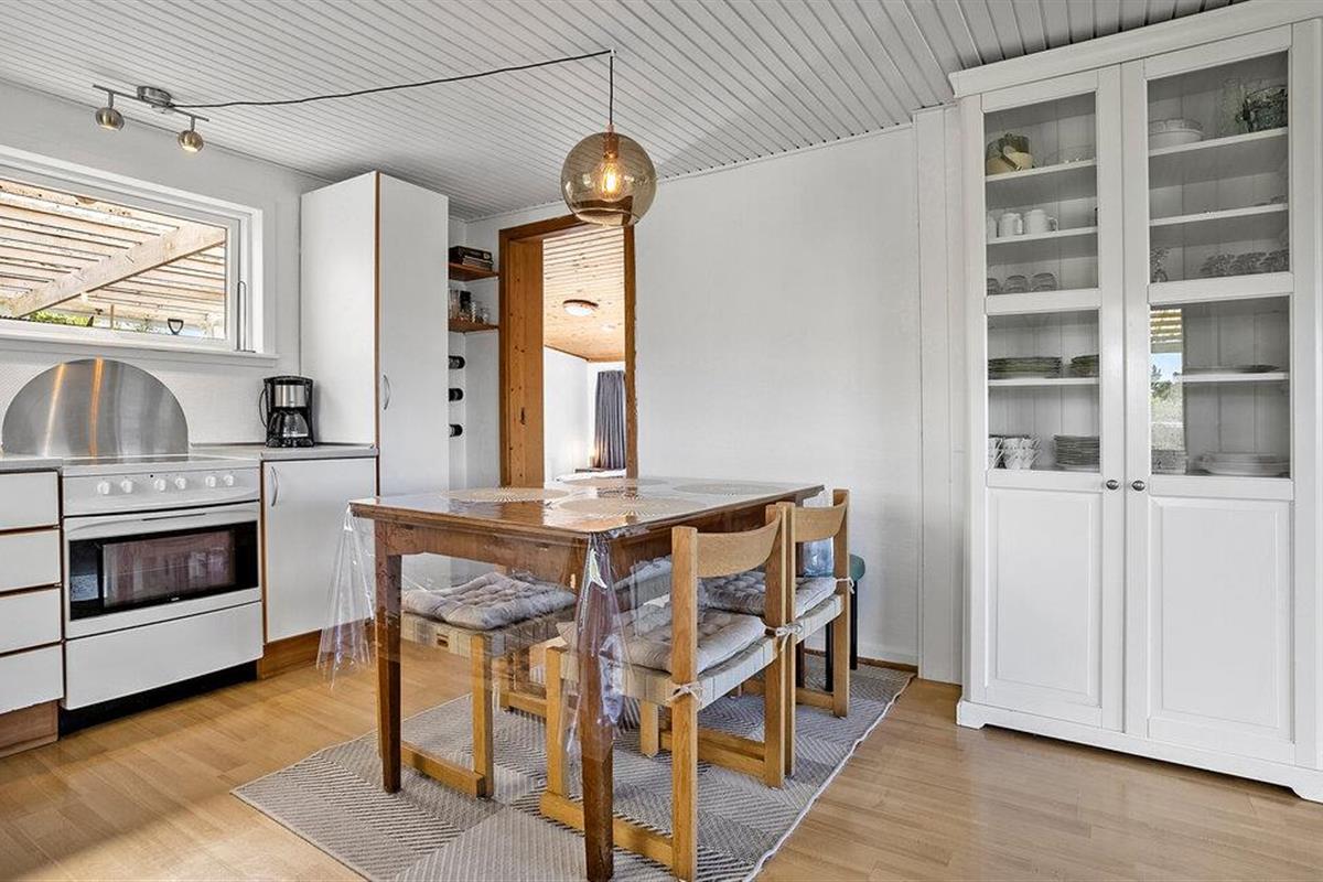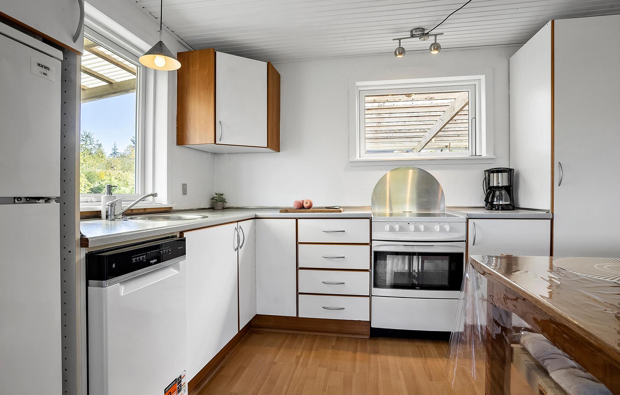 Oorspronkelijk gebouwd van oude viskisten en hergebruikte materialen, heeft je vakantiehuis aan het strand van Sallingsund bij Glyngøre in de loop der jaren veel veranderingen ondergaan en is nu een gezellig toevluchtsoord met karakter. Binnen vind je een lichte woonkamer met grote ramen die uitkijken over de omliggende natuur. Maak het jezelf gemakkelijk op de banken en geniet van de rust die dit huis uitstraalt. De eetkeuken biedt alles wat je nodig hebt voor je maaltijden en nodigt uit tot gezelligheid.