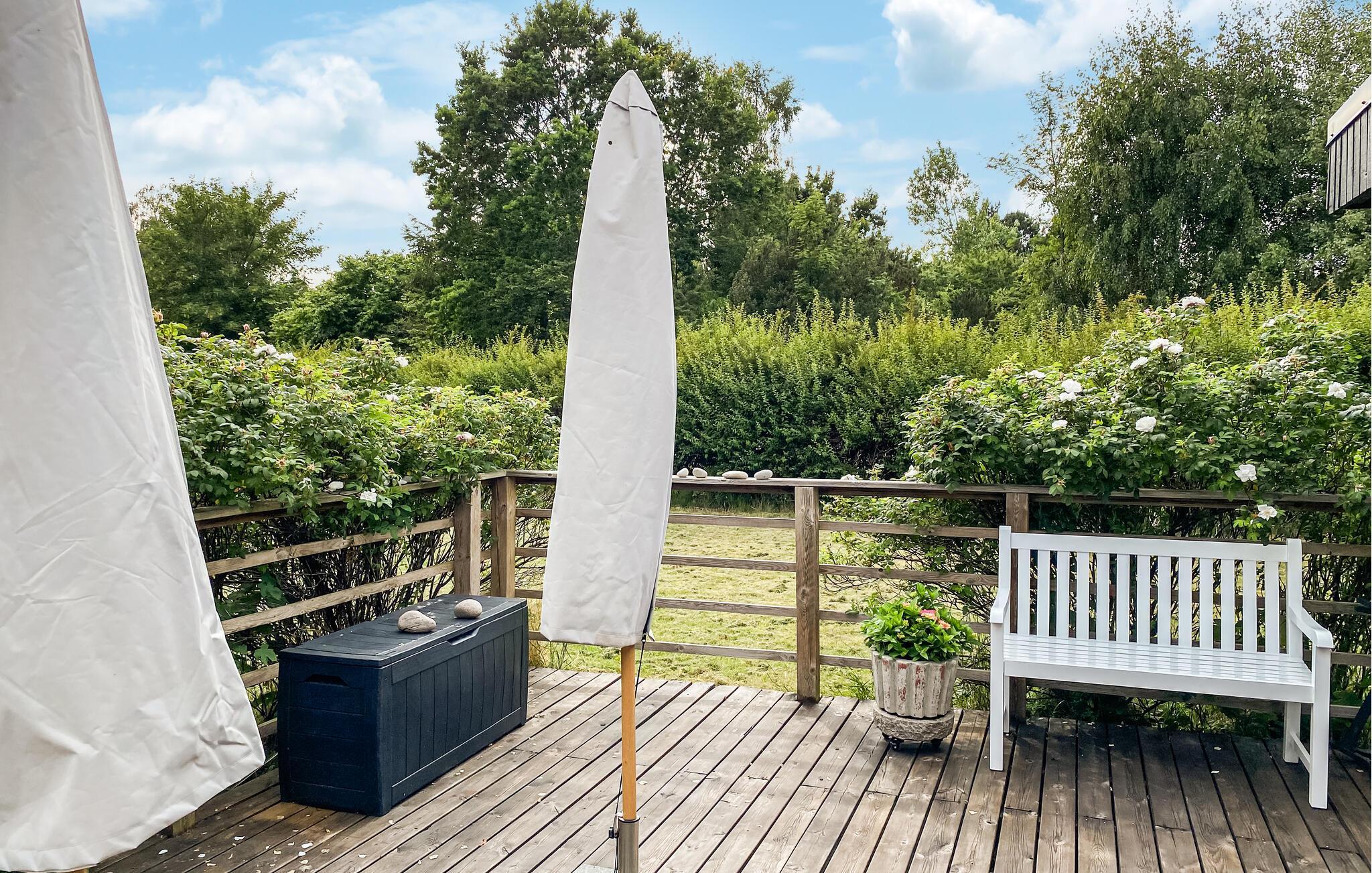 Dit uitnodigende vakantiehuis ligt in Saltbæk, niet ver van het water. De liefdevol ingerichte woonkamer nodigt het hele jaar uit om te ontspannen en in de koelere maanden kun je je opwarmen voor de houtkachel. Bereid je lekkernijen in de fantastische keuken met uitzicht op het groen en breng gezellige avonden door in de lichte eethoek.