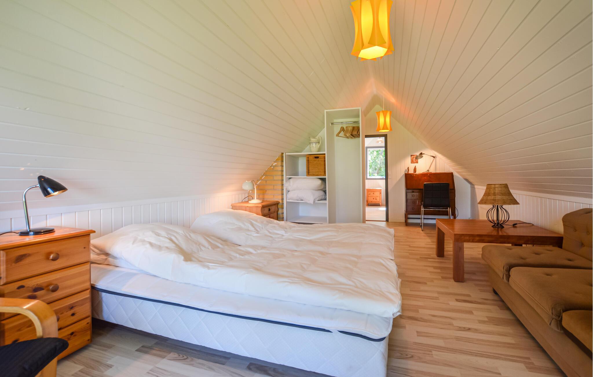 In de ochtend kunt u uw handdoek over uw arm leggen, naar het water lopen en een duik nemen. Slechts 100 m van het huis is een steiger in de zomer. Het huis heeft een badkamer met douche en een mooie open keuken met uitzicht op de eet- en woonkamer. De open haard in de woonkamer is alleen voor de sier. 1 slaapkamer is op de begane grond, een trap leidt naar 2 slaapkamers, waarvan een met een grote buitendeur met directe toegang tot het overdekte balkon en een uniek uitzicht op het water.