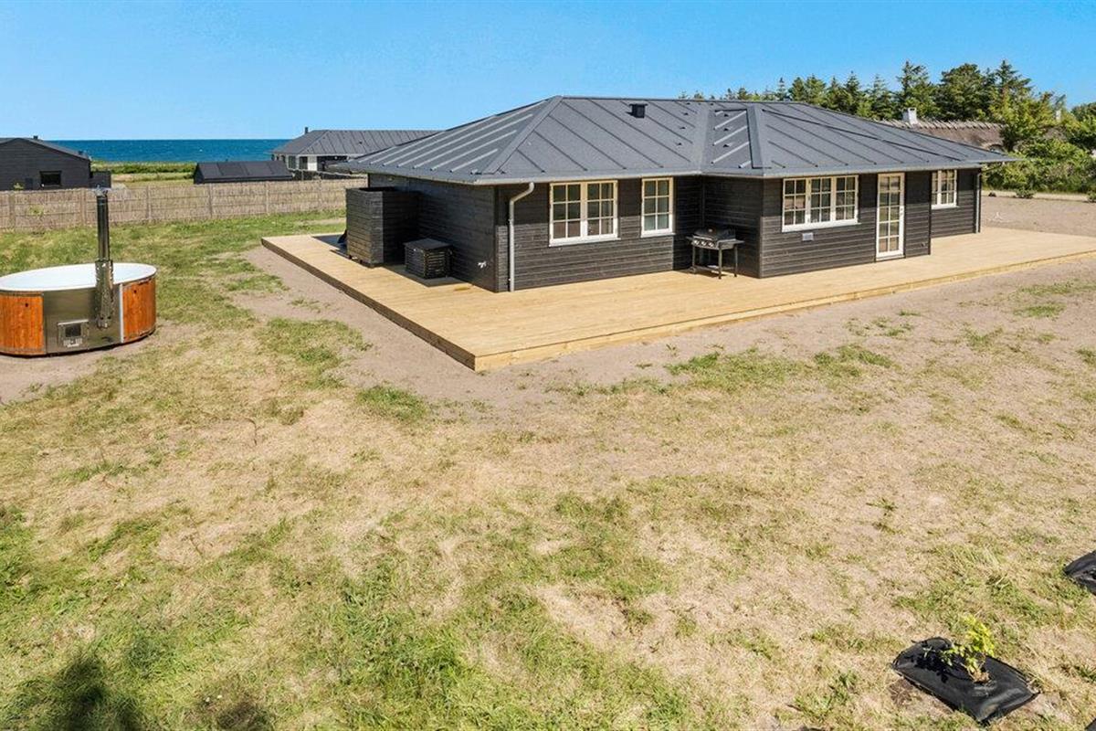 Ontspan in dit moderne vakantiehuis met buitenwellness, vlakbij het strand en omgeven door prachtige natuur in Saltbæk, Denemarken.