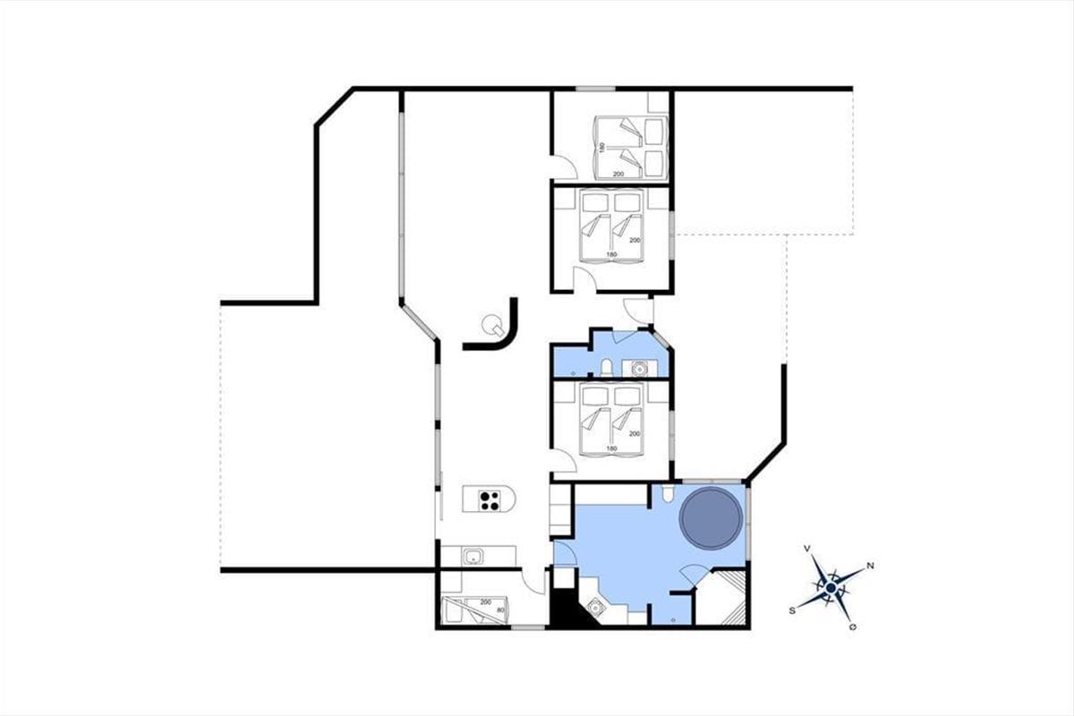 Das Haus hat eine idyllische Lage am Ende einer Gasse und ist nur wenige Meter vom weißen, breiten Sandstrand von Saltum entfernt. An der Nordsee kann man viele Tage verbringen, baden, toben oder sich sonnen. In Saltum gibt es Einkaufsmöglichkeiten und in Blokhus viele Shoppingmöglichkeiten und Restaurants. Zwischen den beiden Orten befindet sich Fårup Sommerland, Dänemarks bester dänischer Sommerfreizeitpark, da es für jeden etwas gibt: Trampolin, Rafting, Rutschen und Karussells.