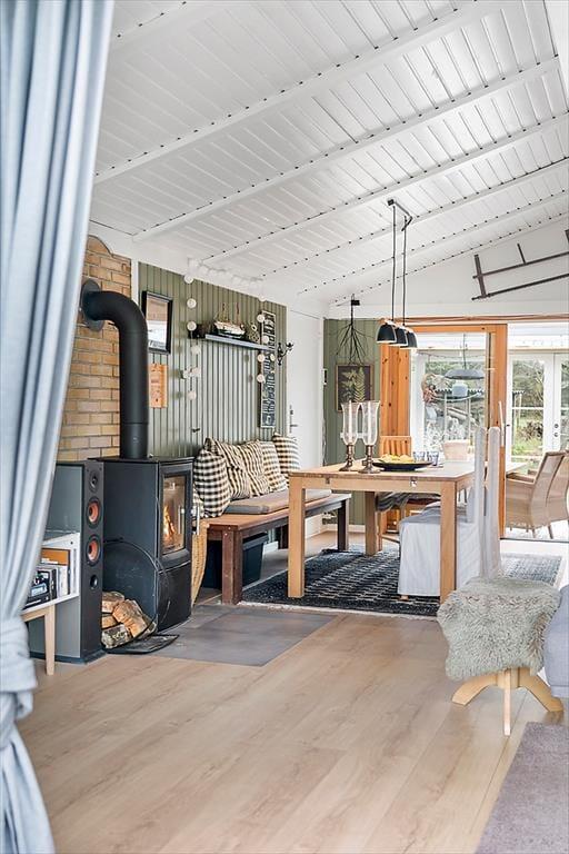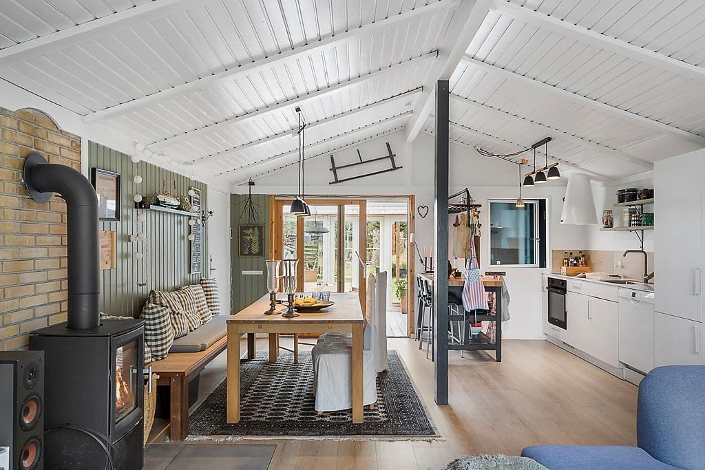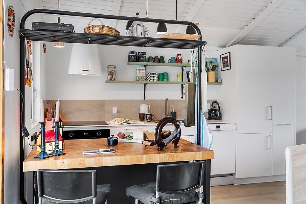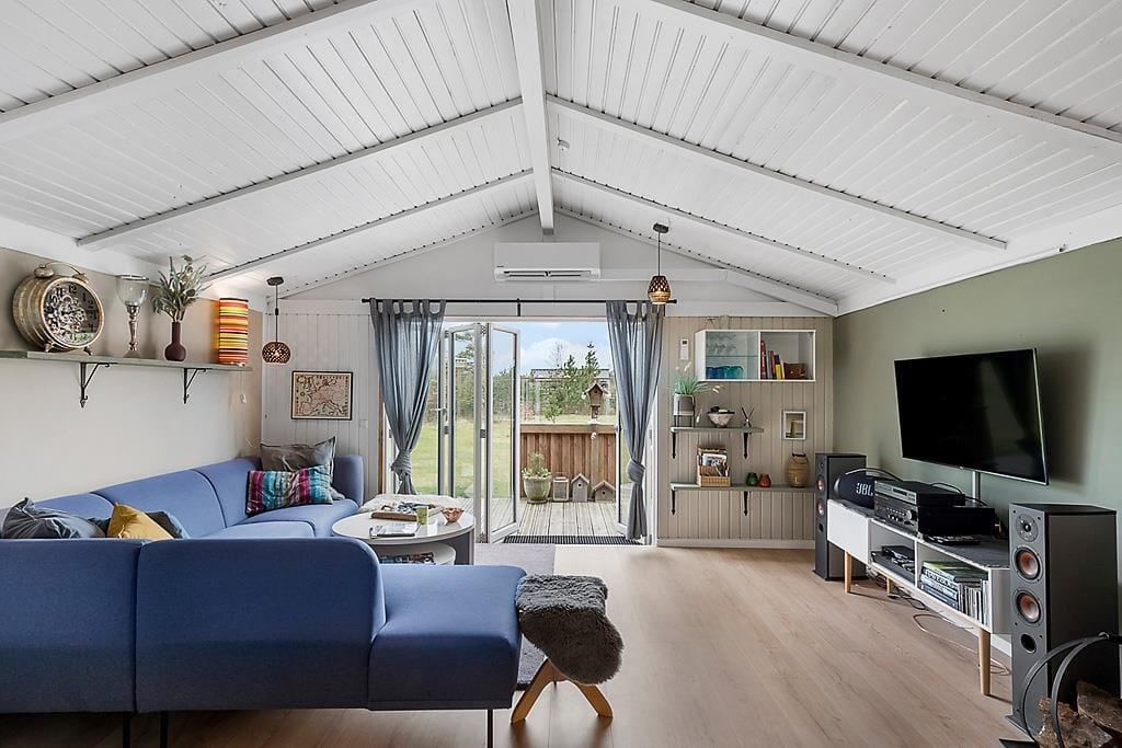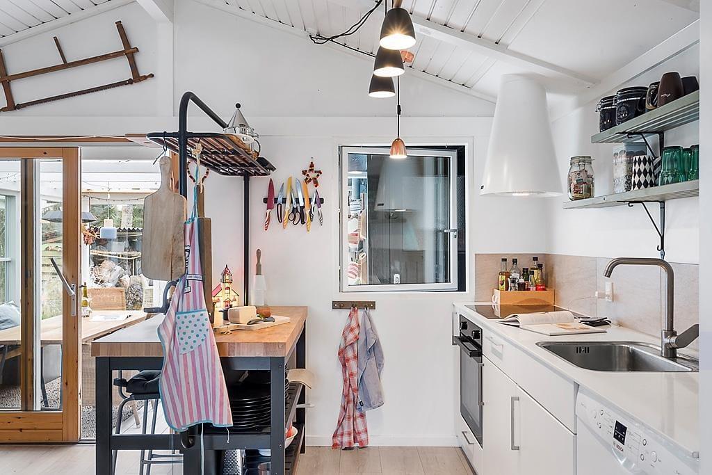 Beim Betreten des Ferienhauses wirst du von einer hellen und geräumigen Einrichtung begrüßt, die sowohl zu Gemütlichkeit als auch zum gemeinsamen Beisammensein einlädt. Das offene Wohnzimmer mit Kaminofen sorgt für eine warme und behagliche Atmosphäre, in der du dich mit einem guten Buch entspannen oder nach einem aktiven Tag einen Film anschauen kannst. Der schöne Wintergarten ist ein weiteres gemütliches Zimmer und perfekt für Entspannung – sei es für eine Tasse Kaffee am Morgen, zum Lesen oder einfach, um auf das große Grundstück zu schauen. Die Küche ist funktional und einfach zu bedienen, sodass du beim Kochen und Genießen von Ferienmahlzeiten in guter Gesellschaft viel Spaß haben wirst.