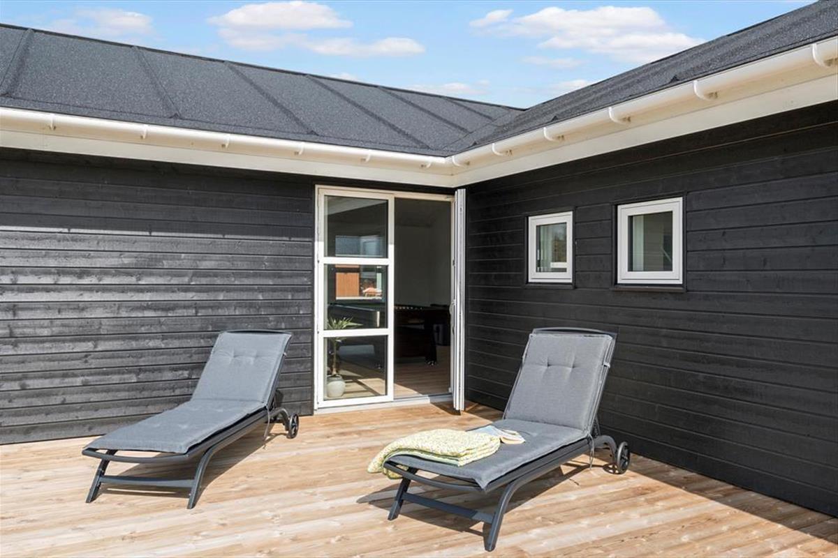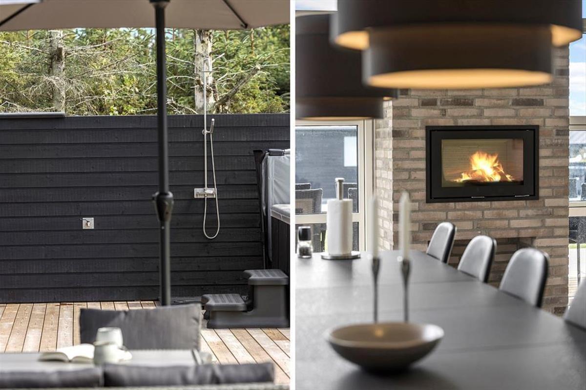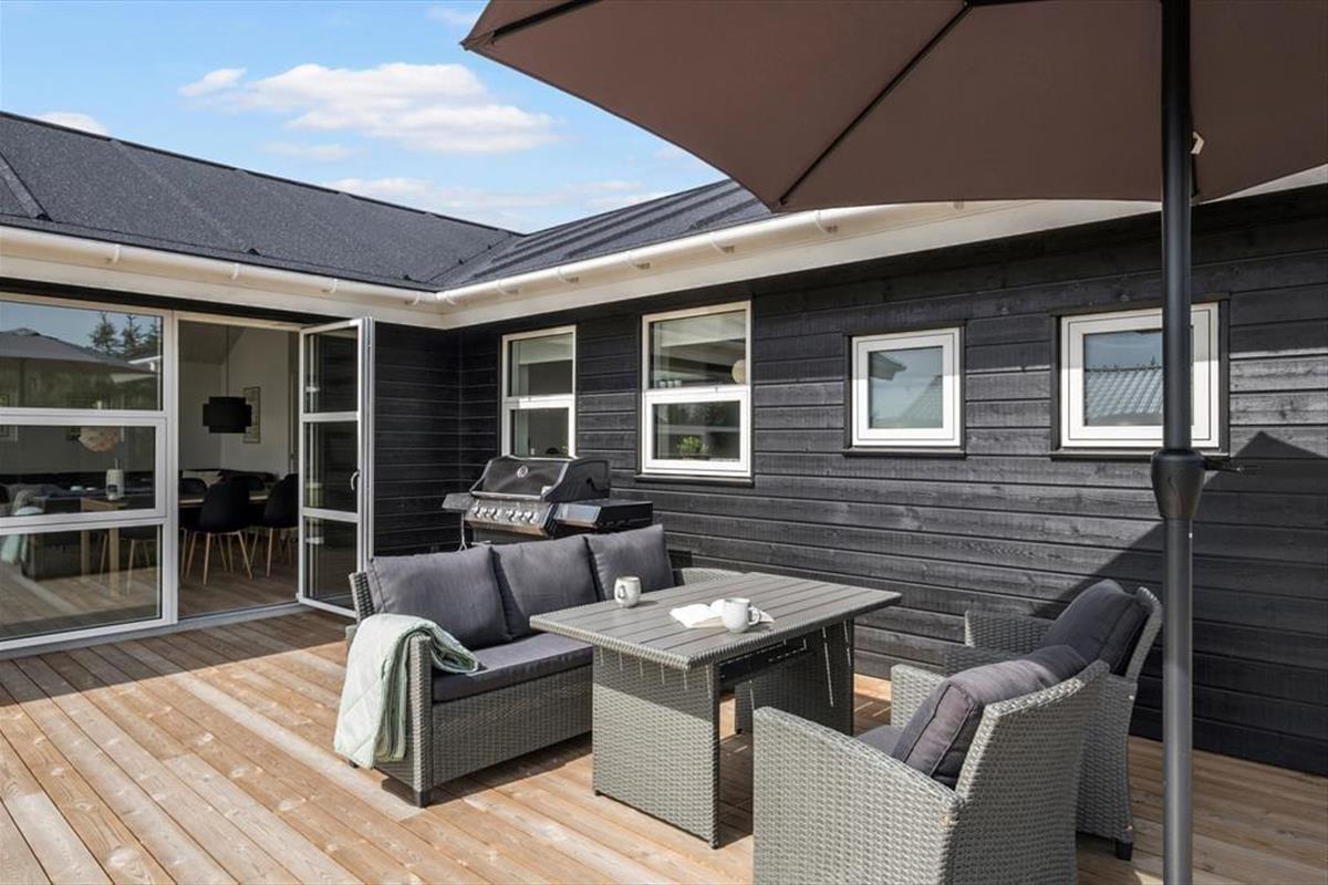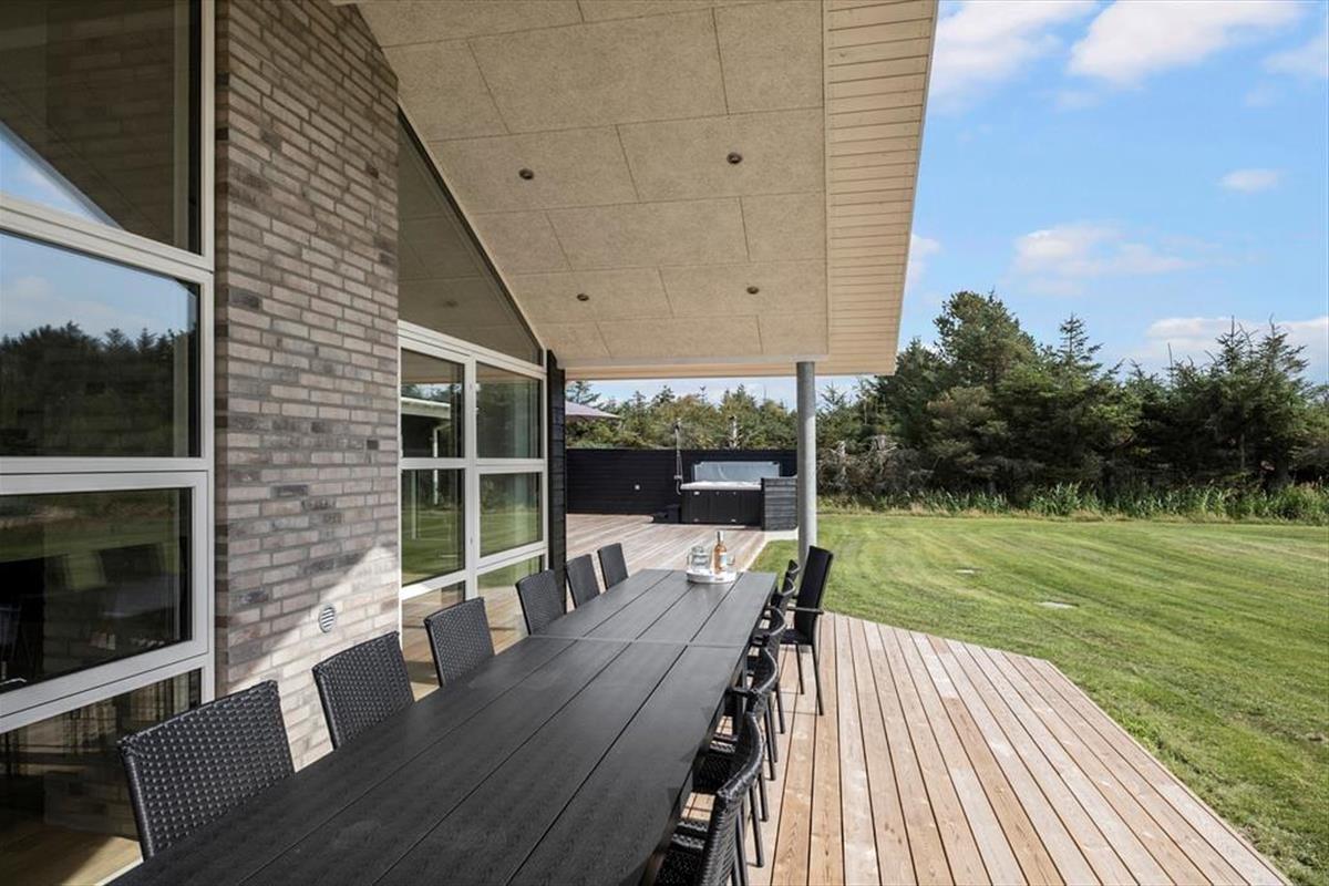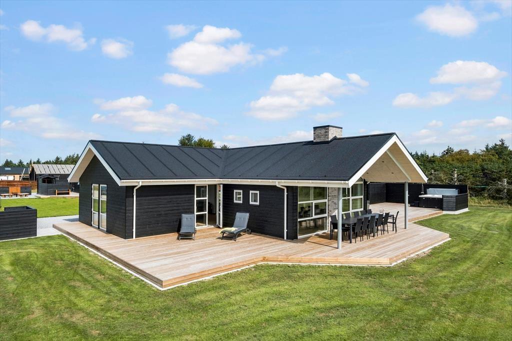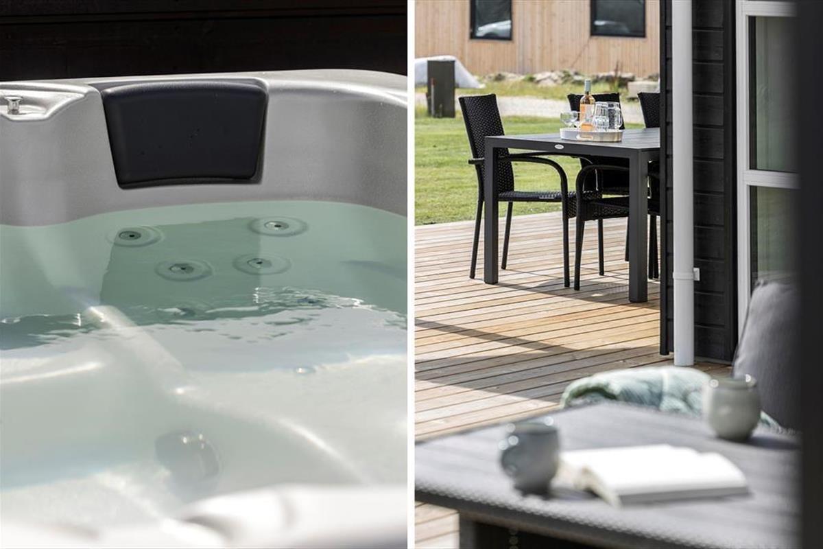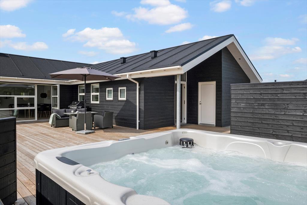 Draußen umgibt eine große Terrasse das Haus, fast rundherum, was die Möglichkeit bietet, die Sonne, den Schatten und die frische Luft den ganzen Tag über zu genießen. Hier kannst du das beruhigende Gefühl erleben, im Windschutz zu sitzen, während du ein Self-Service-Grillabend machst oder dich mit einem eiskalten Getränk entspannst. Für die Kinder gibt es Spiel- und Spaßmöglichkeiten, während die Erwachsenen sich in eine Hängematte oder eine Lounge-Gruppe zurückziehen können. Der luxuriöse Spa-Bereich mit angenehmen Blasen und entspannenden Massagen lädt nach einem aufregenden Tag zu Wohlfühlrunden ein. Der gepflegte Garten und die Terrasse bieten den perfekten Rahmen für tiefgründige Gespräche, ruhige Momente oder fröhliche Urlaubserinnerungen unter freiem Himmel – ganz ohne Aufwand, mit dem angenehmen Gefühl eines Urlaubs in Dänemark, bei dem das Aroma von Meer und Natur die Sinne erfüllt.