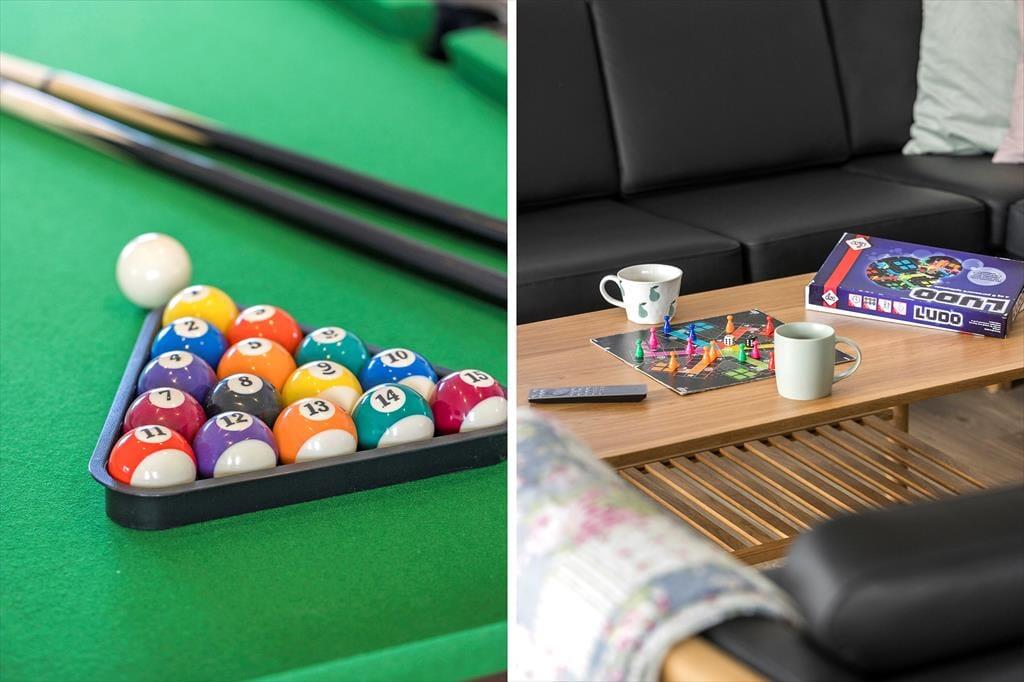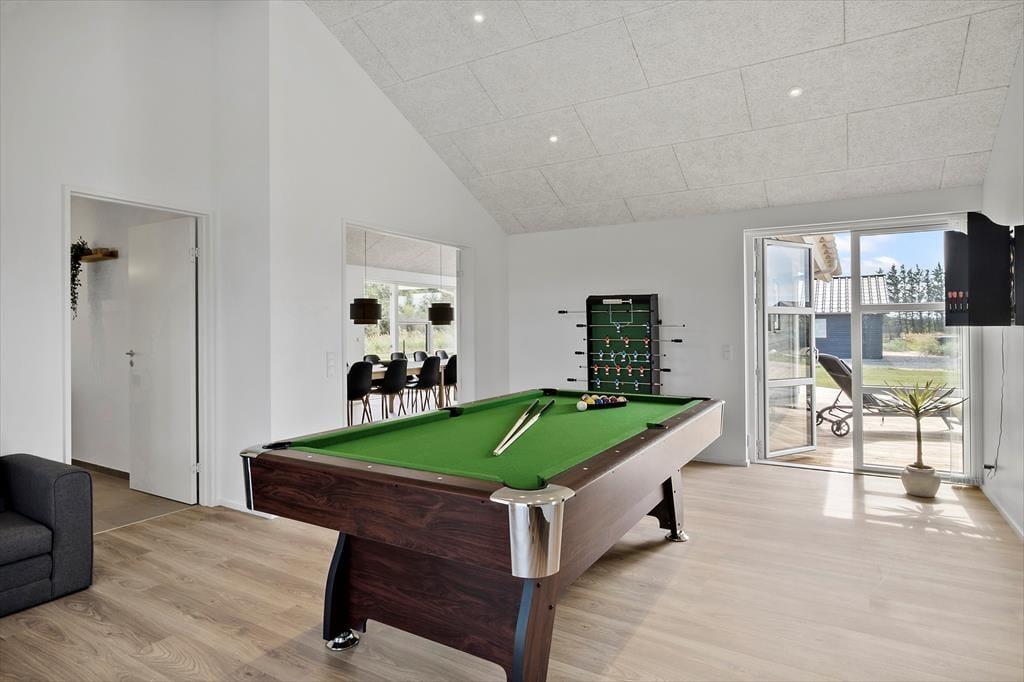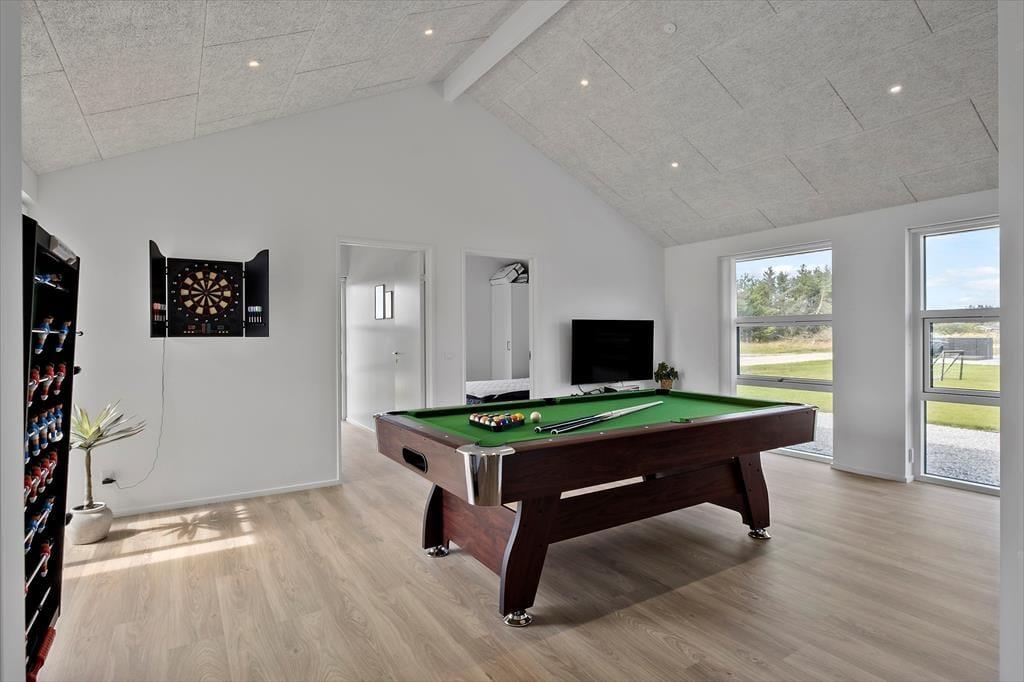 Innen wirst du sofort die einladende und moderne Einrichtung bemerken, bei der helle Farbtöne und elegante Details eine entspannte Atmosphäre schaffen. Das große Wohnzimmer lädt zu gemeinsamen Kuschelstunden vor dem Kamin oder mit Freunden und Familie am Esstisch ein. Die offene Küche ist sowohl funktional als auch stilvoll, was das Kochen zum Vergnügen macht, und die großen Fensterfronten lassen die umgebende Natur ins Zuhause fließen. An kühleren Tagen ist der Aktivitätsraum eine schöne Zuflucht mit Platz für Spiele, Spaß und Entspannung – eine perfekte Oase für die Kinder und die Jugendlichen oder für die jungen Geister aller Altersgruppen, die aktiv sein möchten. Das moderne Ferienhaus ist so gestaltet, dass es Behaglichkeit und Zusammengehörigkeit fördert, wobei die Sinneseindrücke – der Duft frisch gebackenen Brotes, das Zwitschern der Vögel und der Anblick des grünen Landes, das draußen breitet – Fischsucht-Glück in jeder Ecke wecken.
